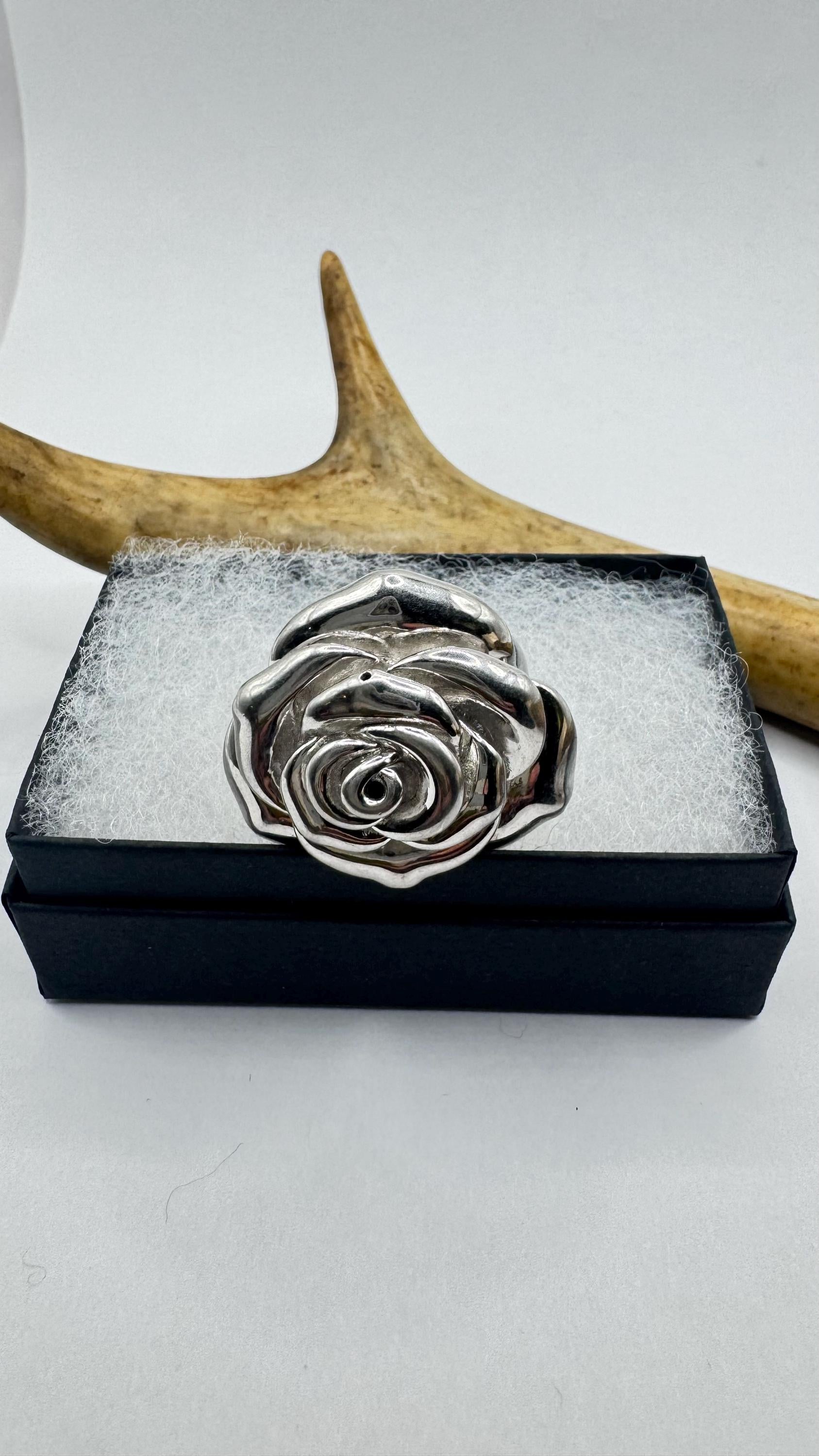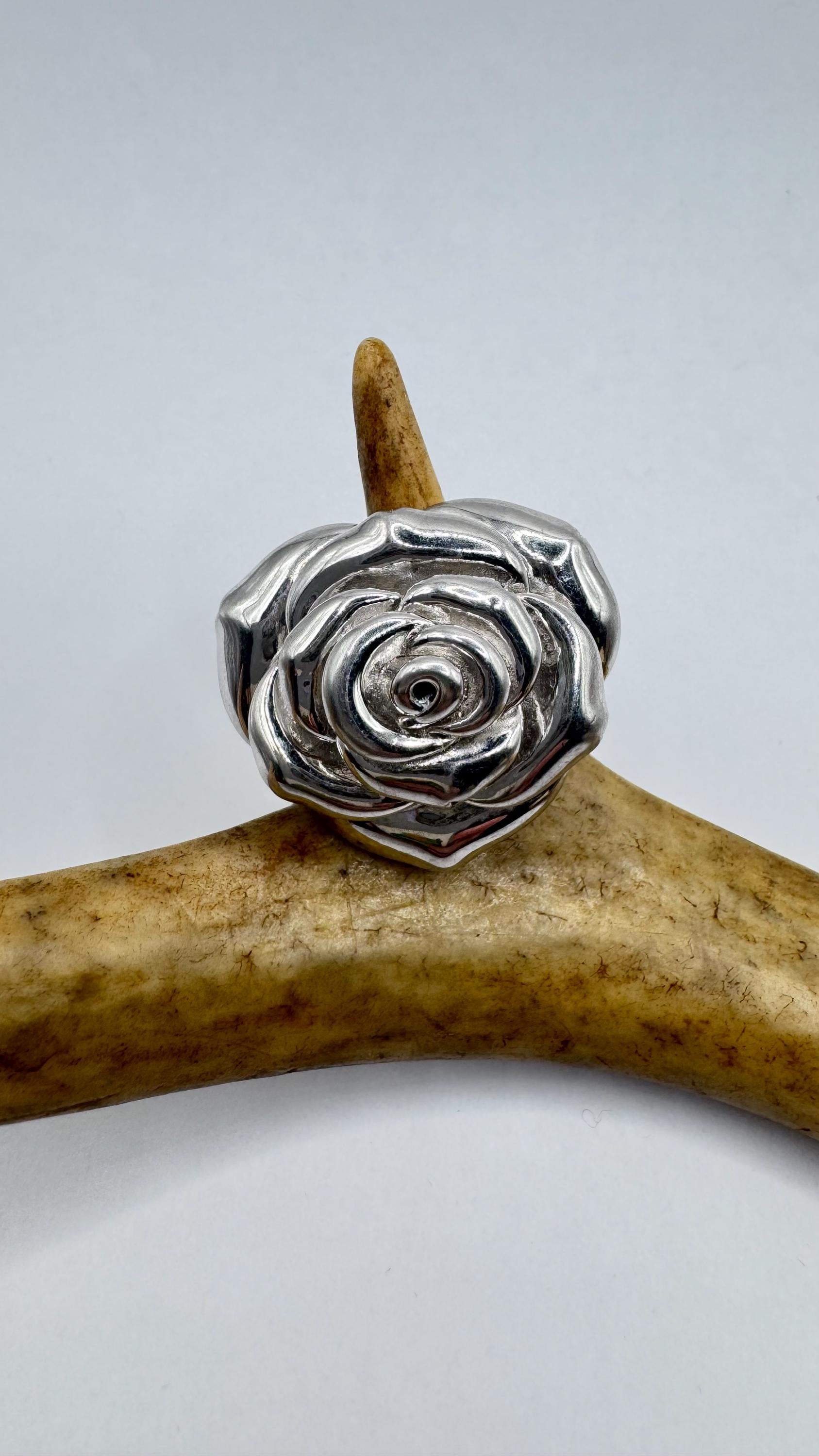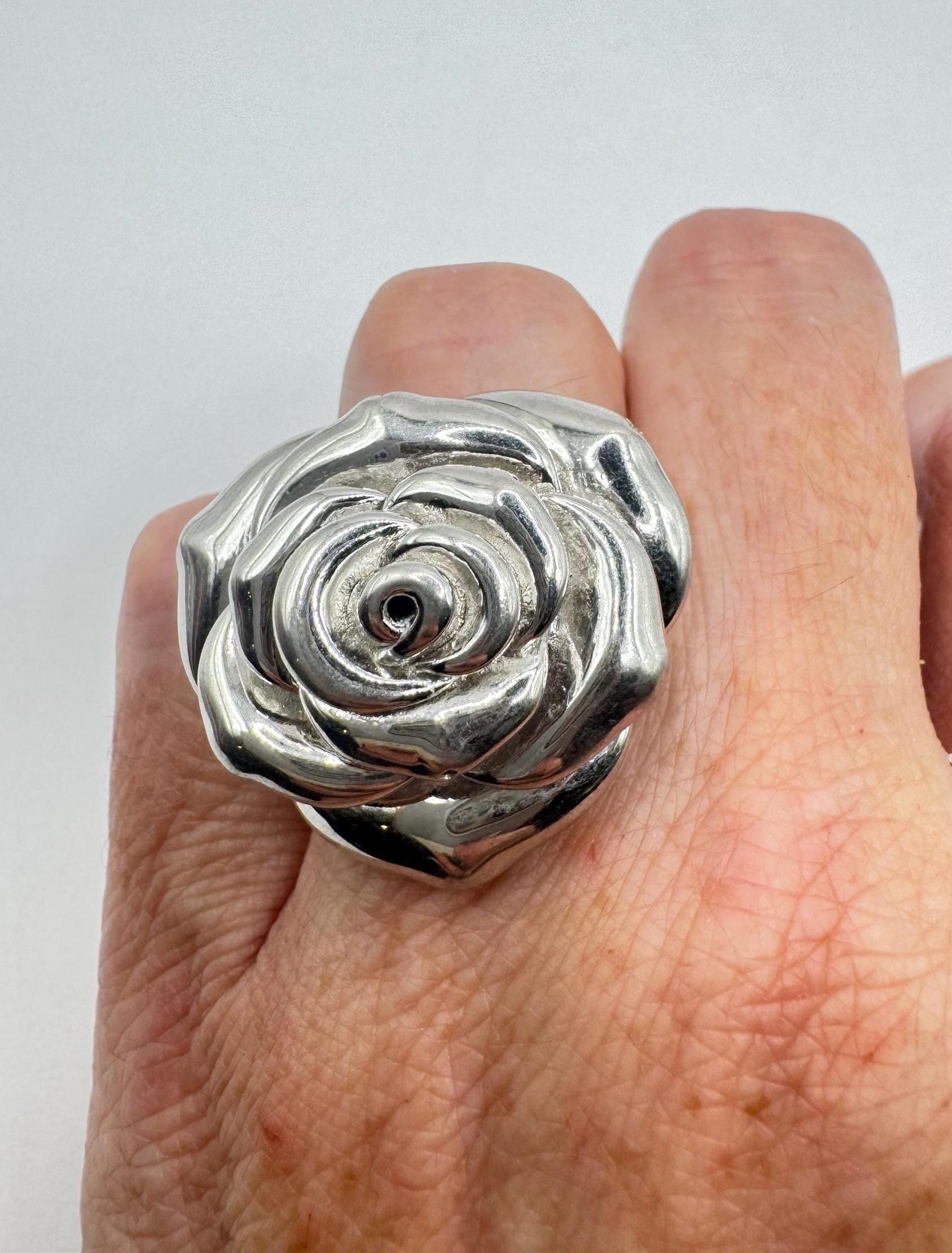 Vintage Silver Rose Ring | Boho Statement Ring 925 Sterling Silver Band