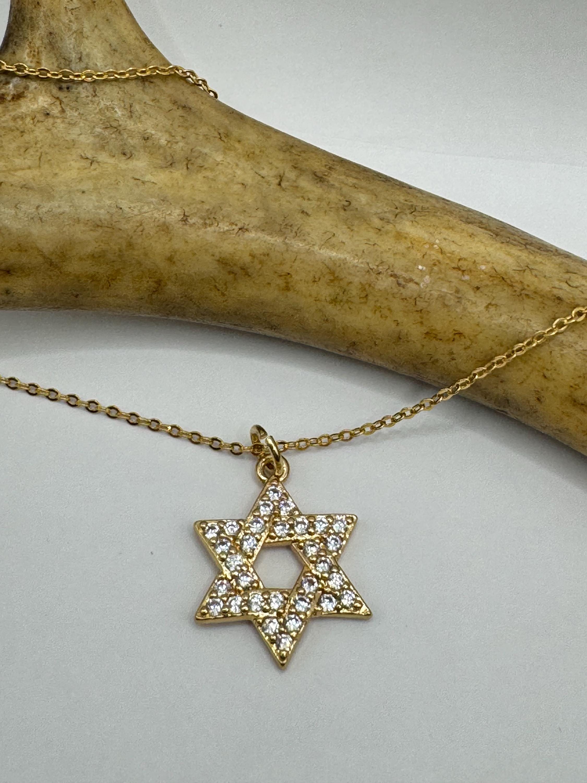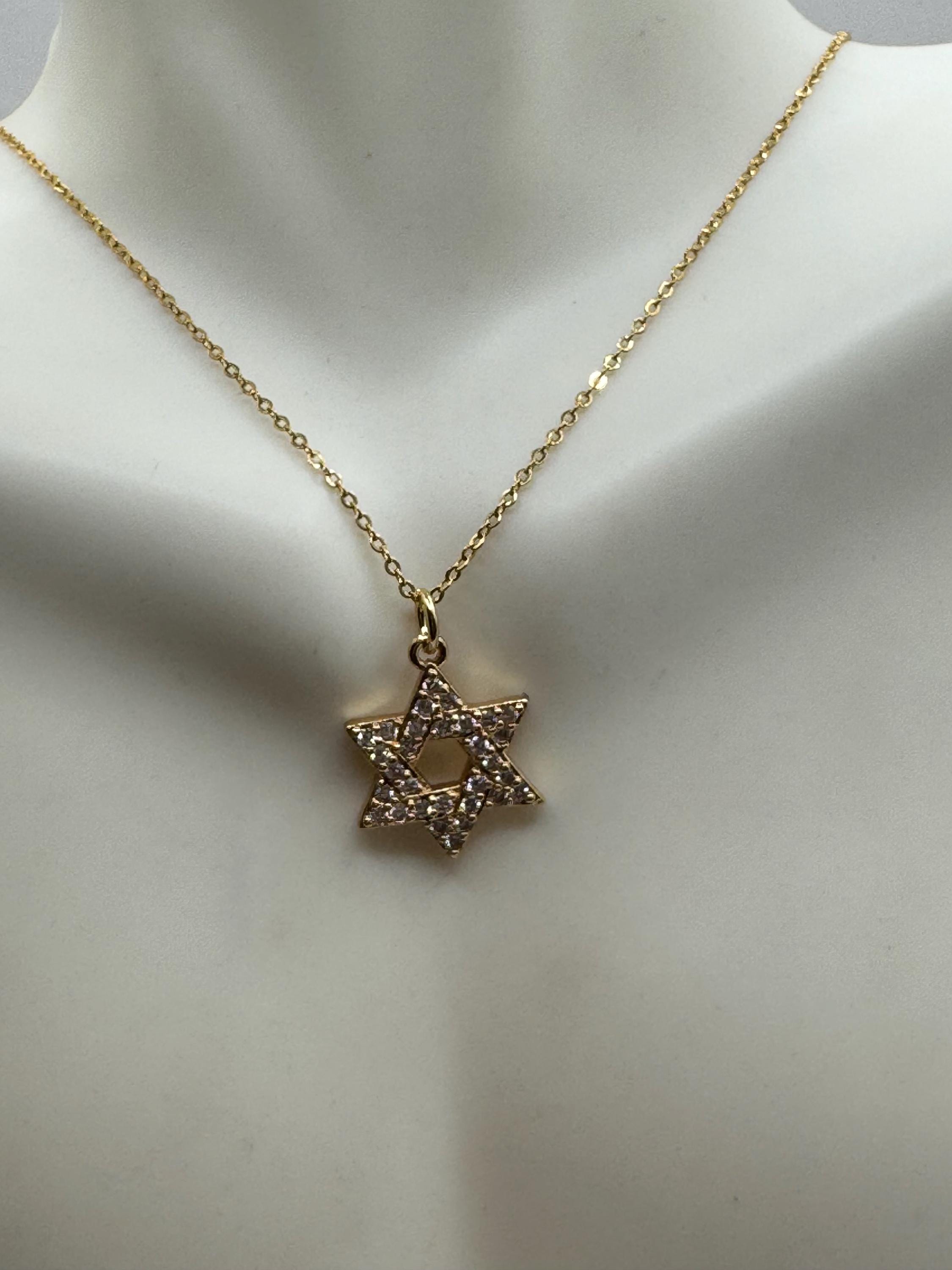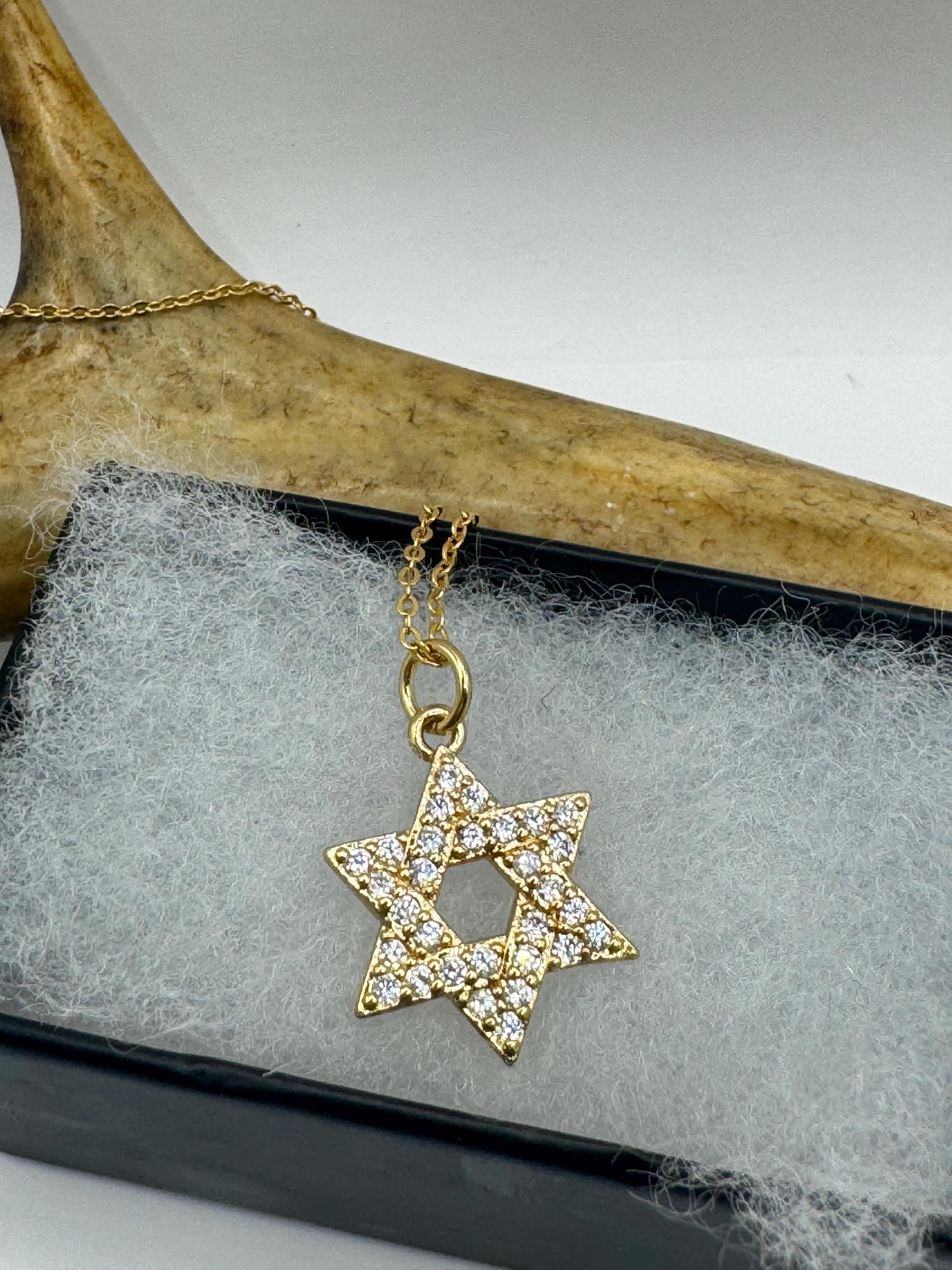 Vintage Star of David, Mogan David, Jewish Star 6k gold filled covered in pave crystals Smaller size about a half... Read more