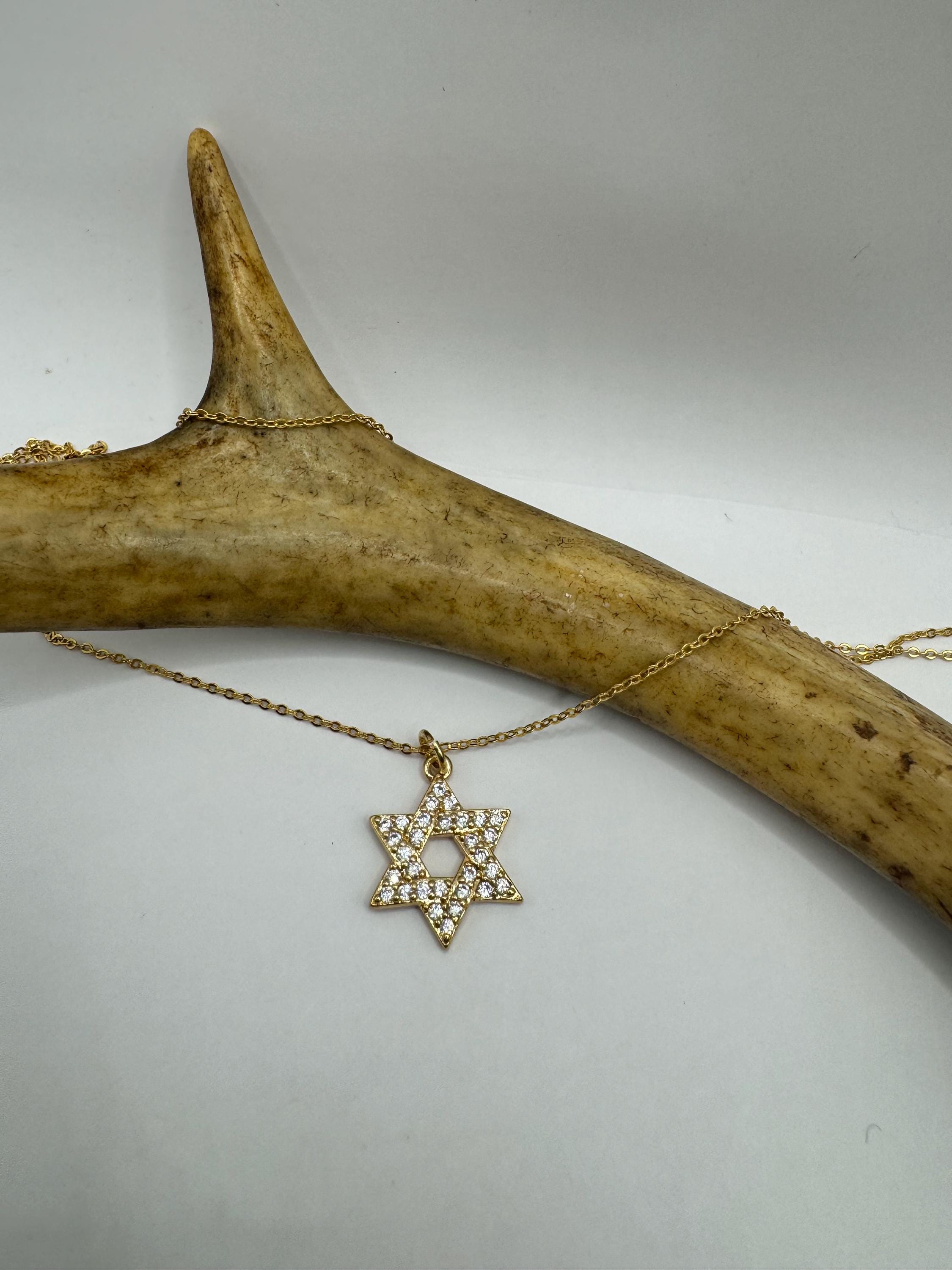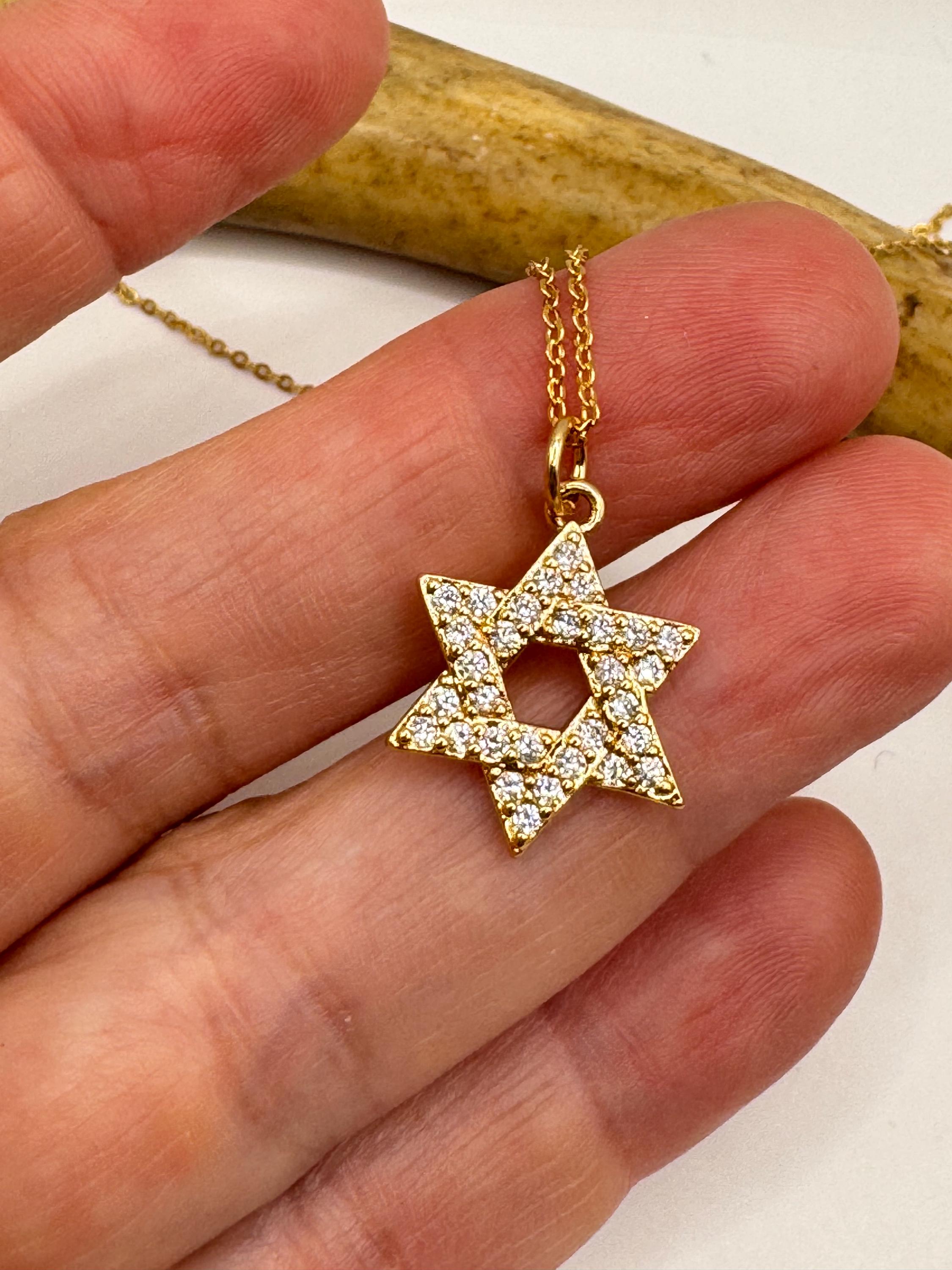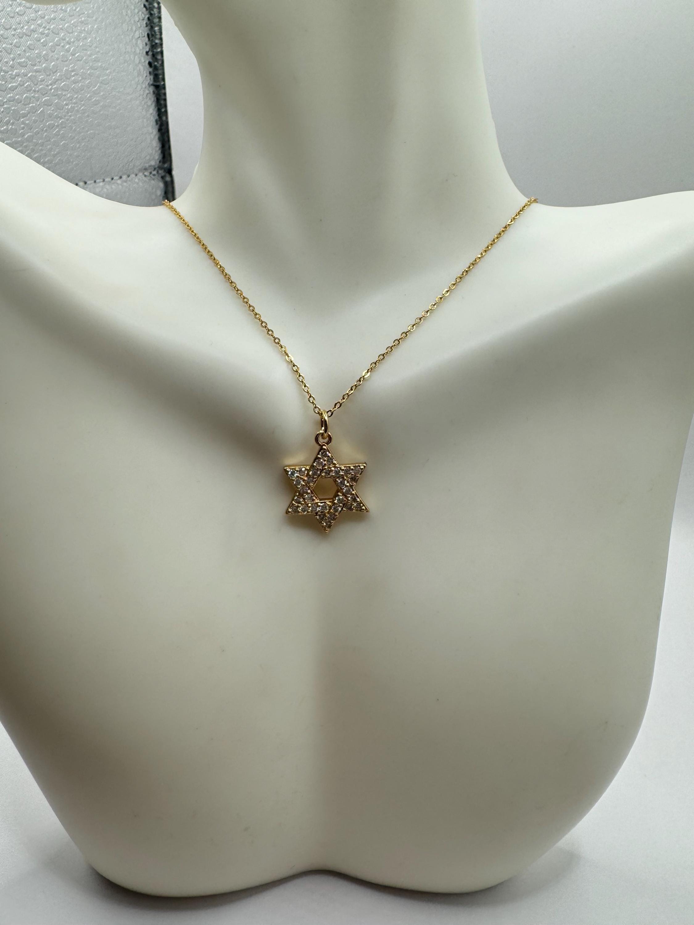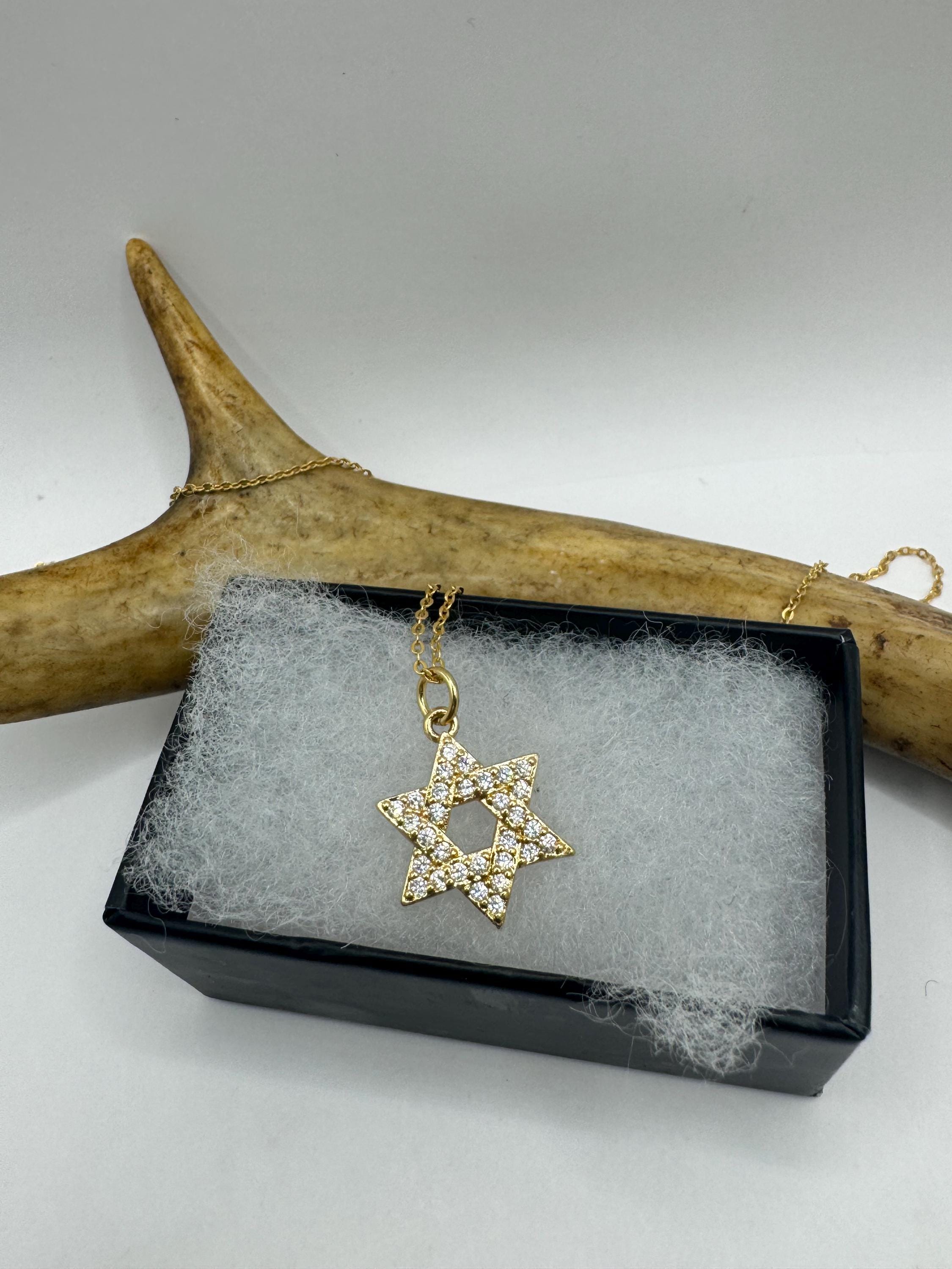 Vintage Star of David, Mogan David, Jewish Star 6k gold filled covered in pave crystals Smaller size about a half... Read more