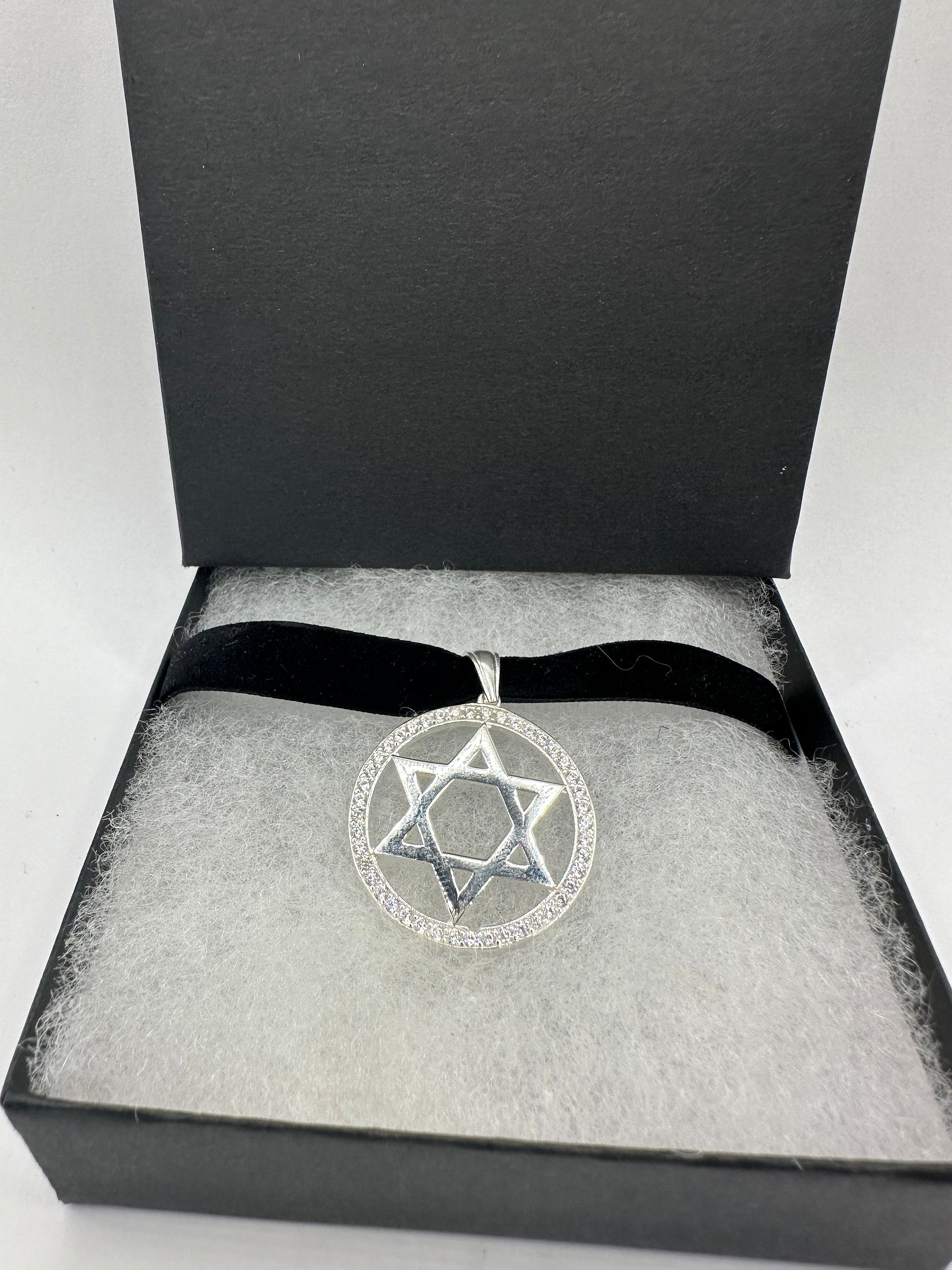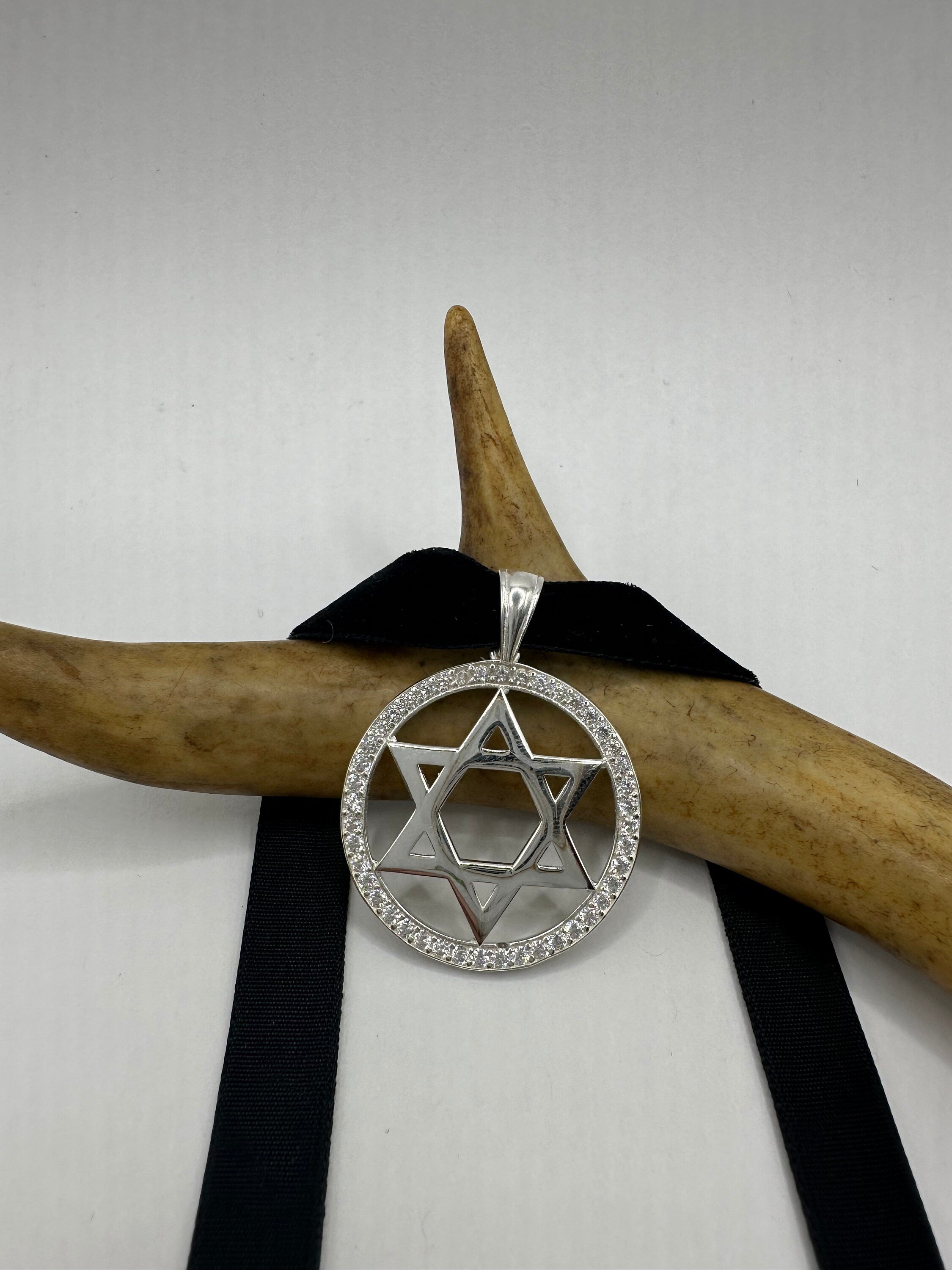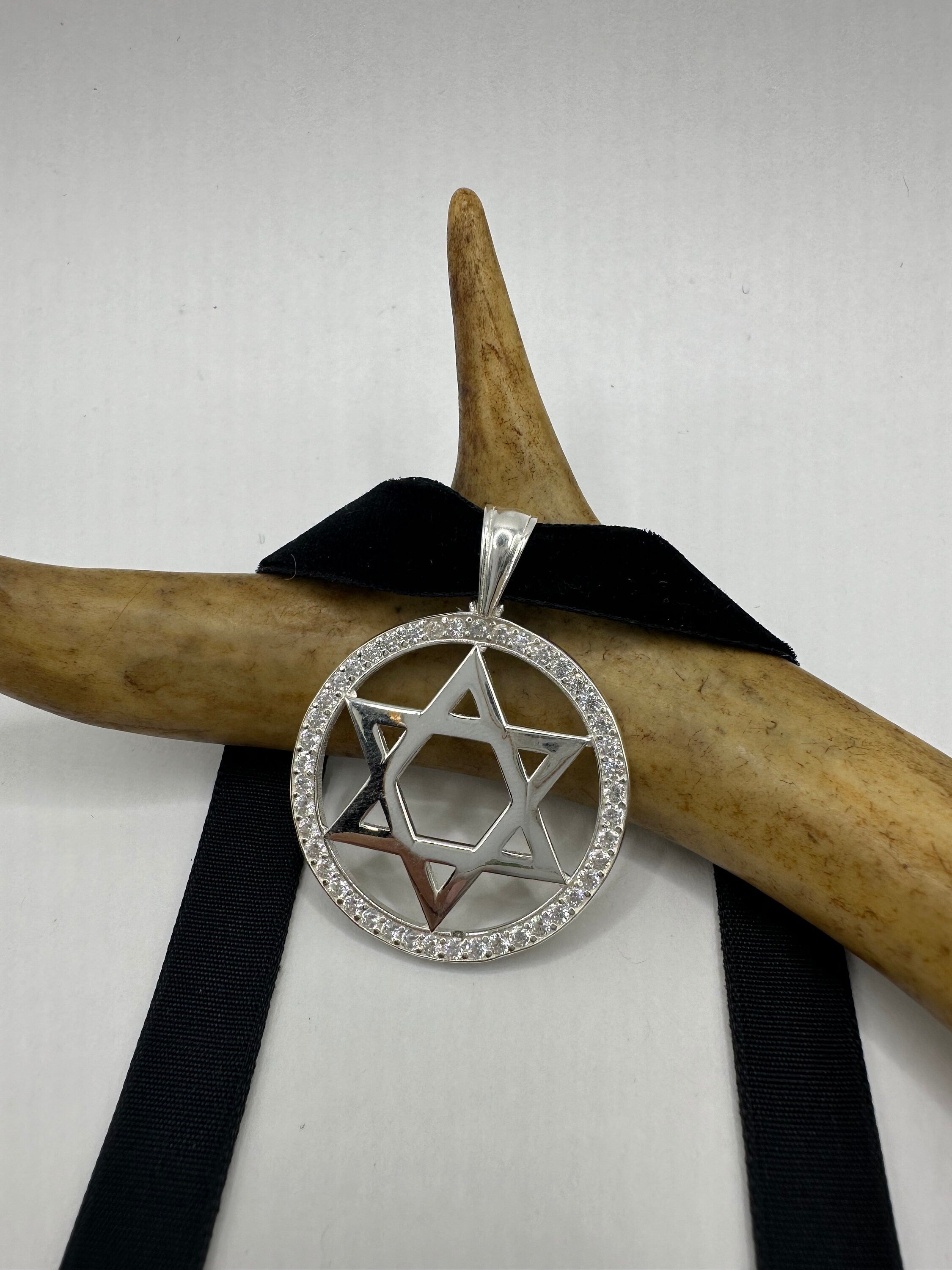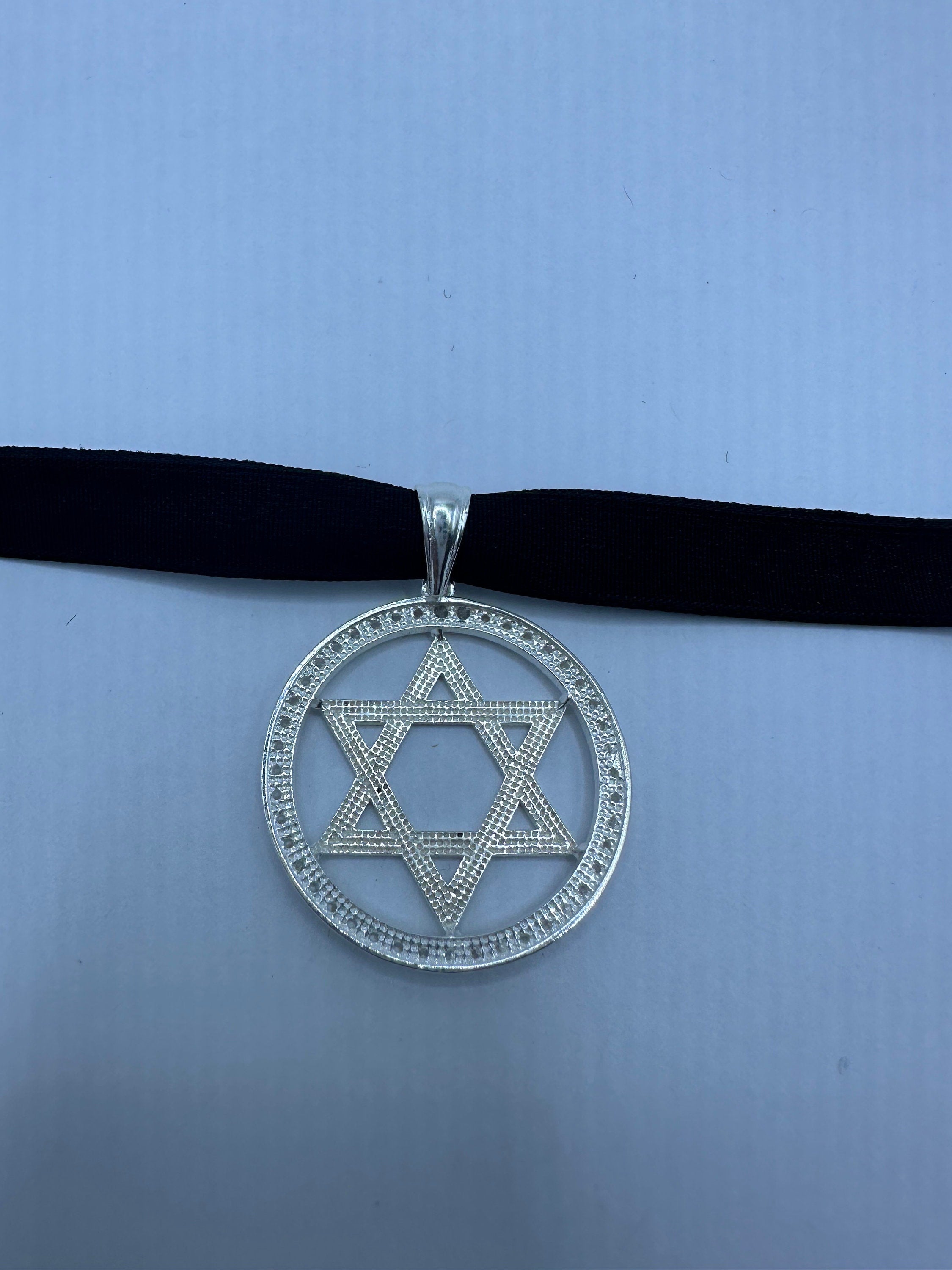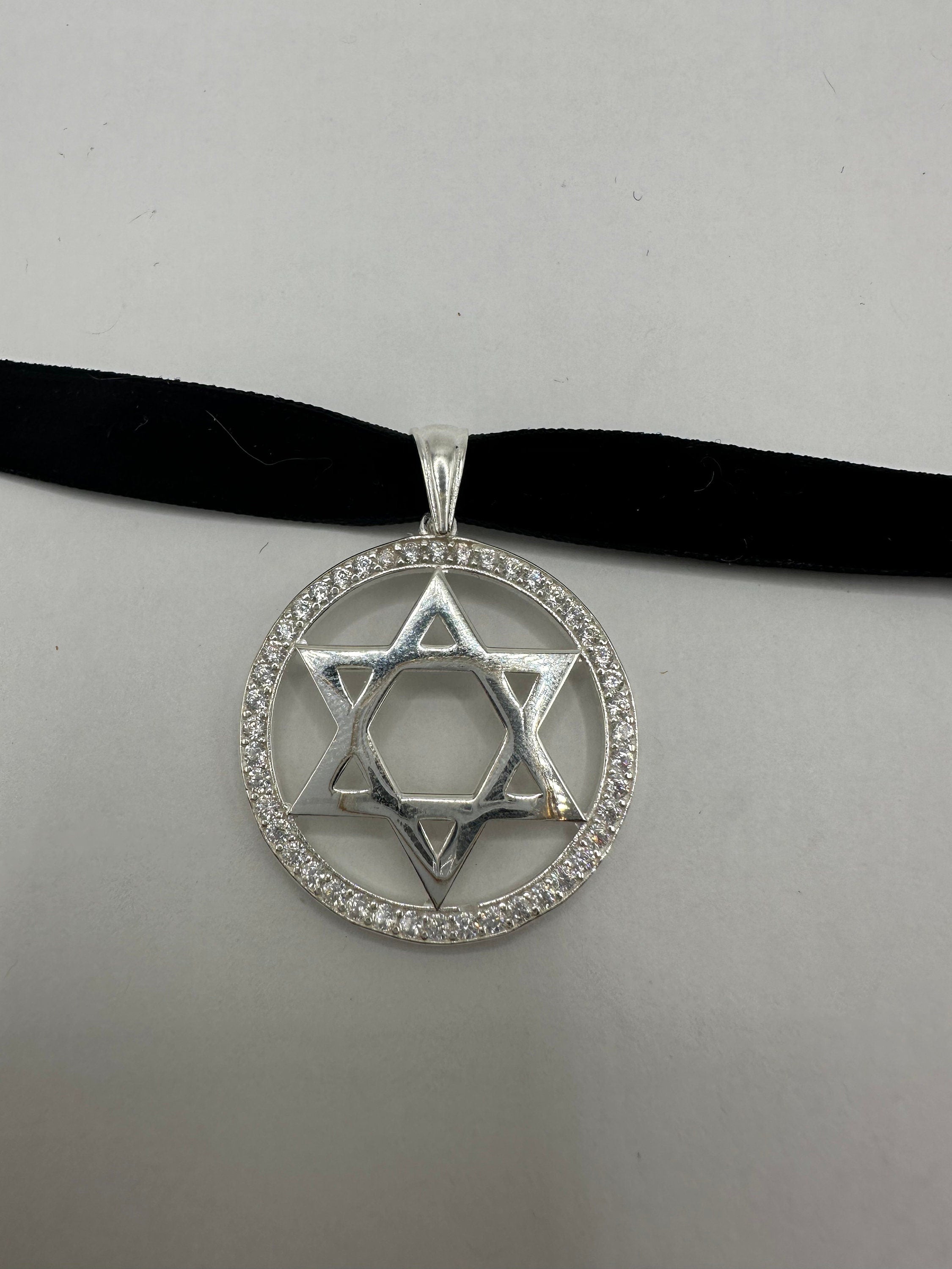 Vintage Silver Star of David Pendant Choker Necklace | 925 Sterling Silver Jewish Star Velvet Ribbon Statement Charm Choker Necklace