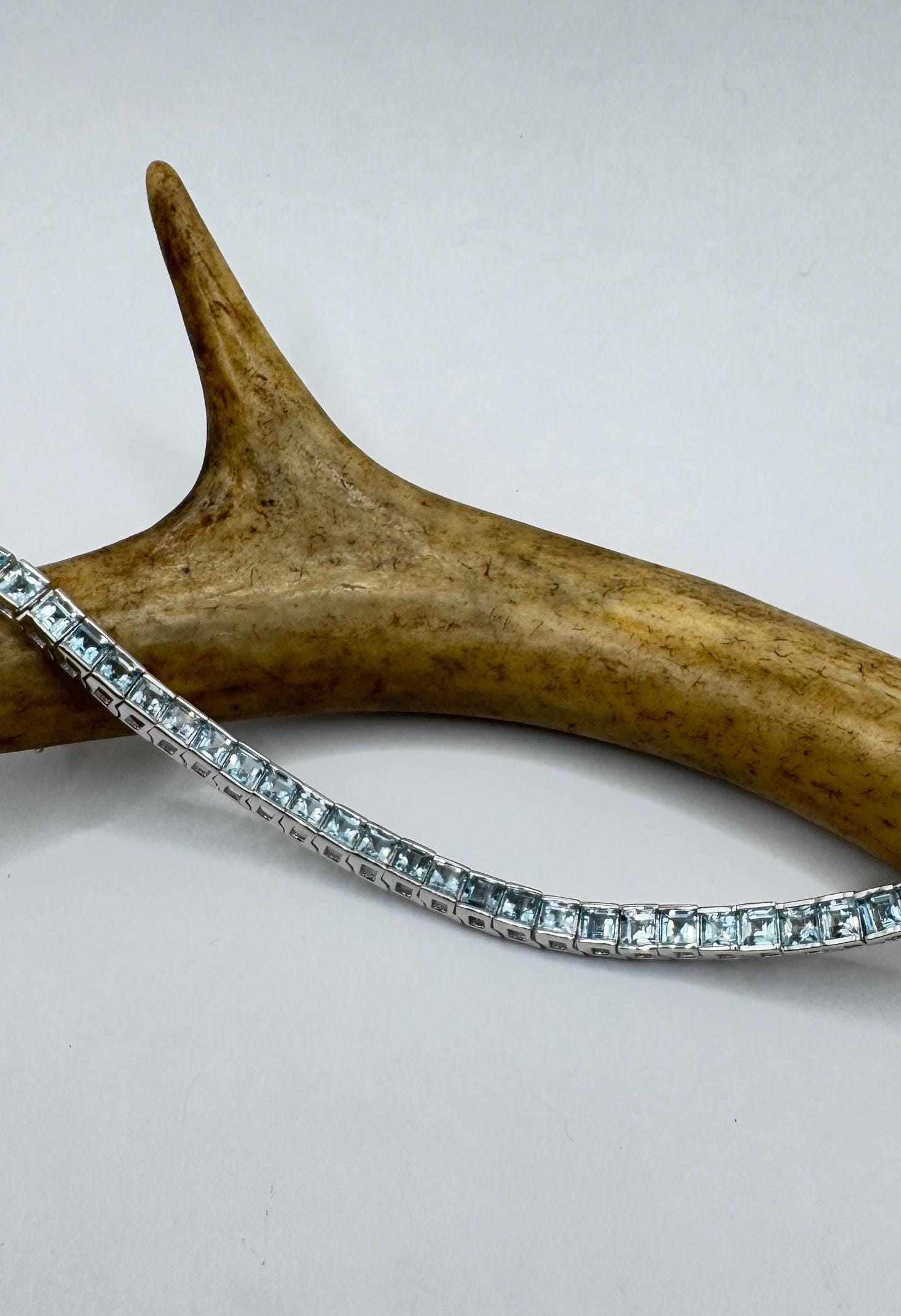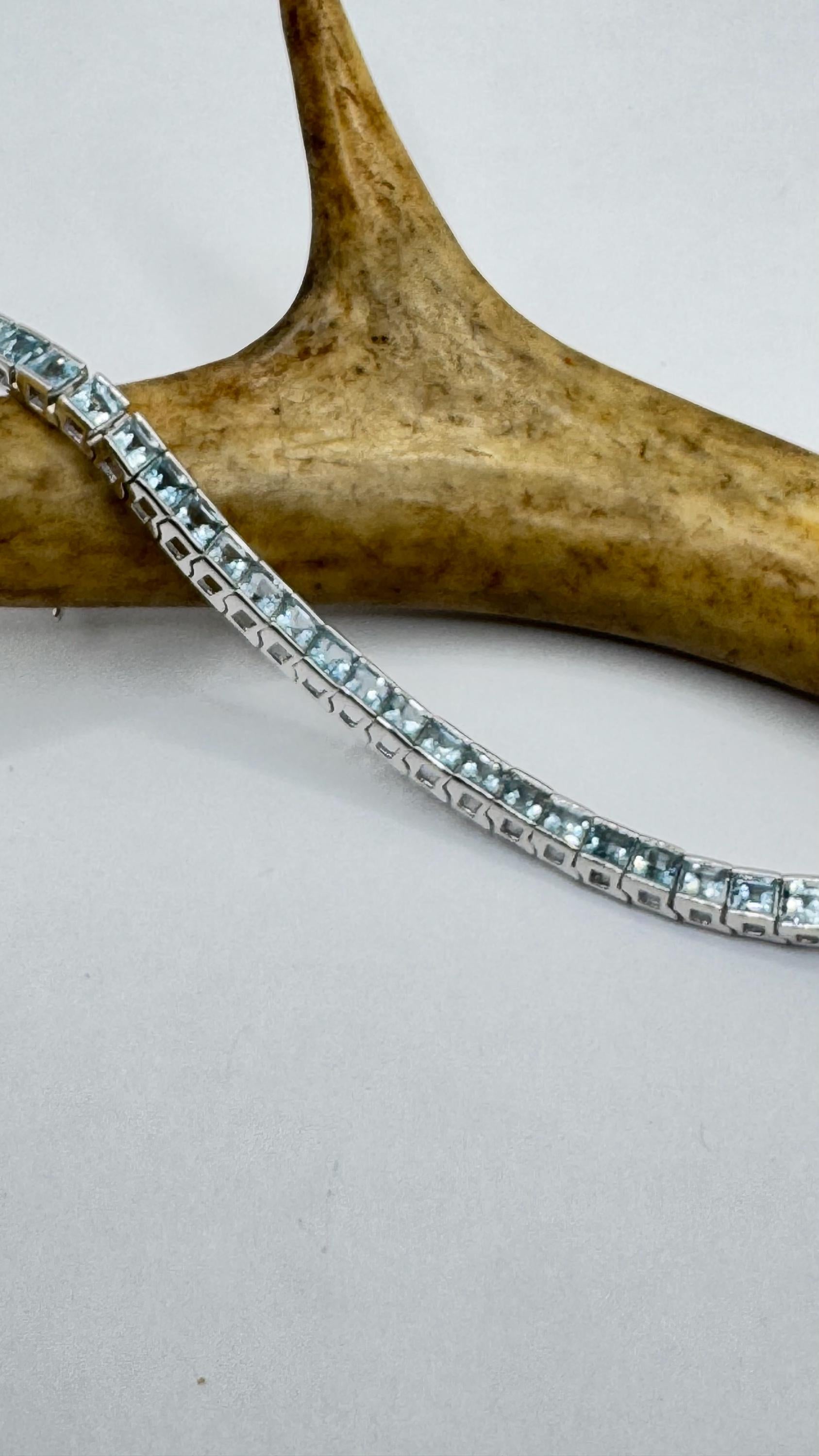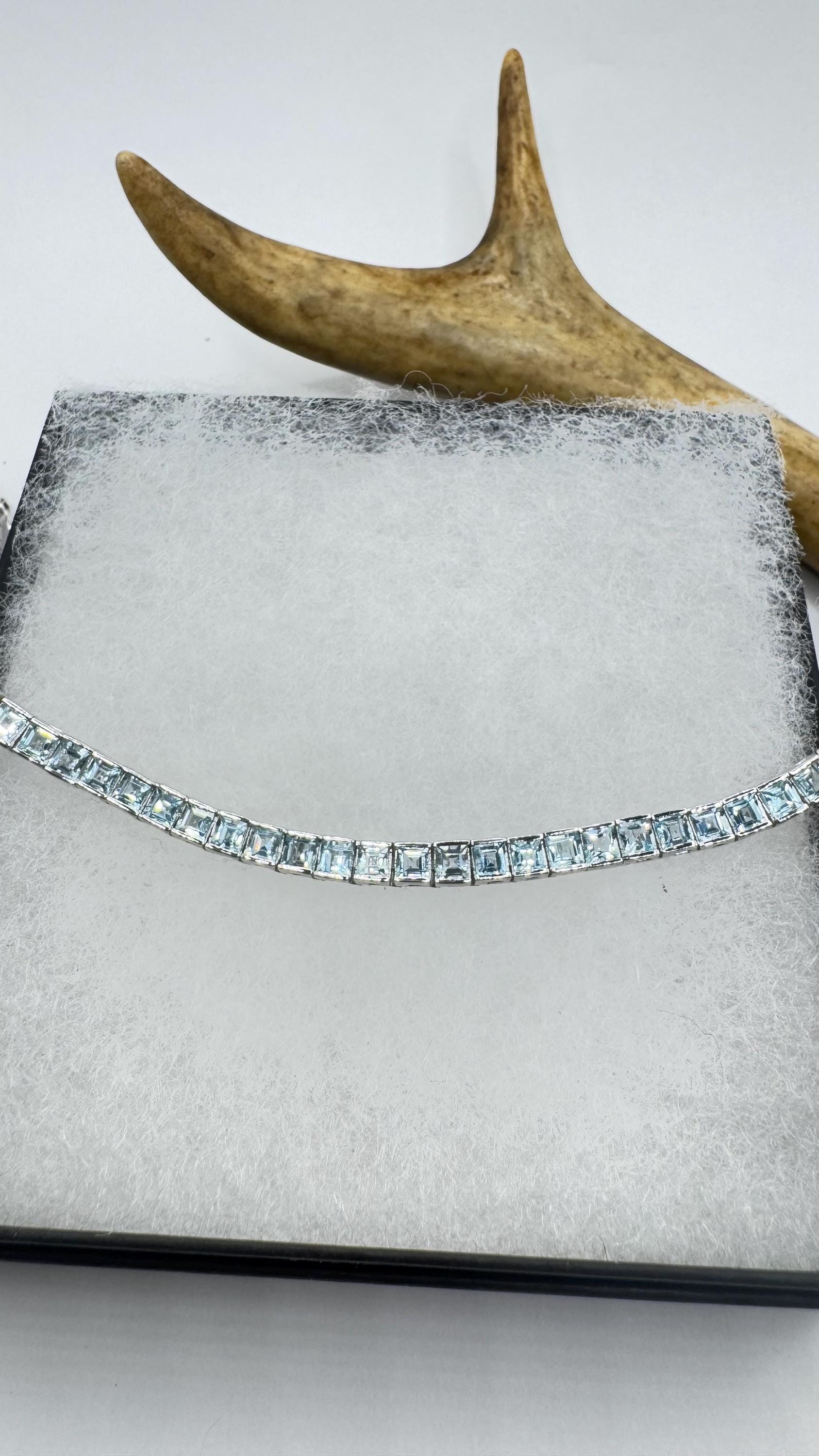 Deco round bezel set pale blue topaz in a 7.5 bracelet Vintage Blue Topaz Tennis Bracelet 925 Sterling Silver Our... Read more