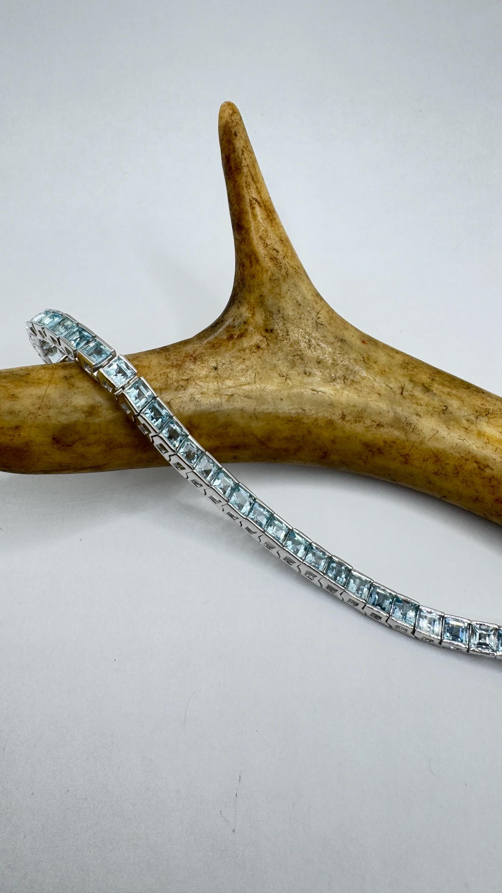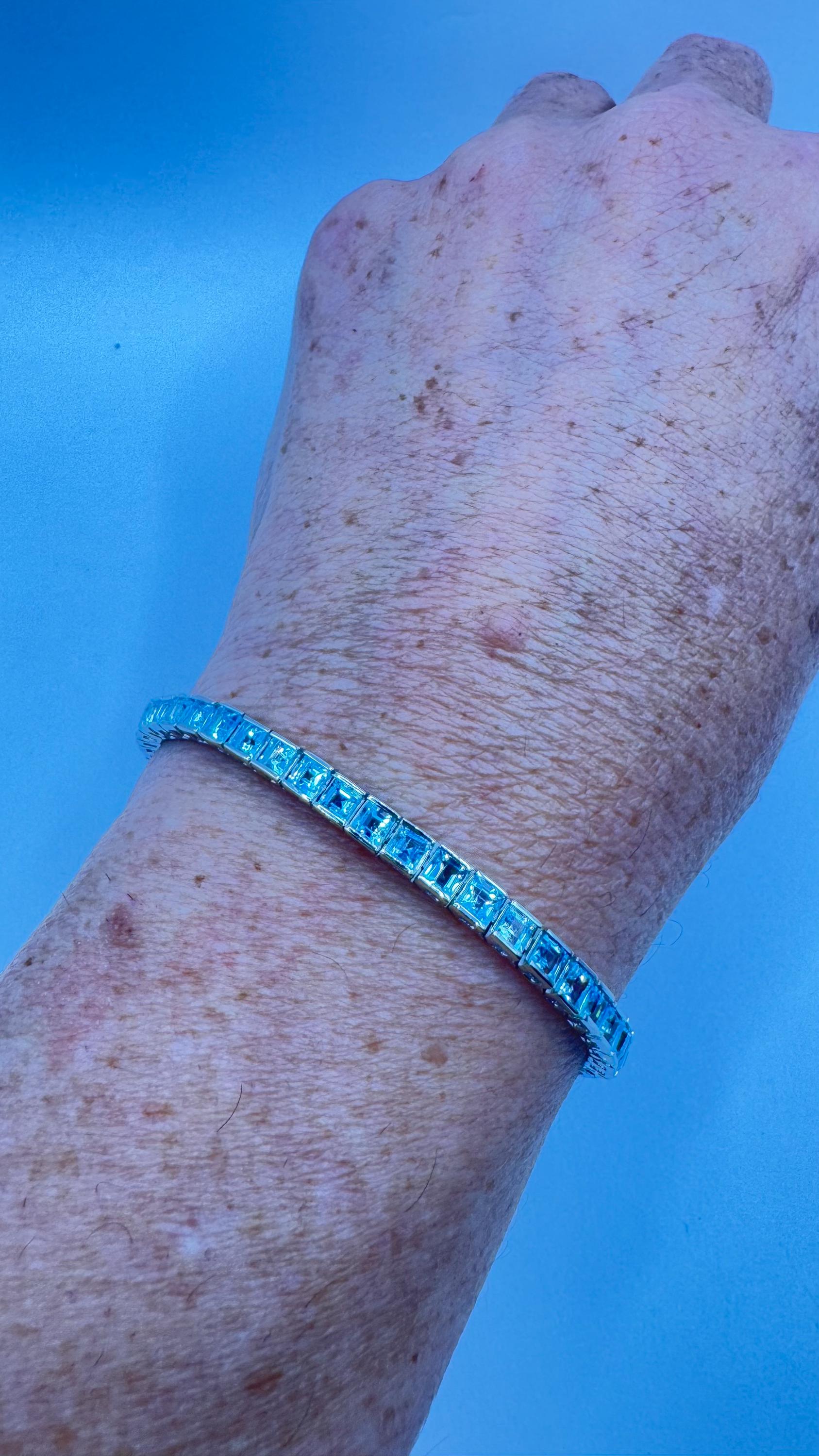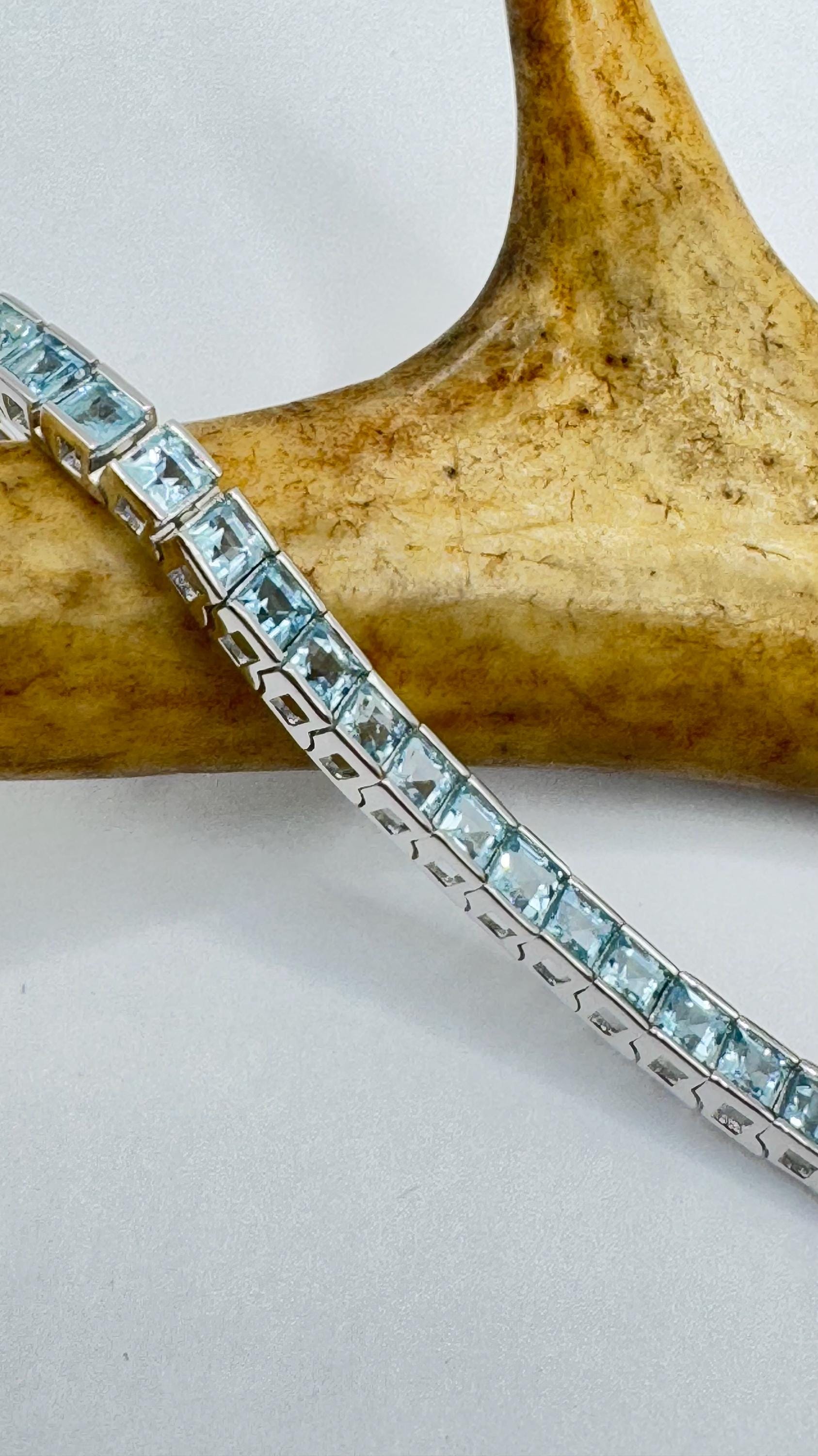 Deco round bezel set pale blue topaz in a 7.5 bracelet Vintage Blue Topaz Tennis Bracelet 925 Sterling Silver Our... Read more