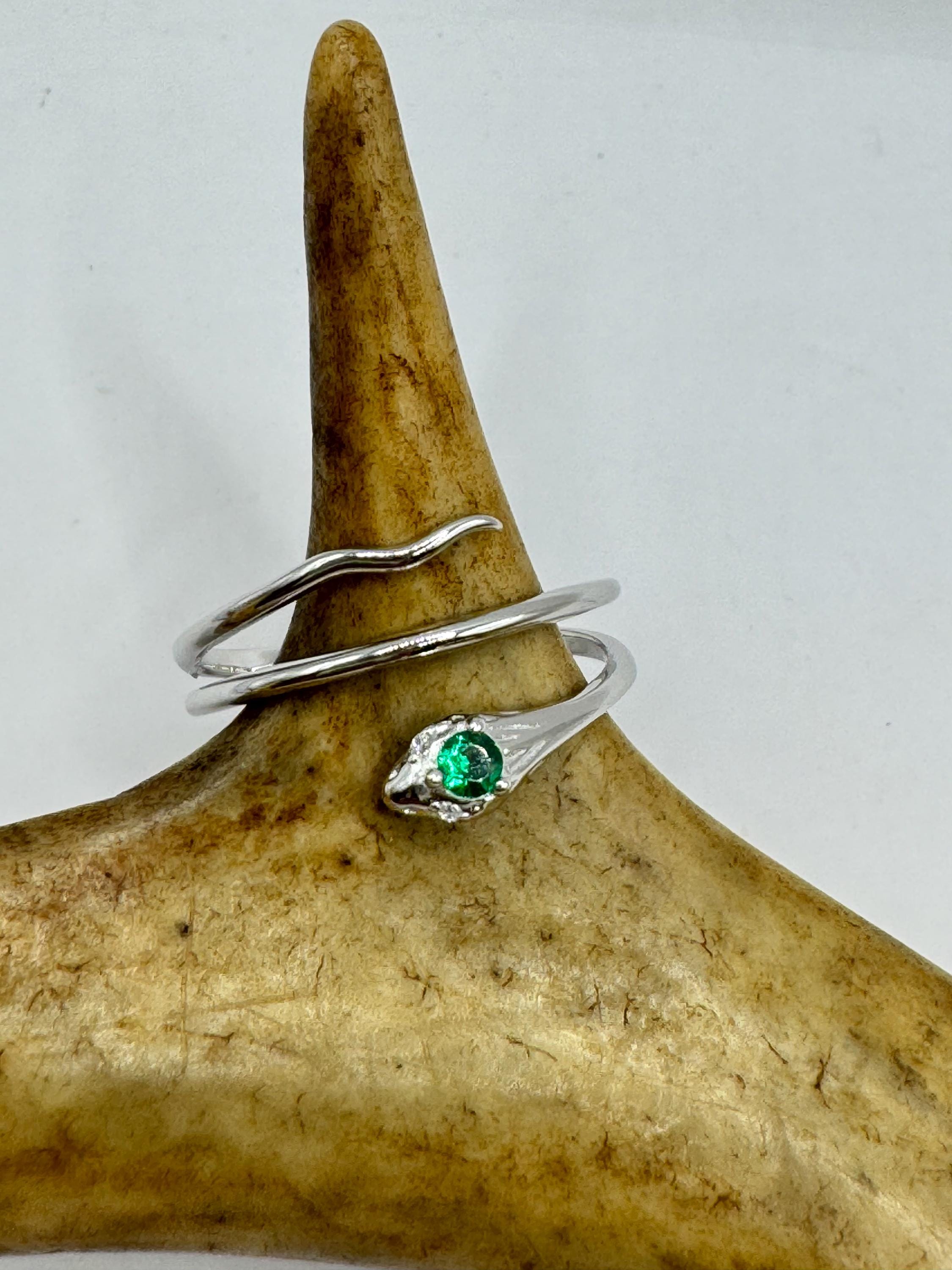 Our Vintage Snake Ring 925 sterling silver set with a green chrome diopside gemstone eye Its adjustable size range from... Read more