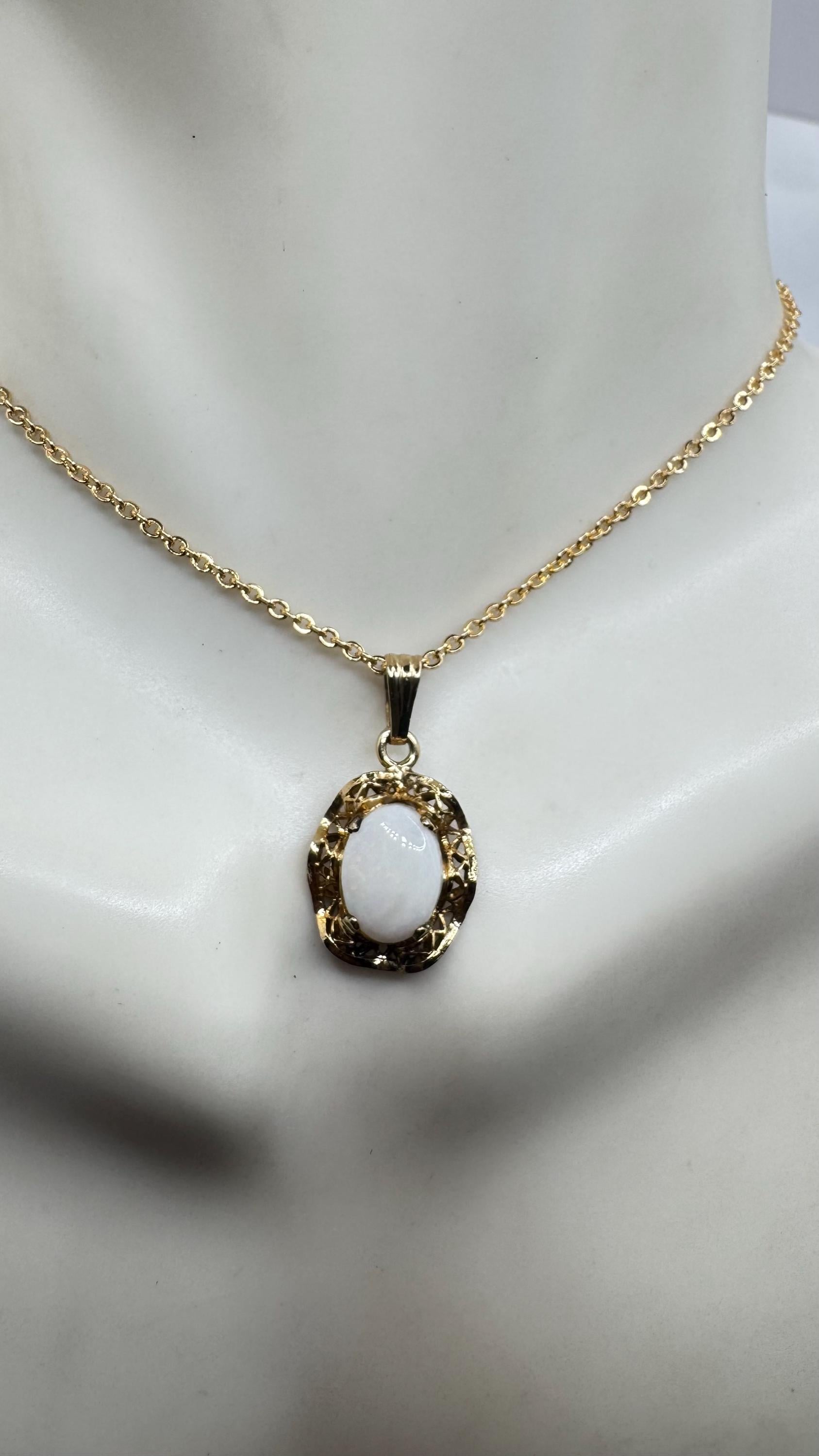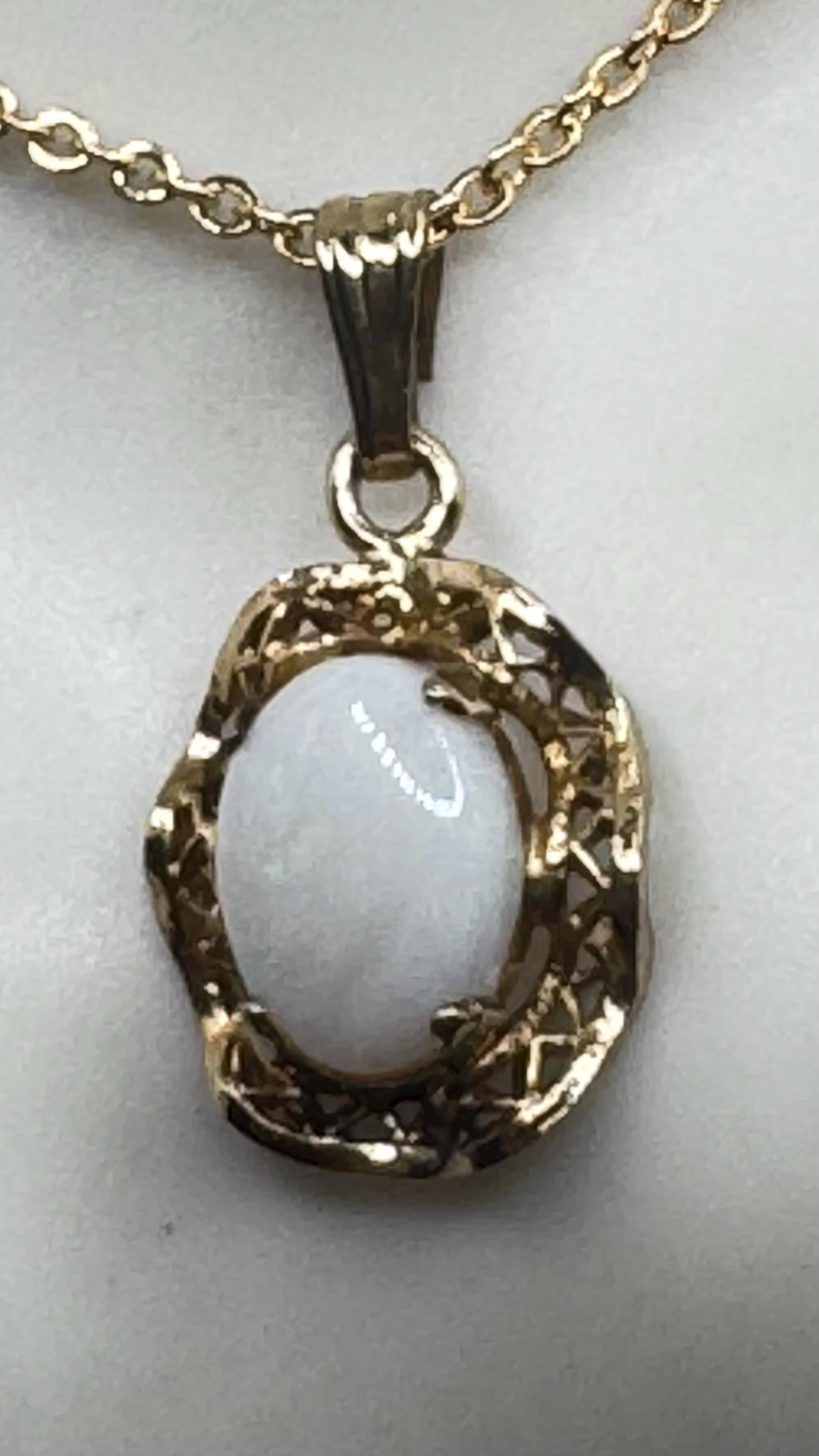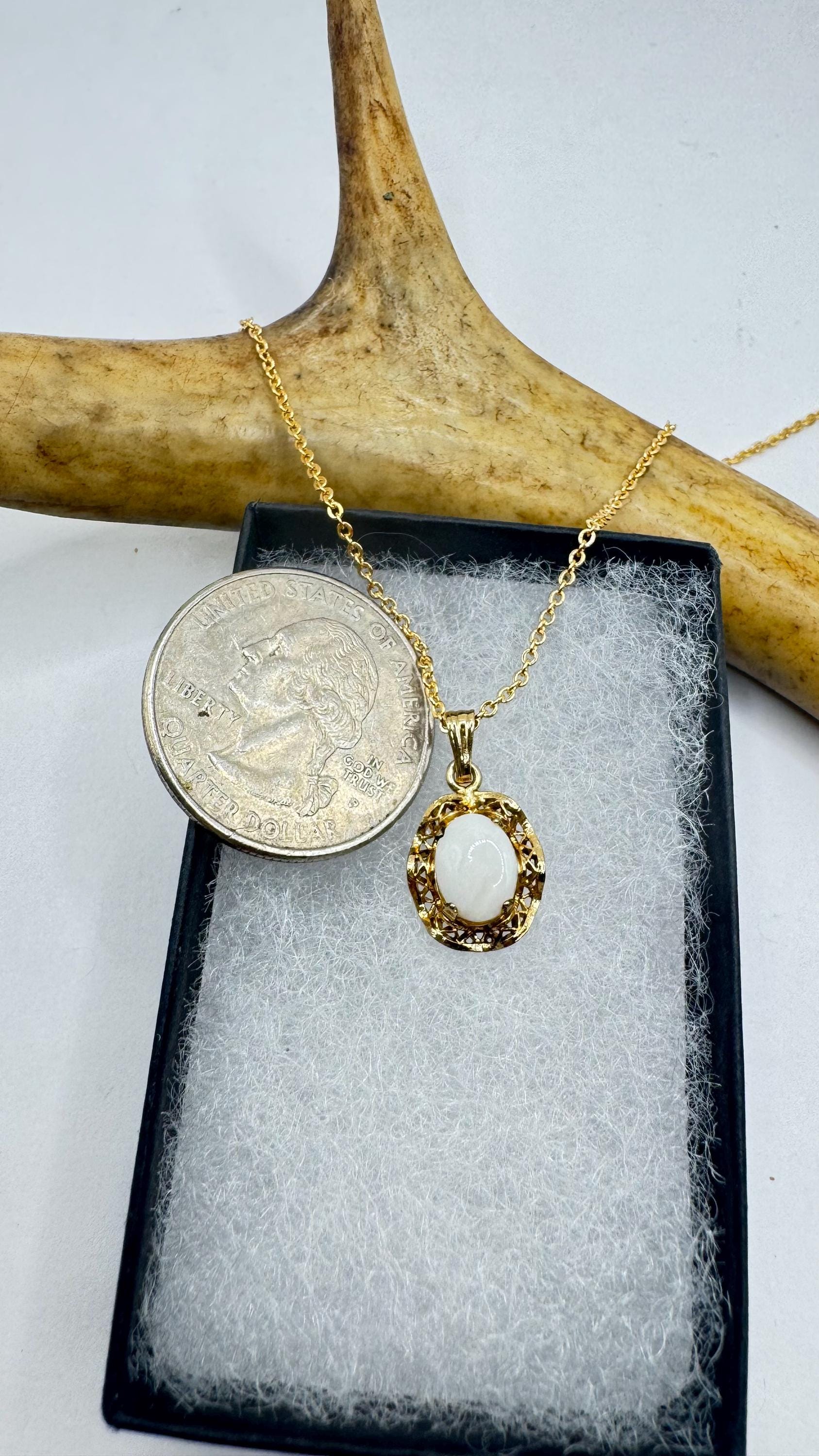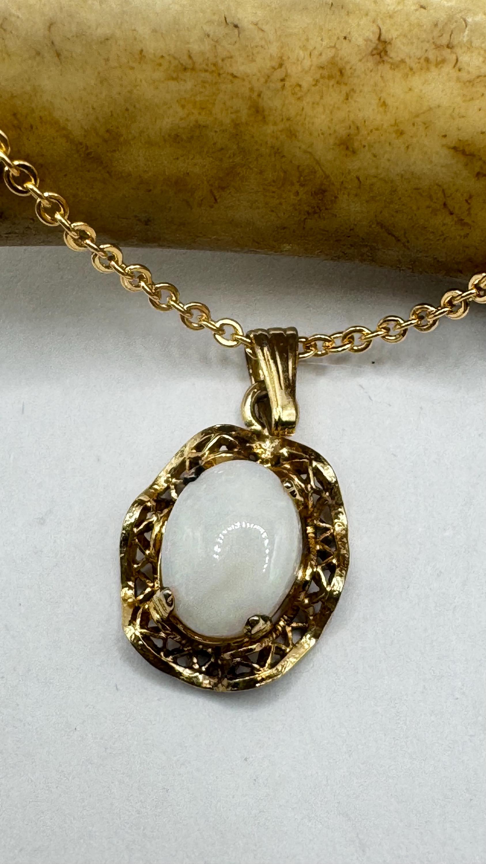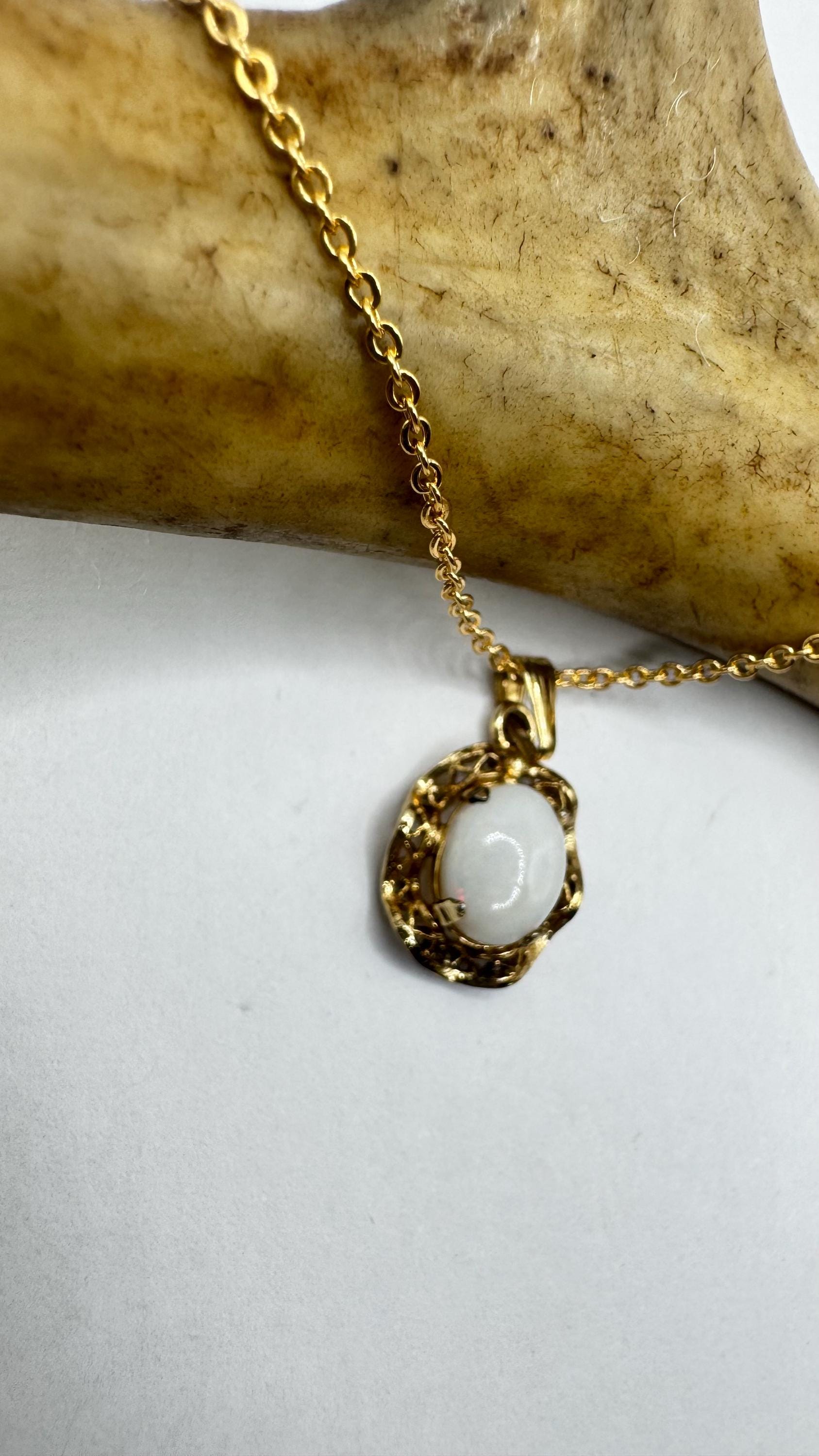 Vintage Tiny White Fire Opal Necklace Gold Filled