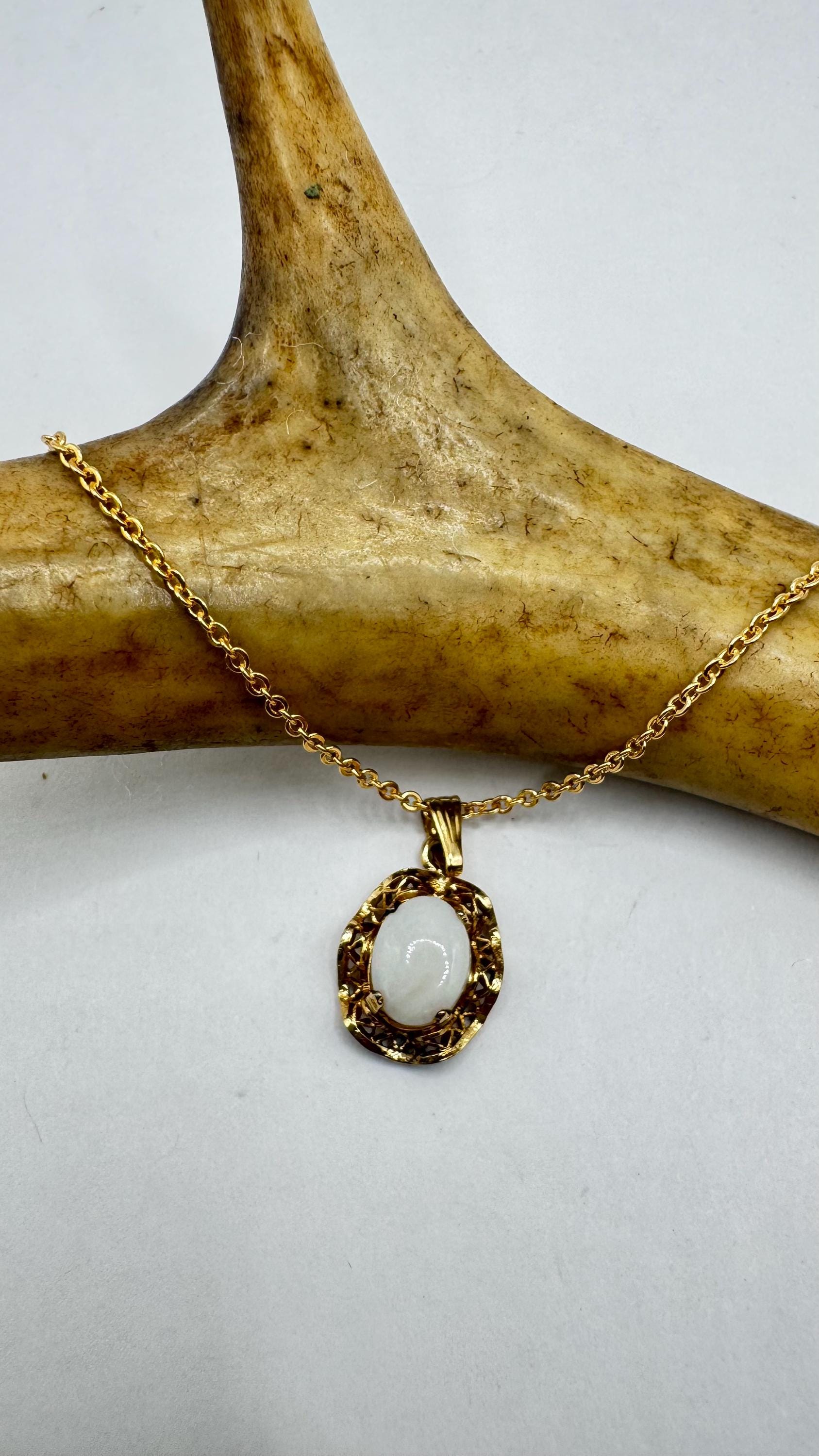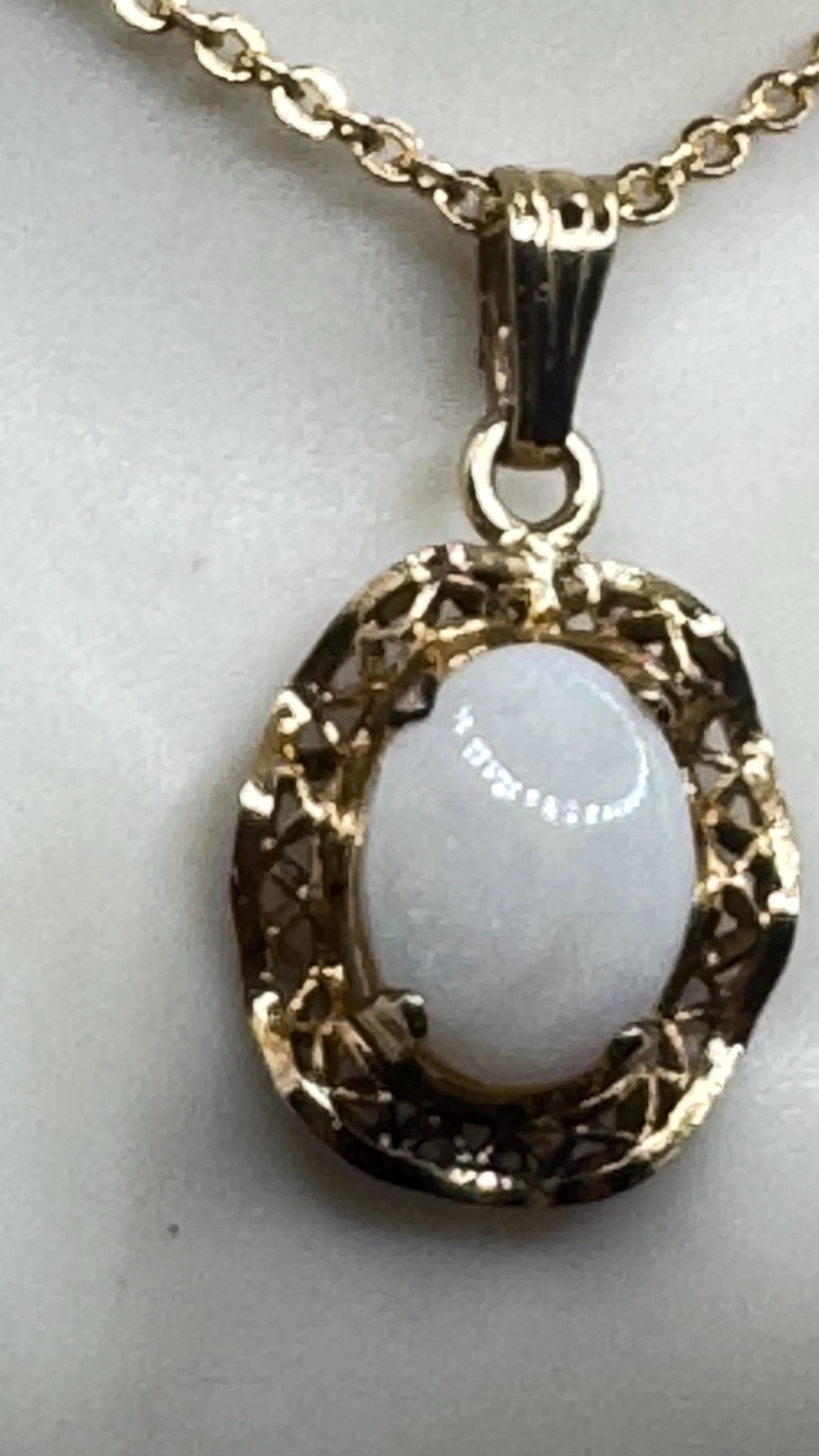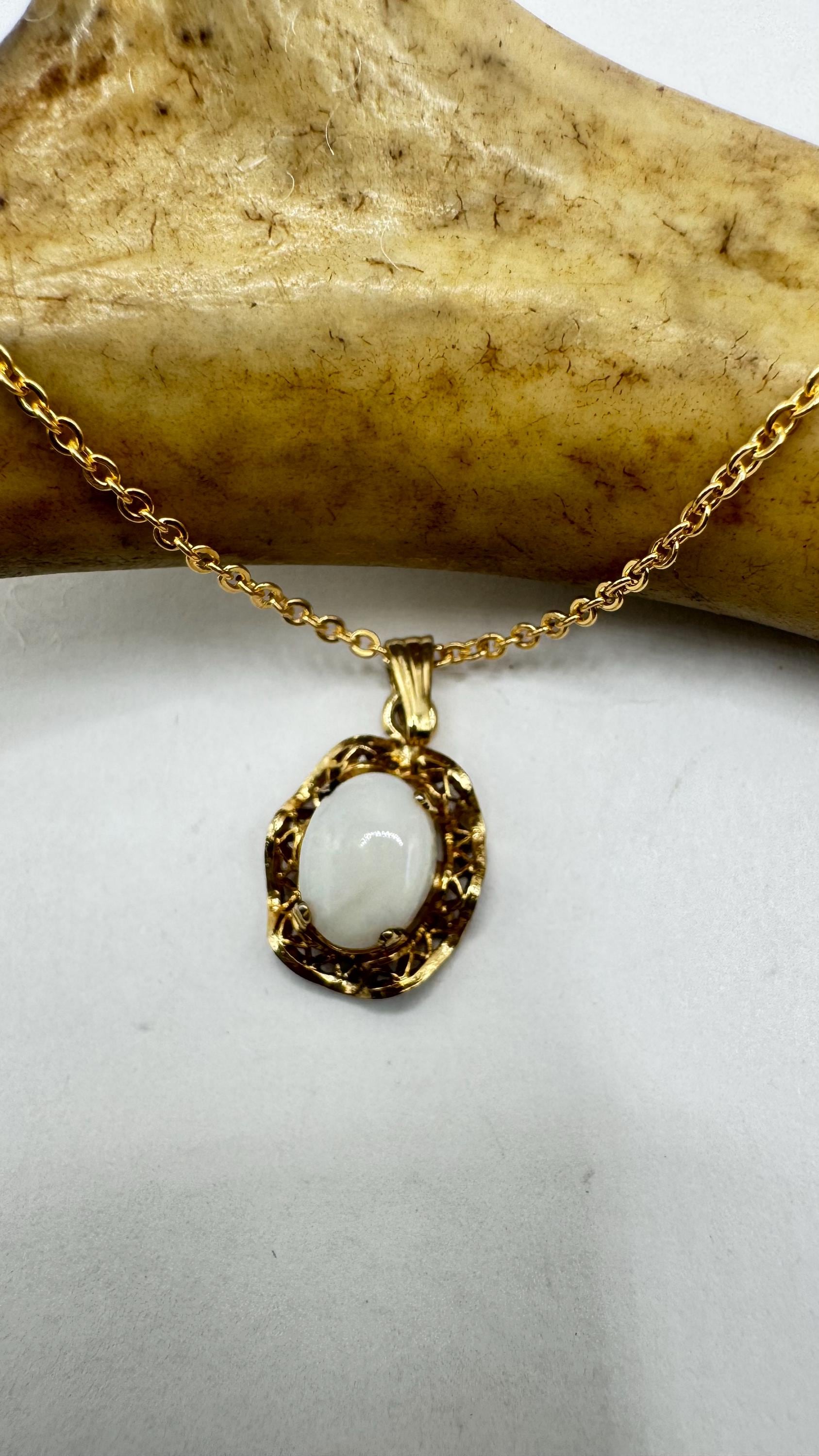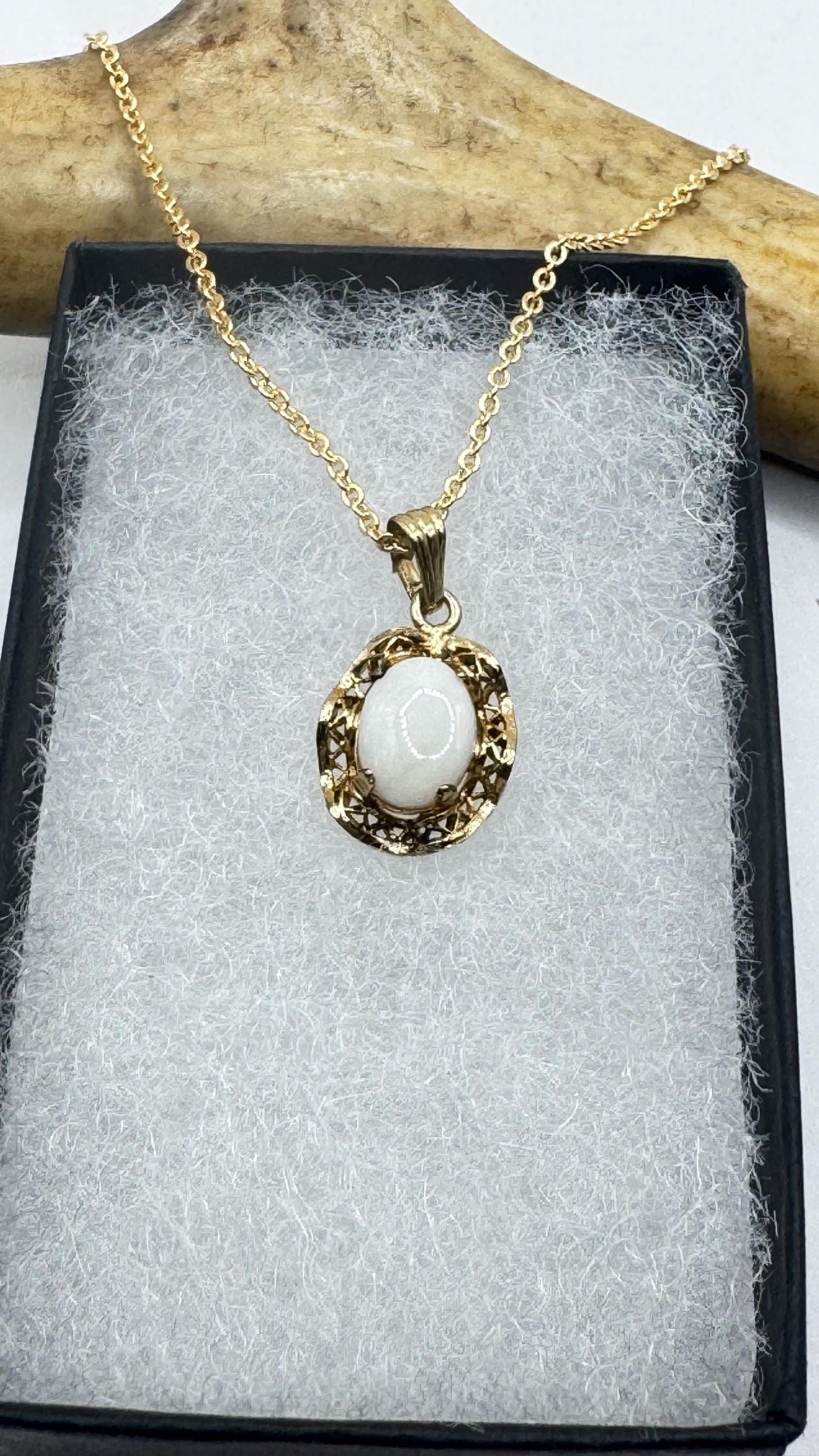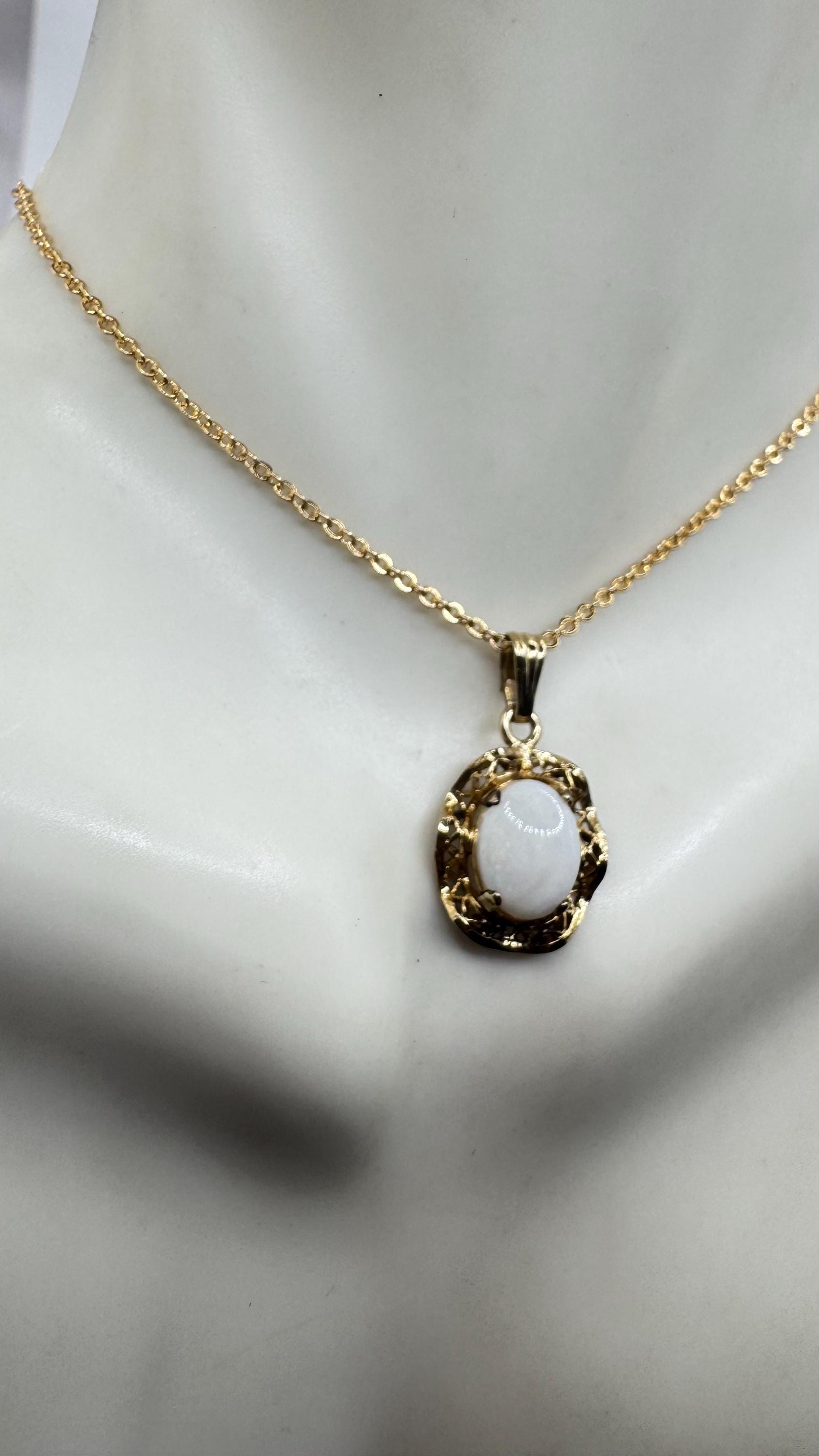 Vintage Tiny White Fire Opal Necklace Gold Filled