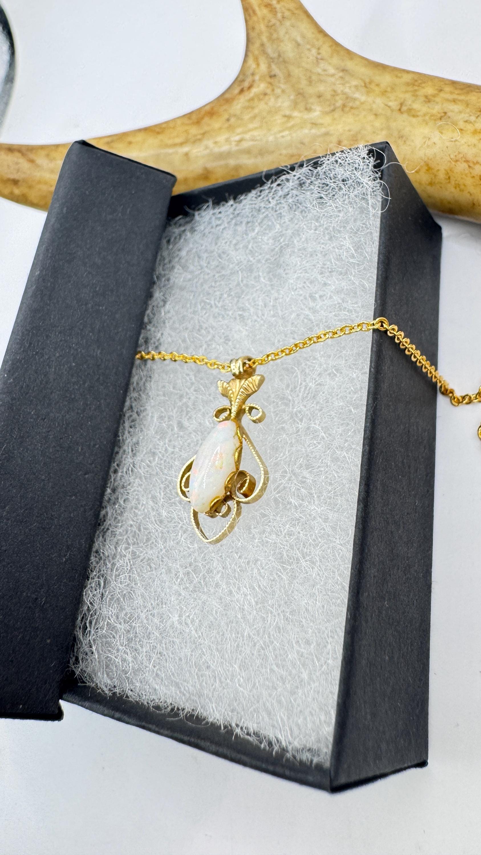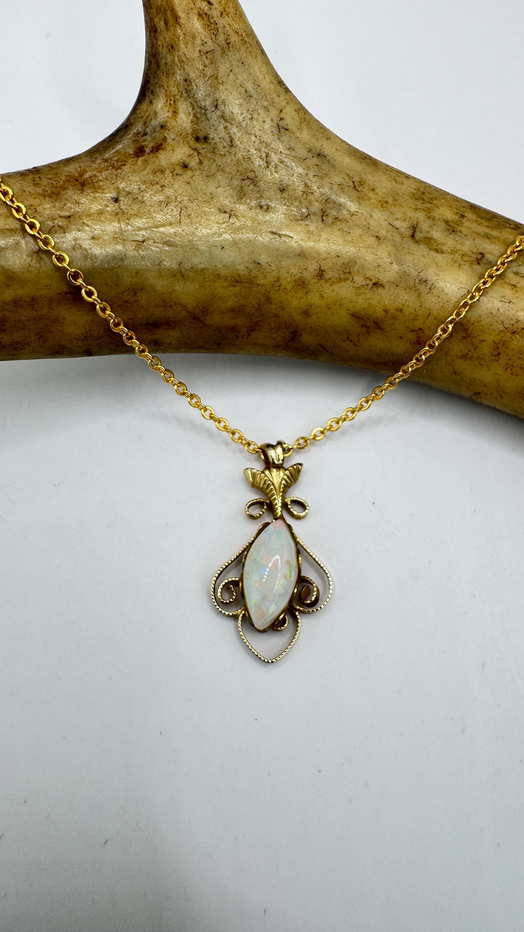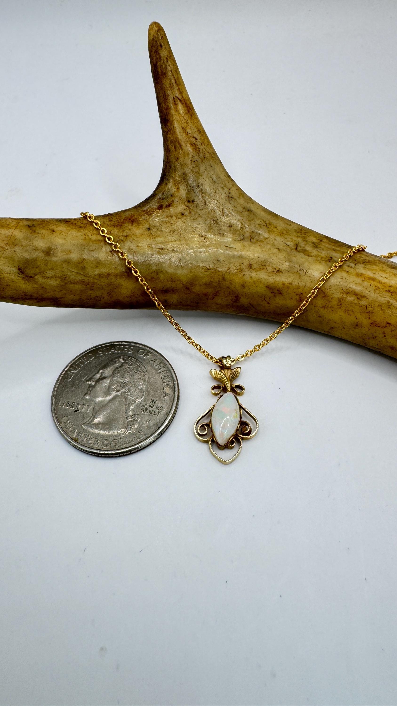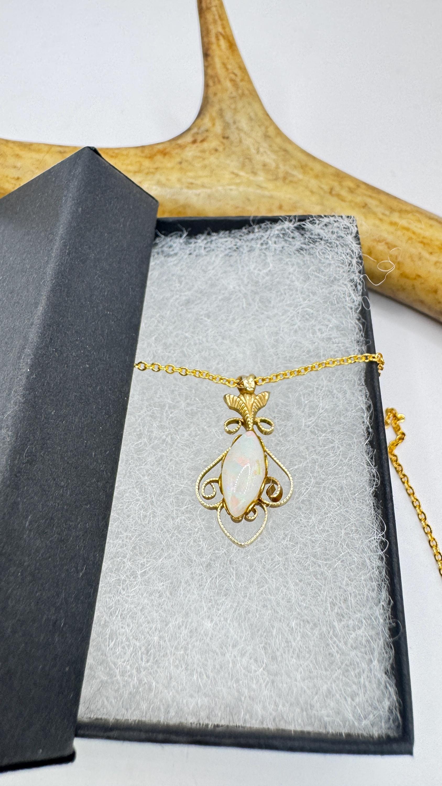 Vintage Tiny White Fire Opal Necklace Gold Filled