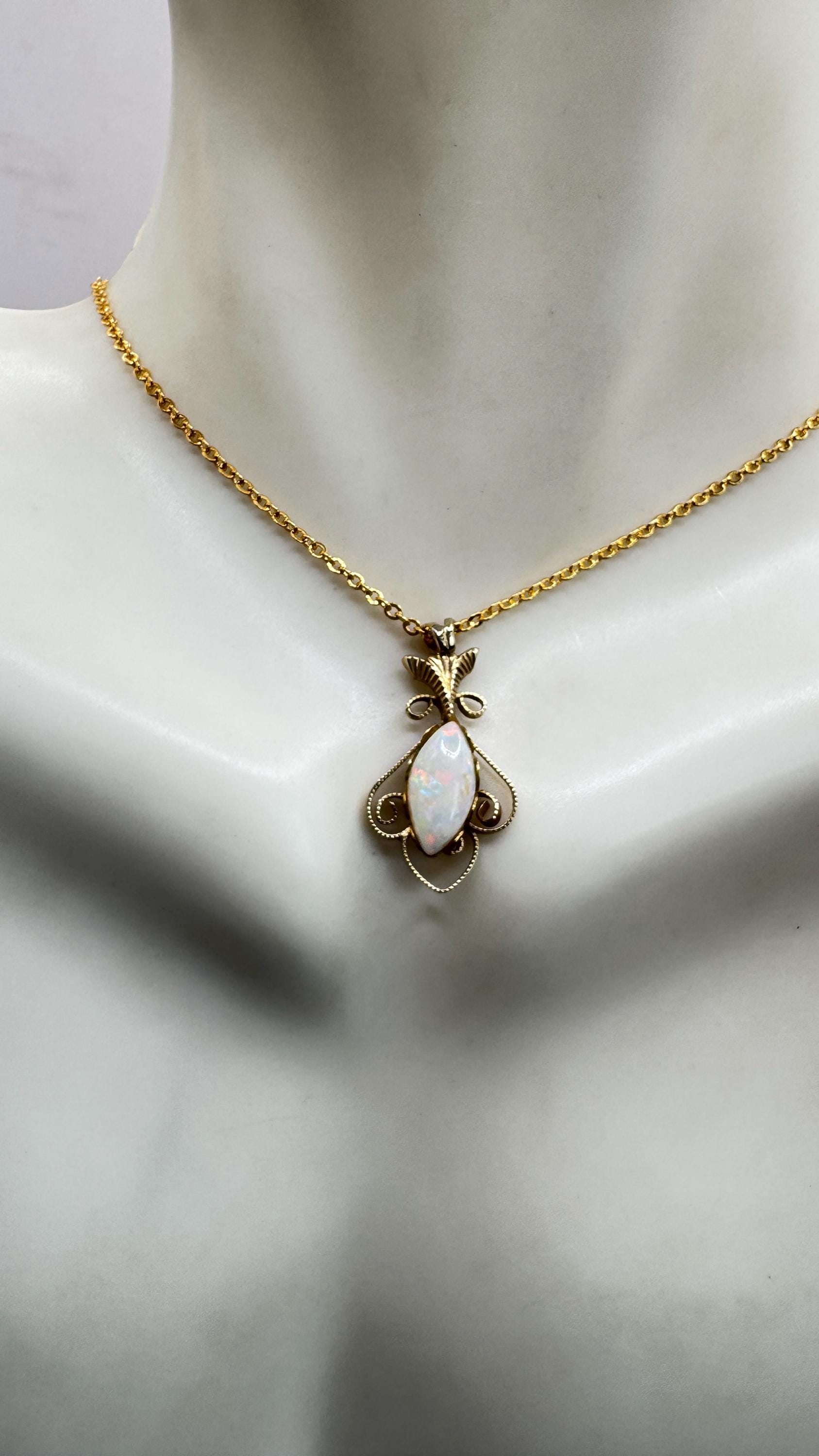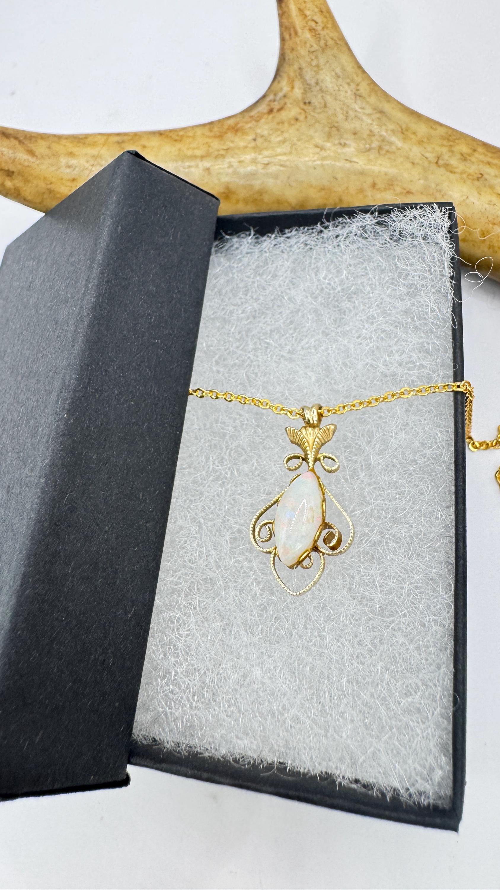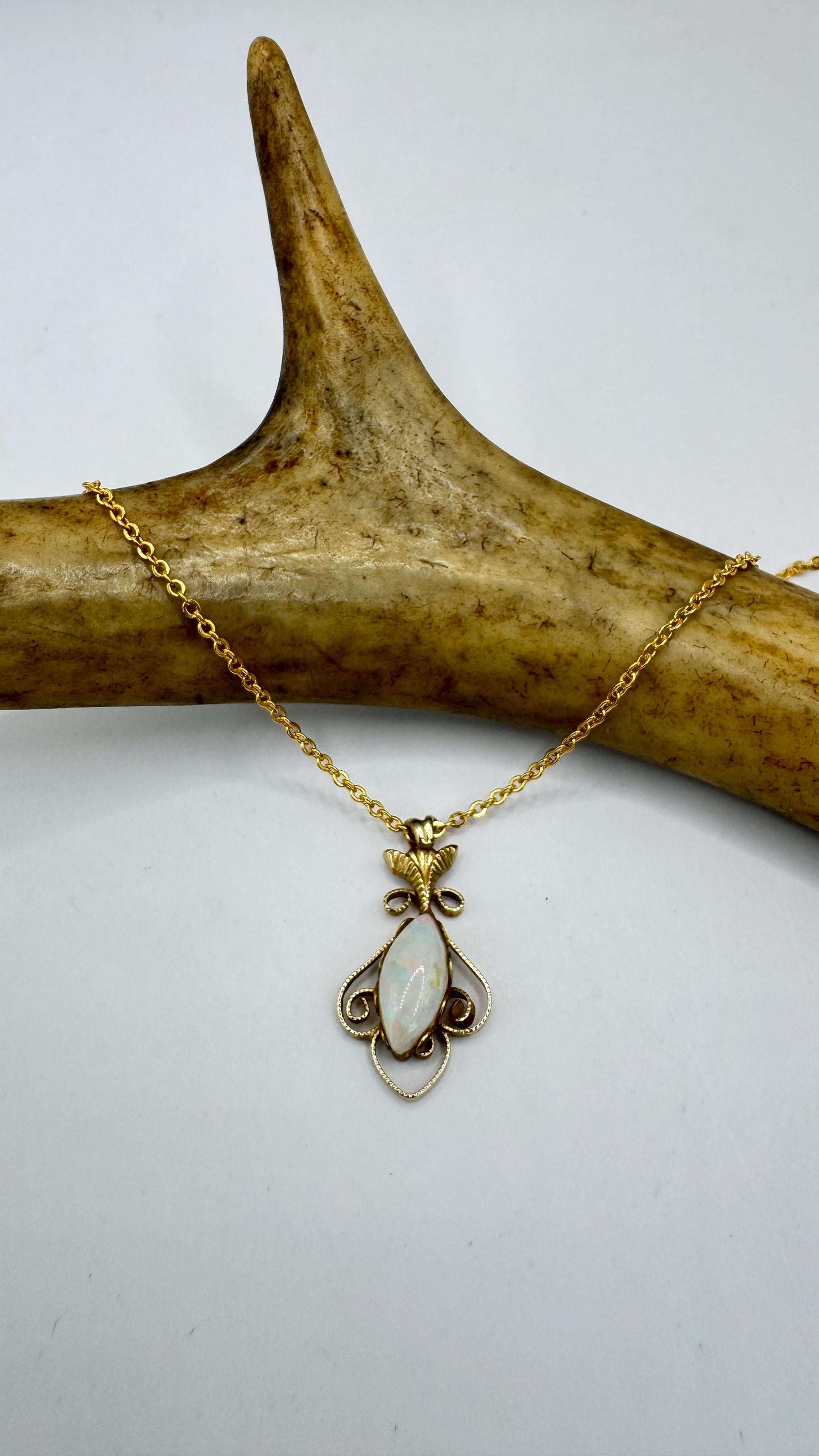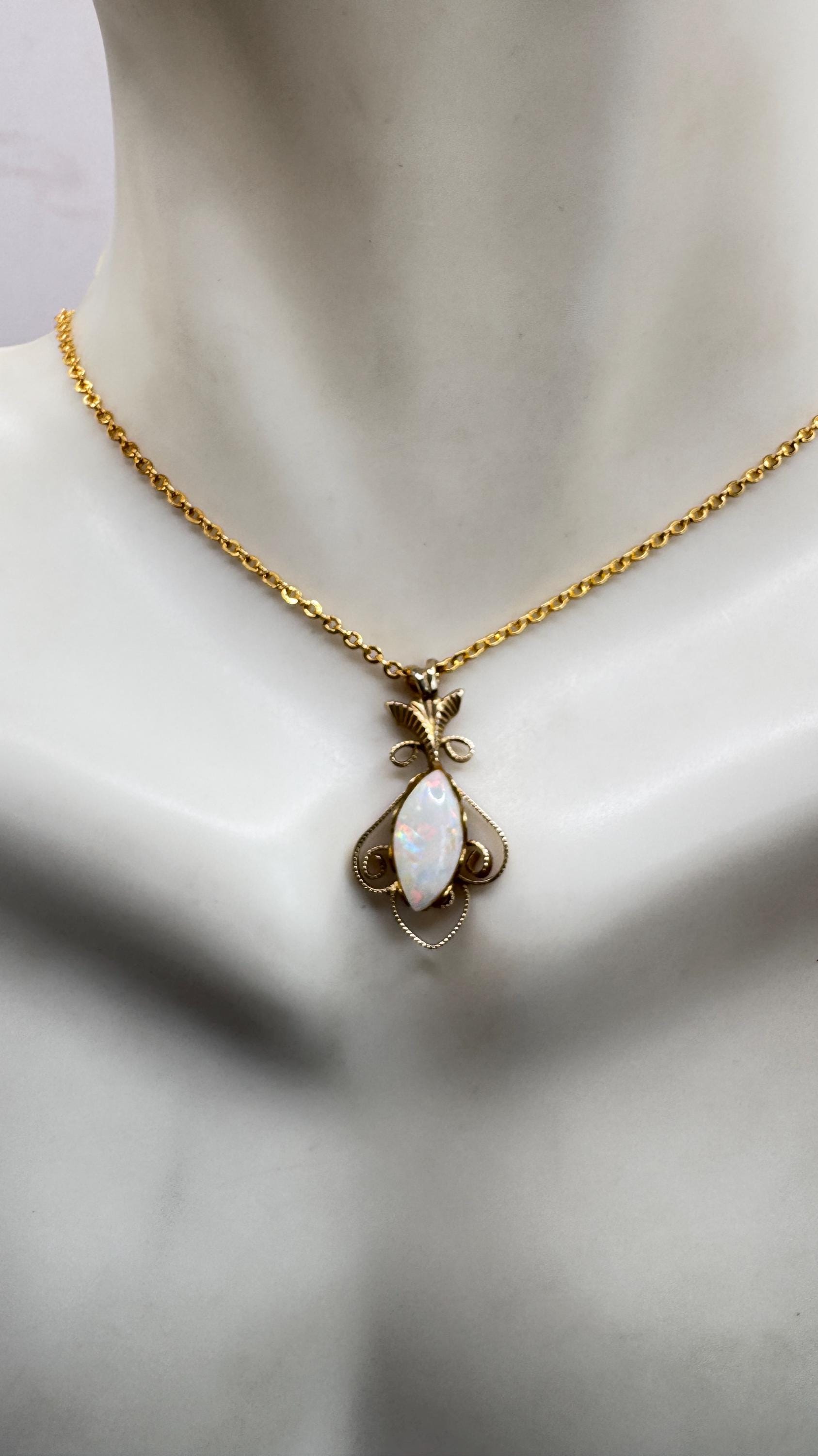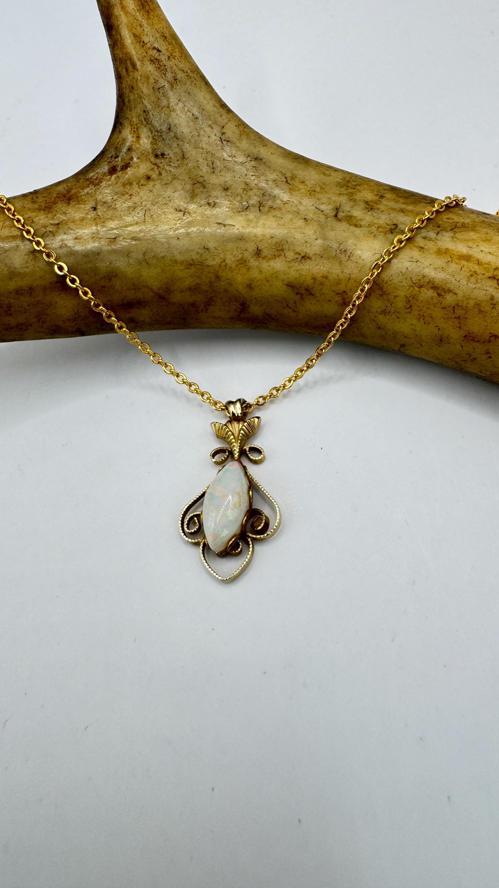 Vintage Tiny White Fire Opal Necklace Gold Filled