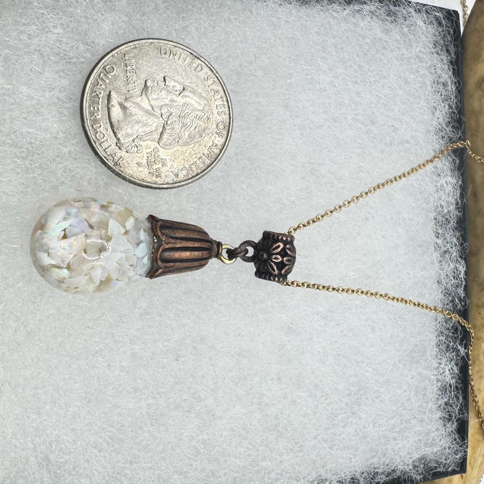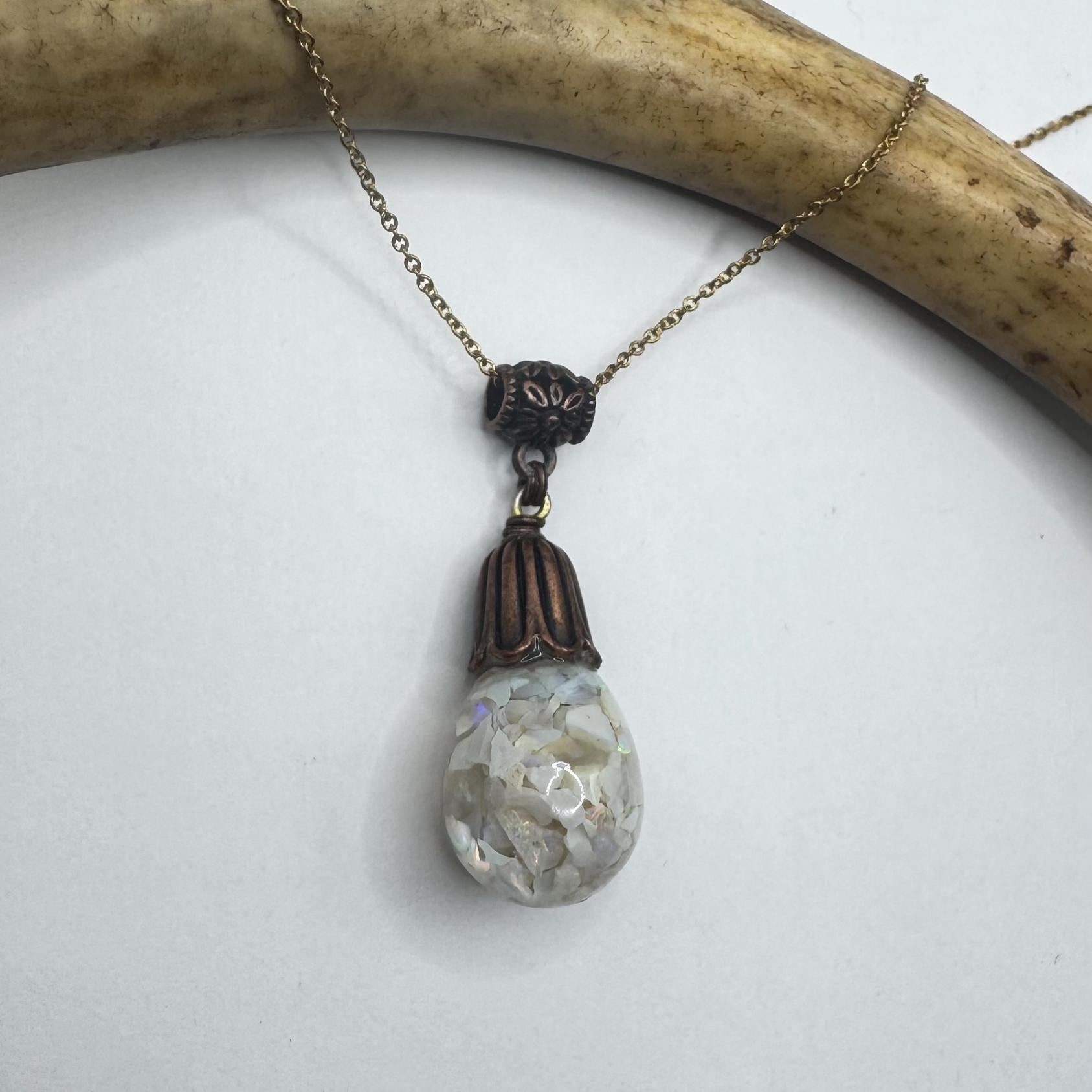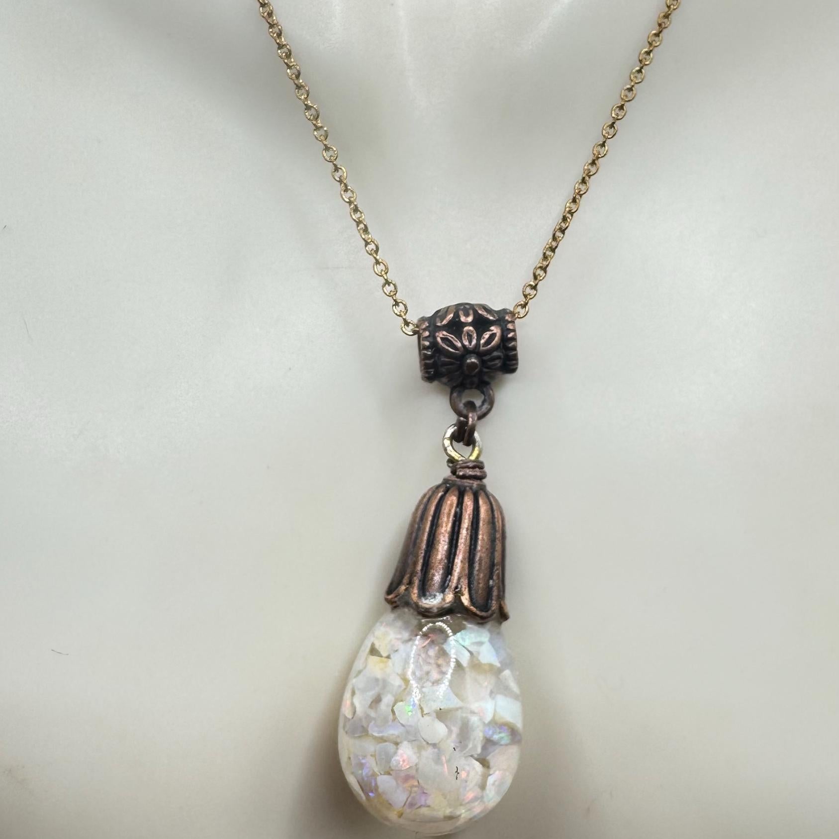 Vintage White Fire Floating Opal Necklace Bronze