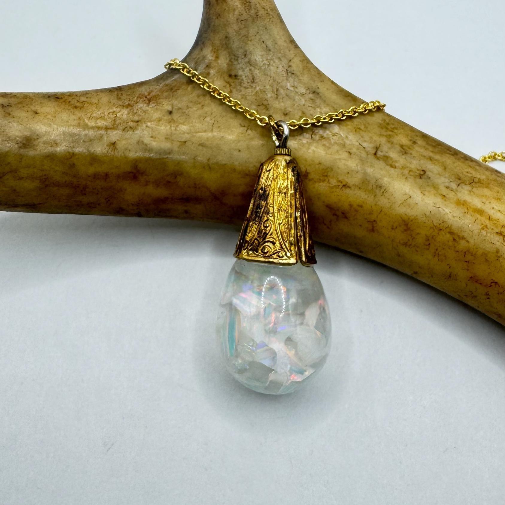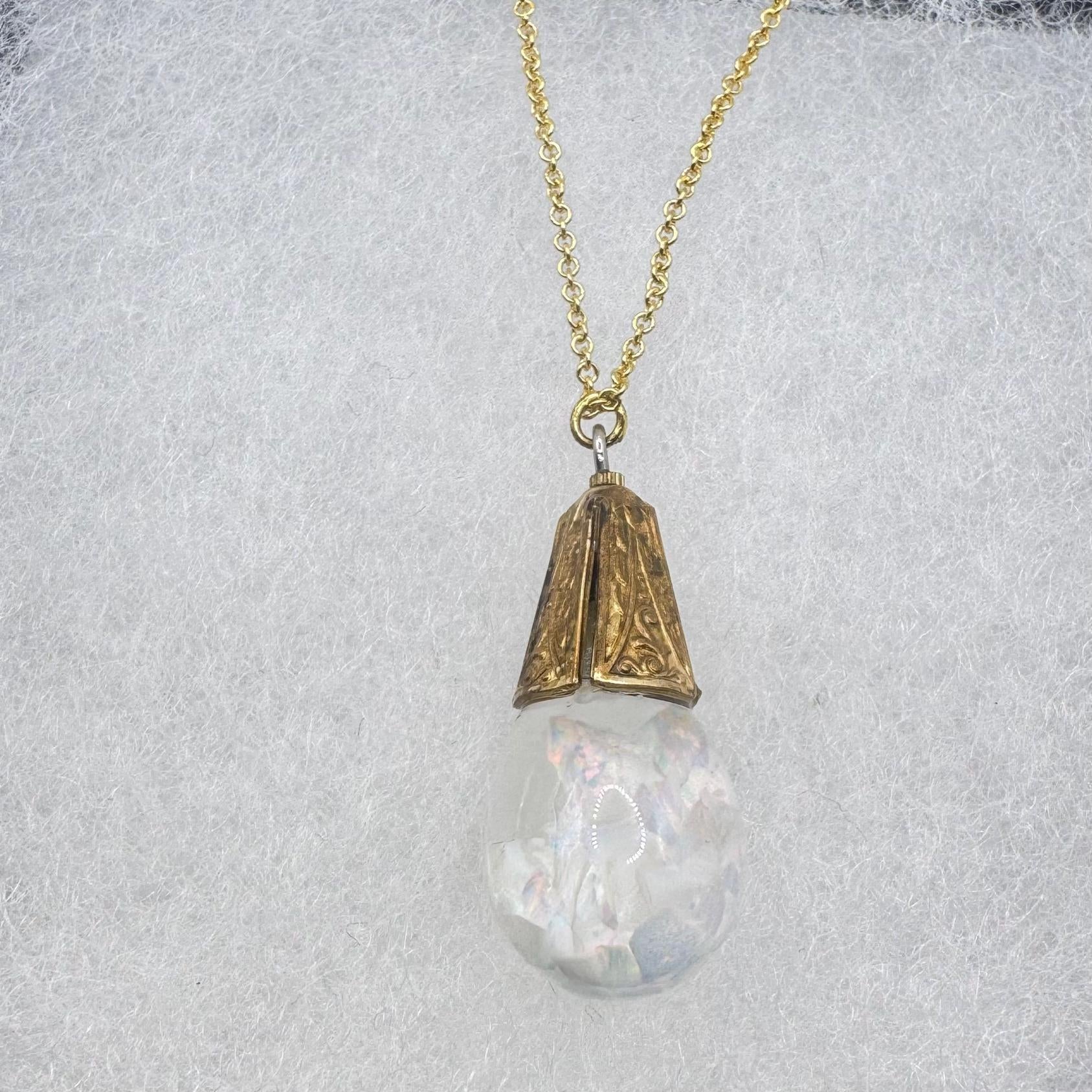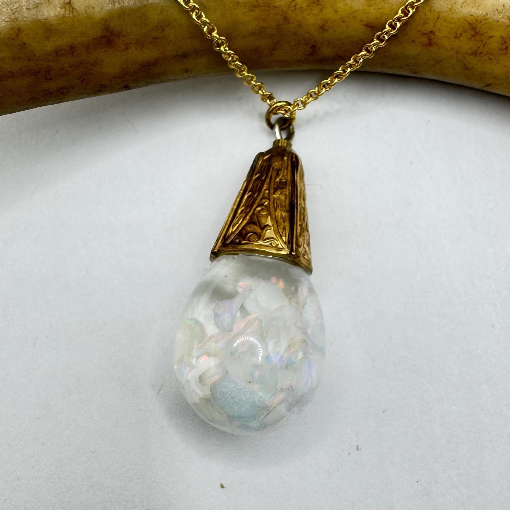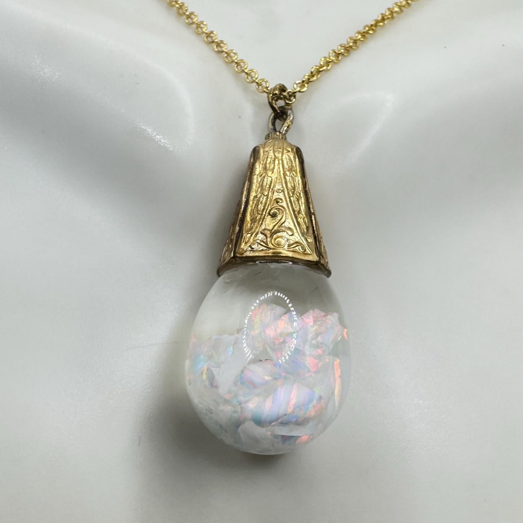 Vintage White Fire Floating Opal Necklace Gold Filled