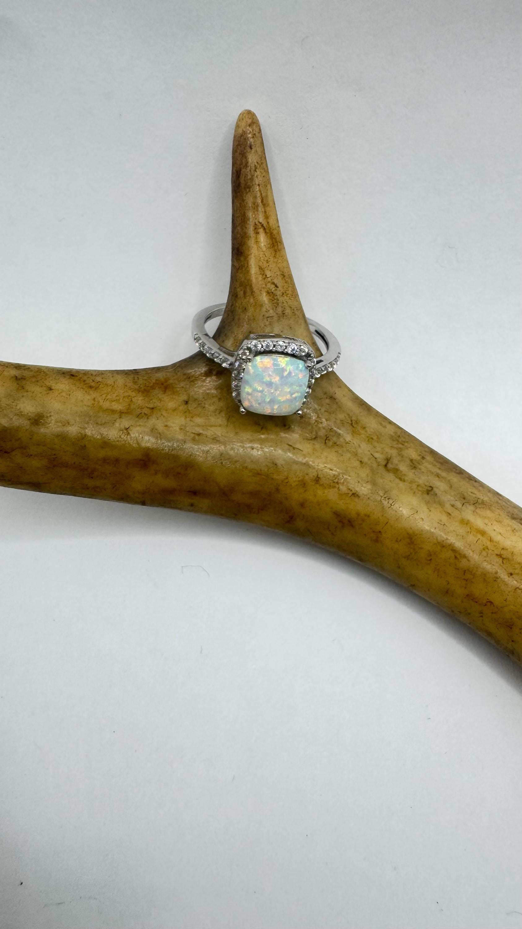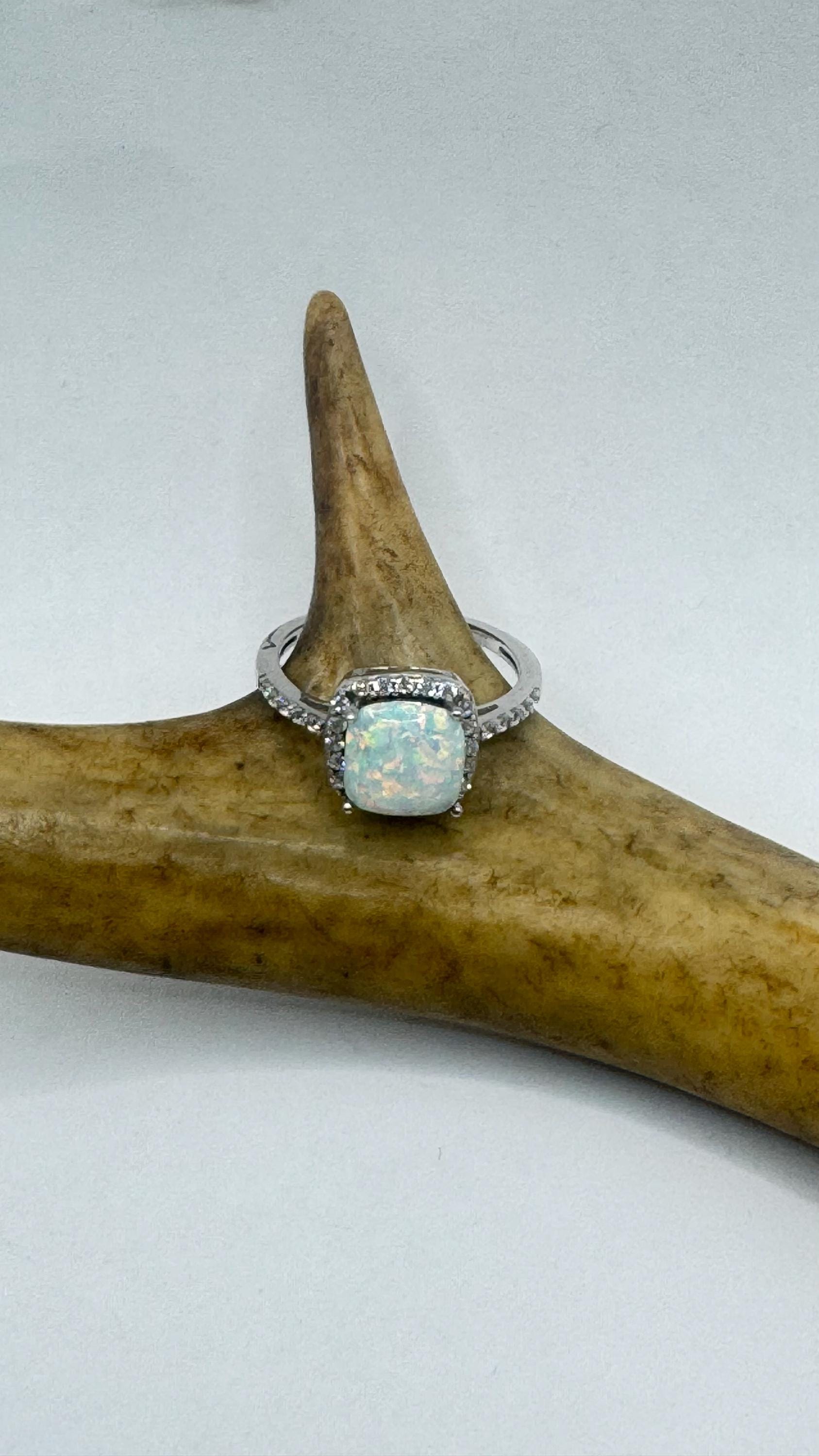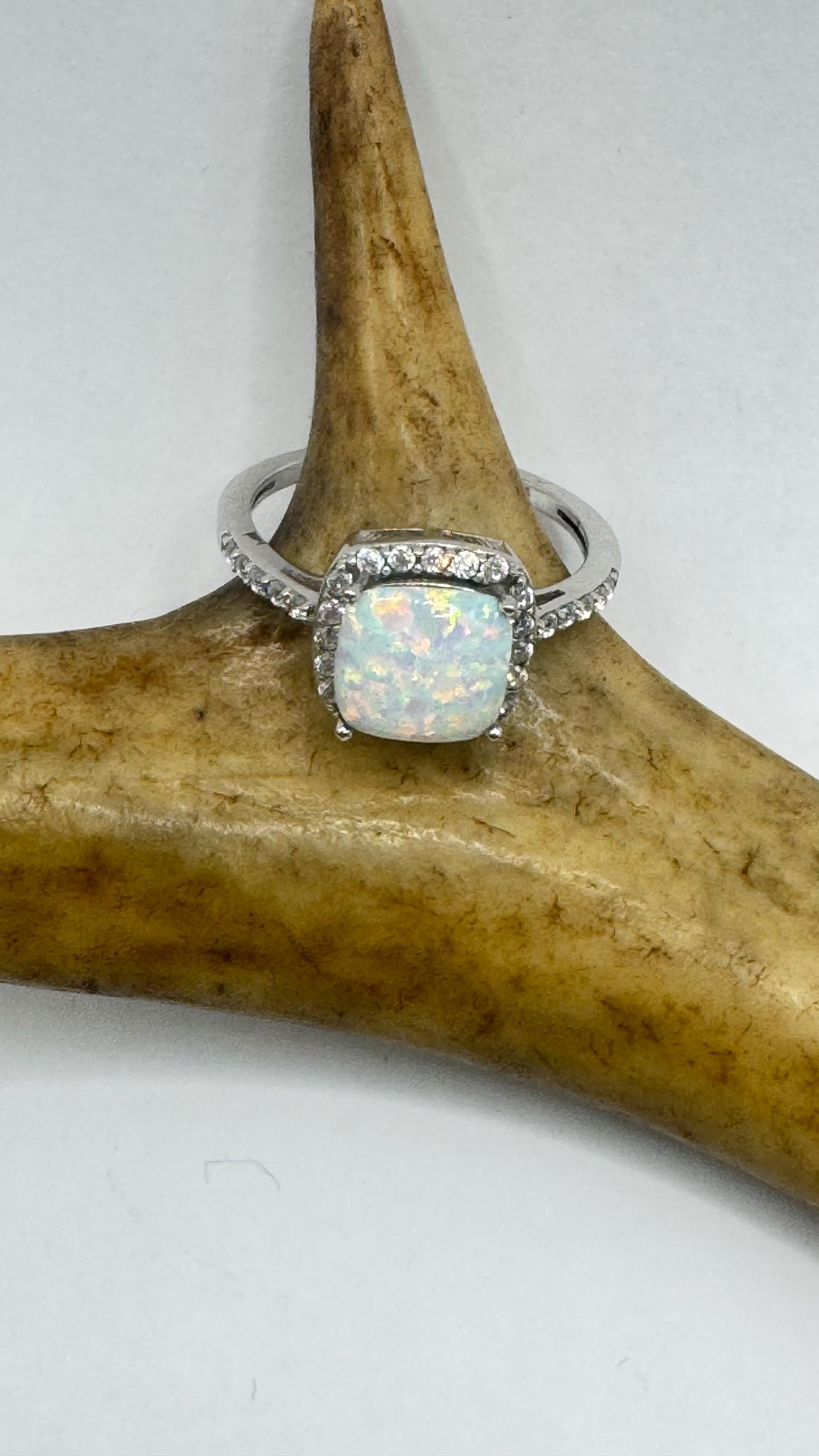 Vintage White Fire Opal 925 Sterling Silver Ring