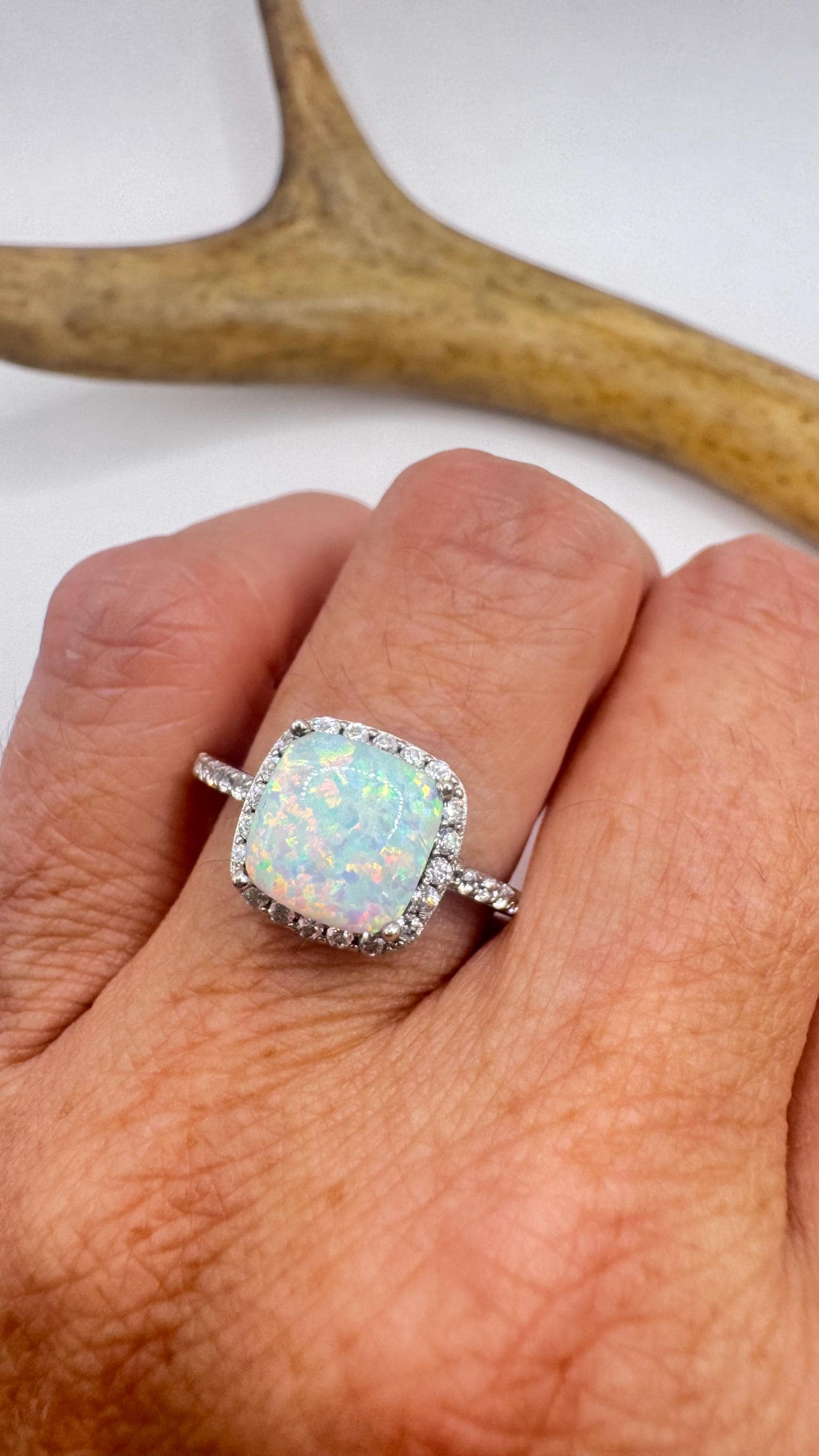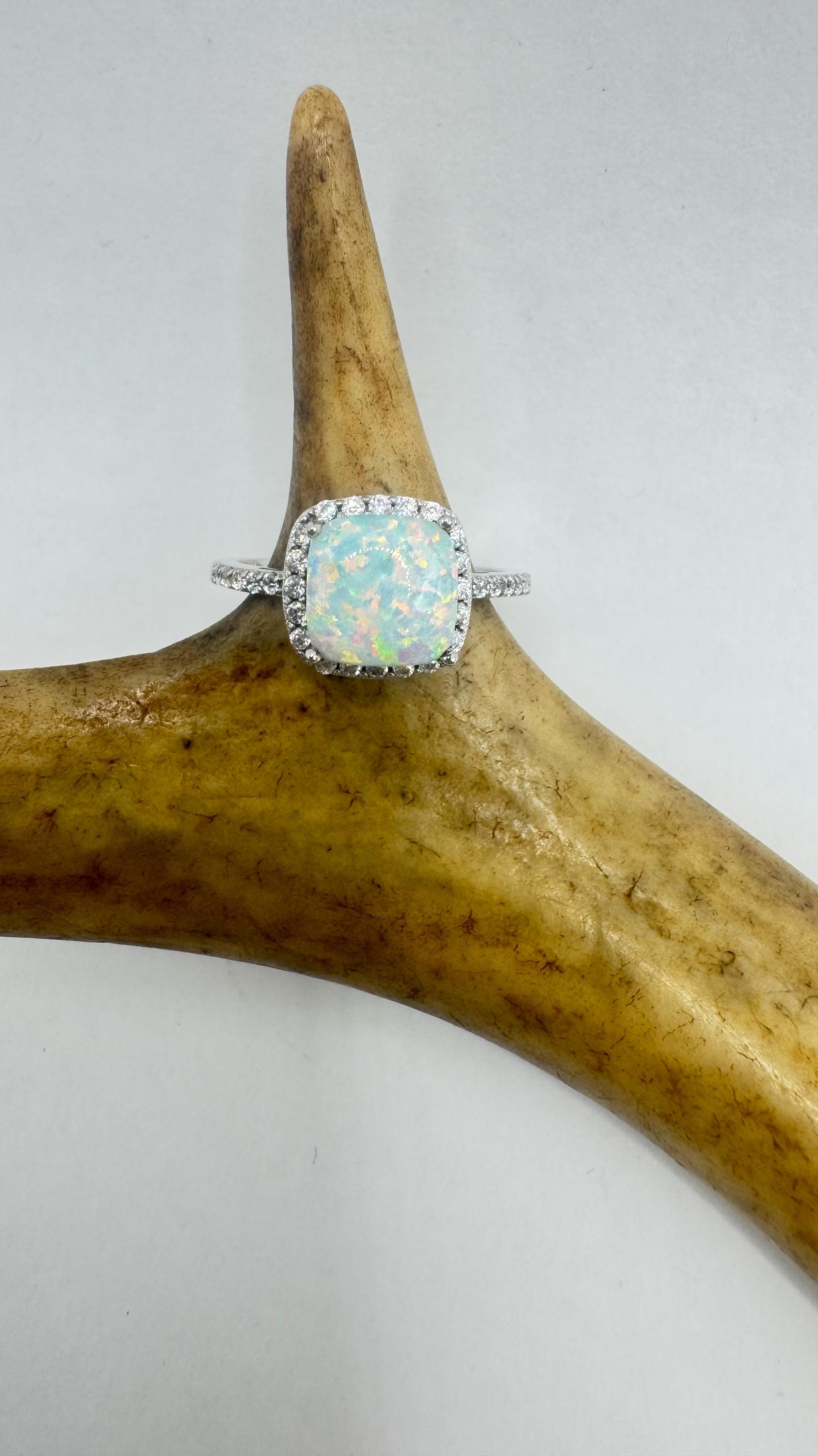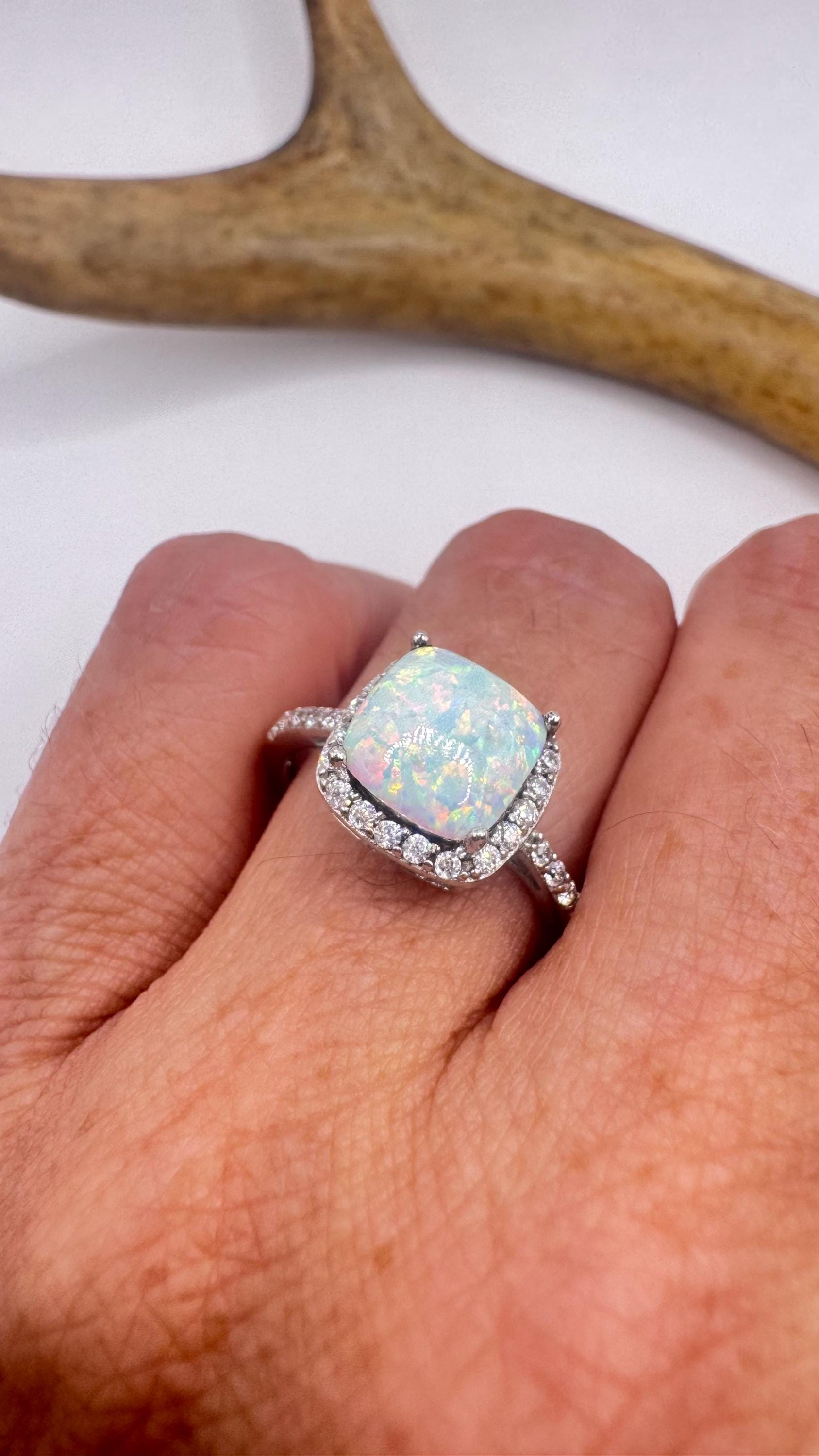 Vintage White Fire Opal 925 Sterling Silver Ring