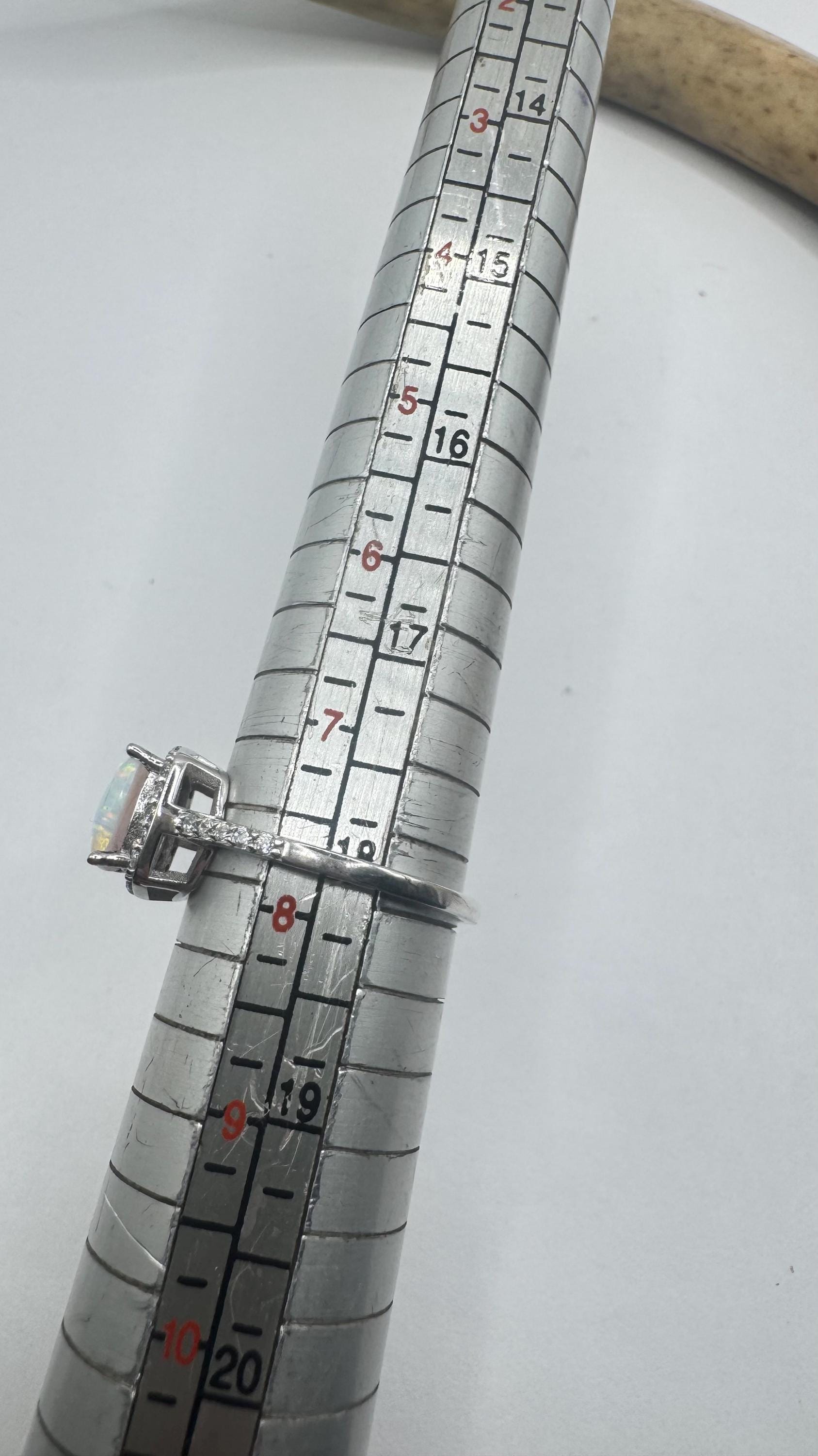 vintage fire opal ring Setting 925 sterling silver surrounded by white sapphire, setting silver Great ring for white wedding bride... Read more