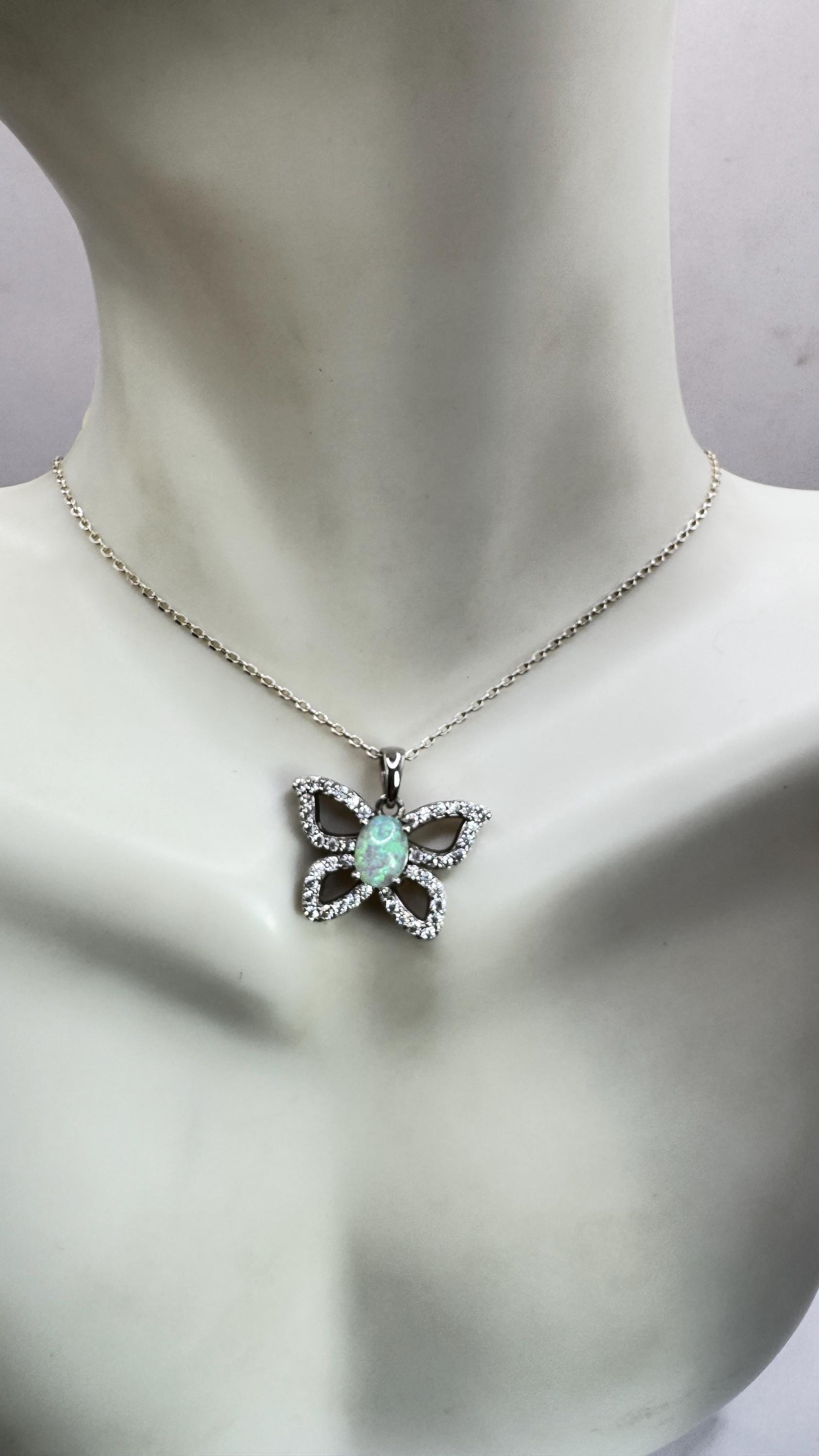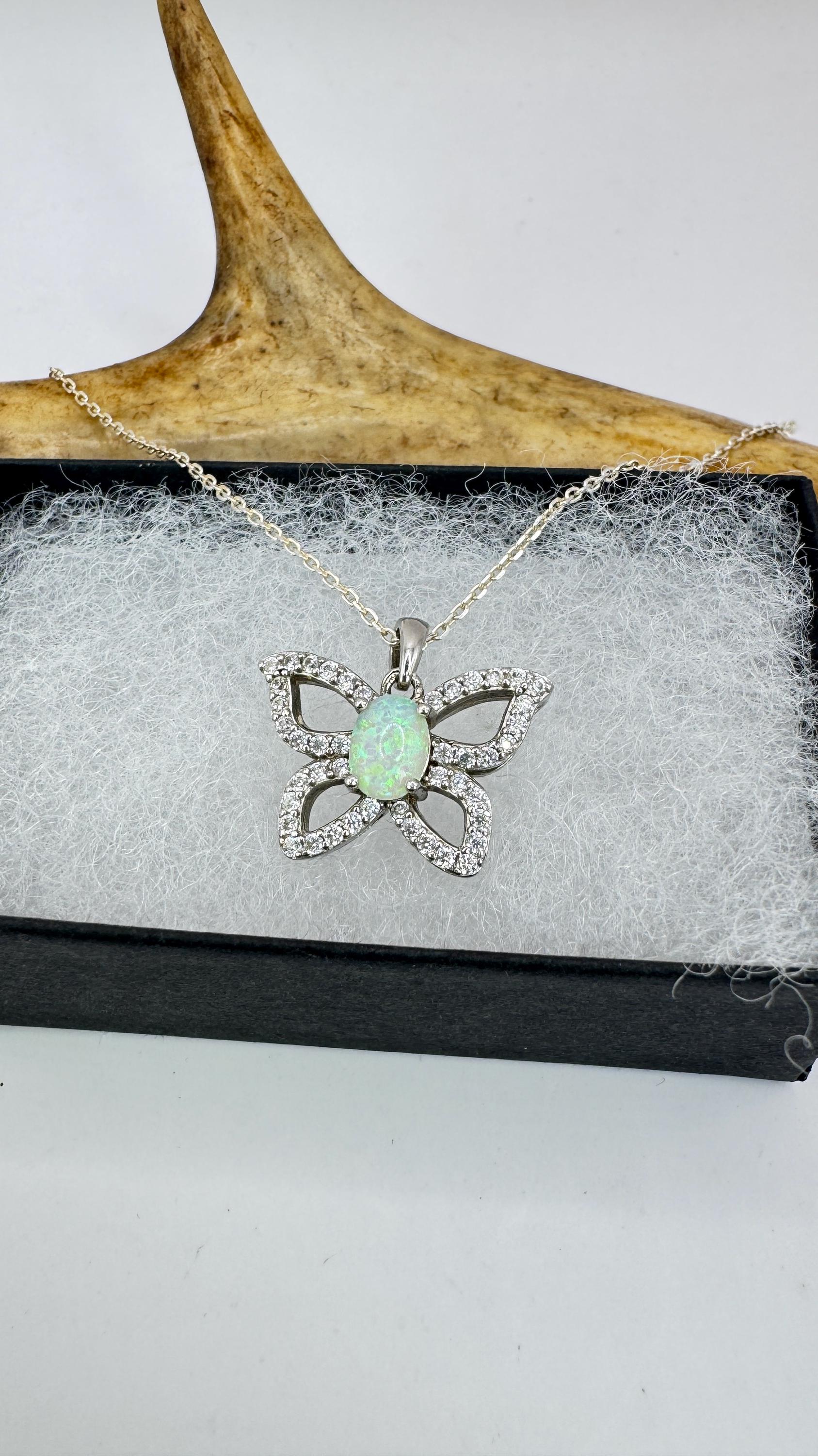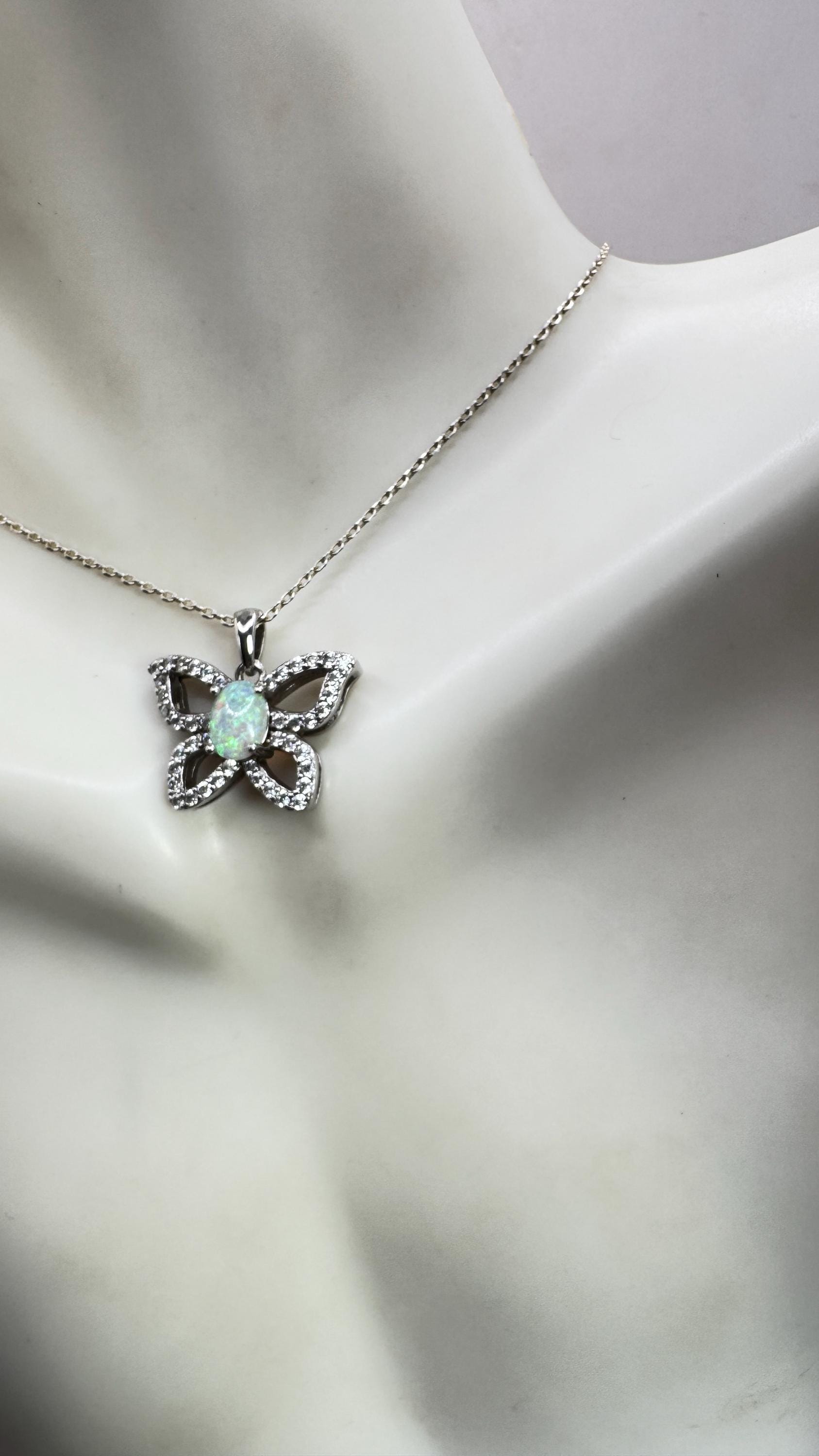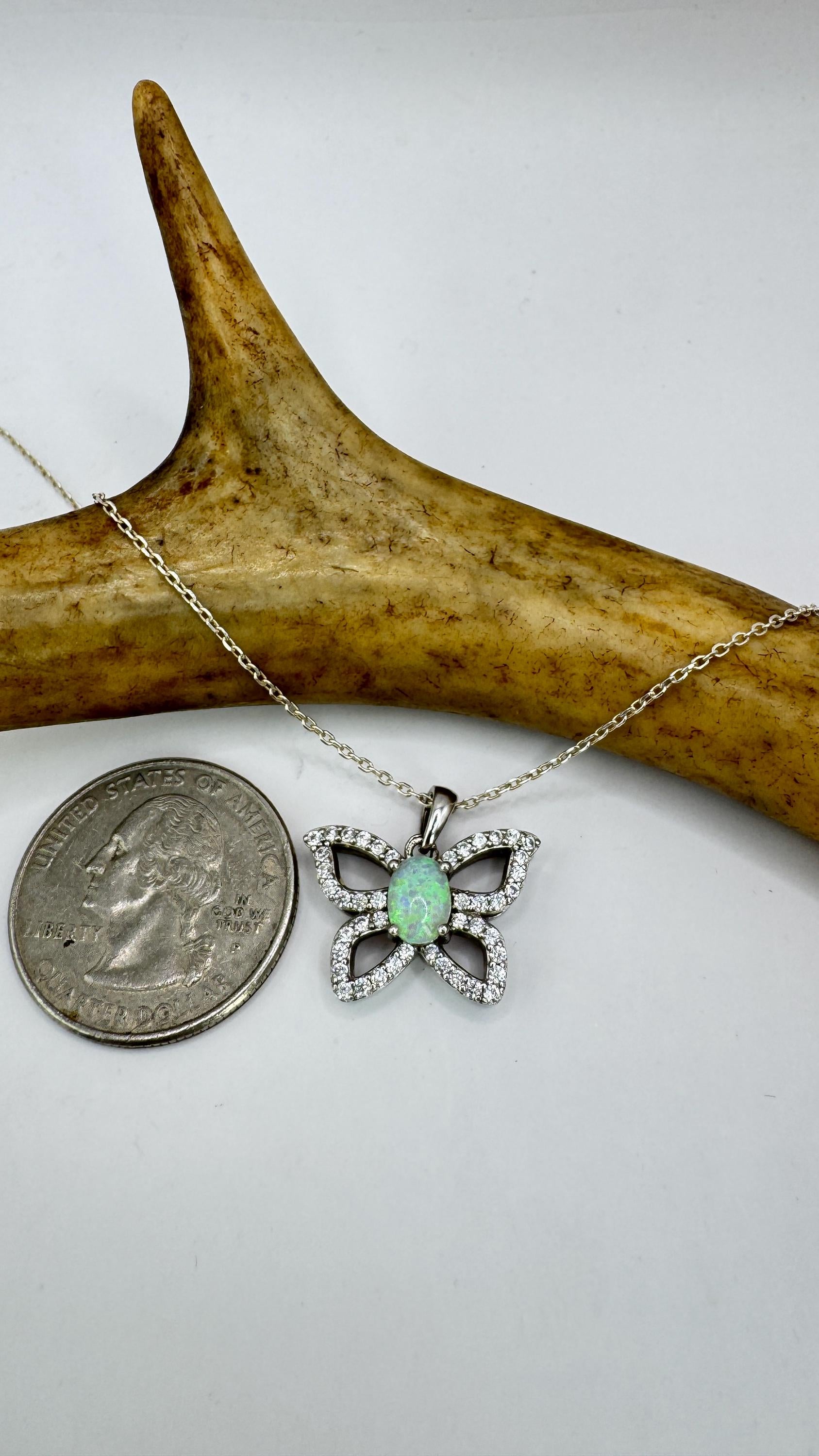 Vintage White Fire Opal Butterfly Necklace Sterling Silver Minimalist Chain