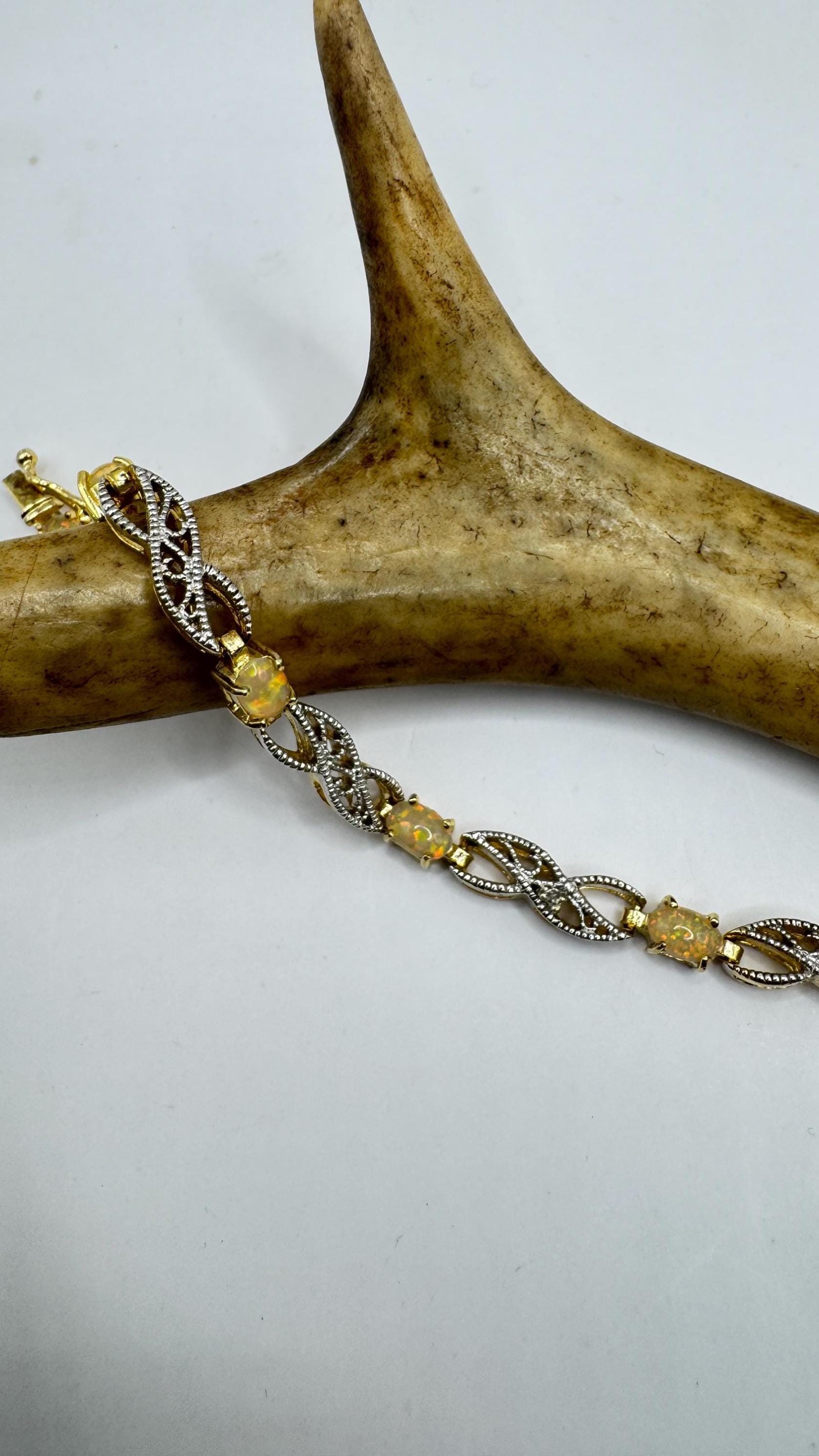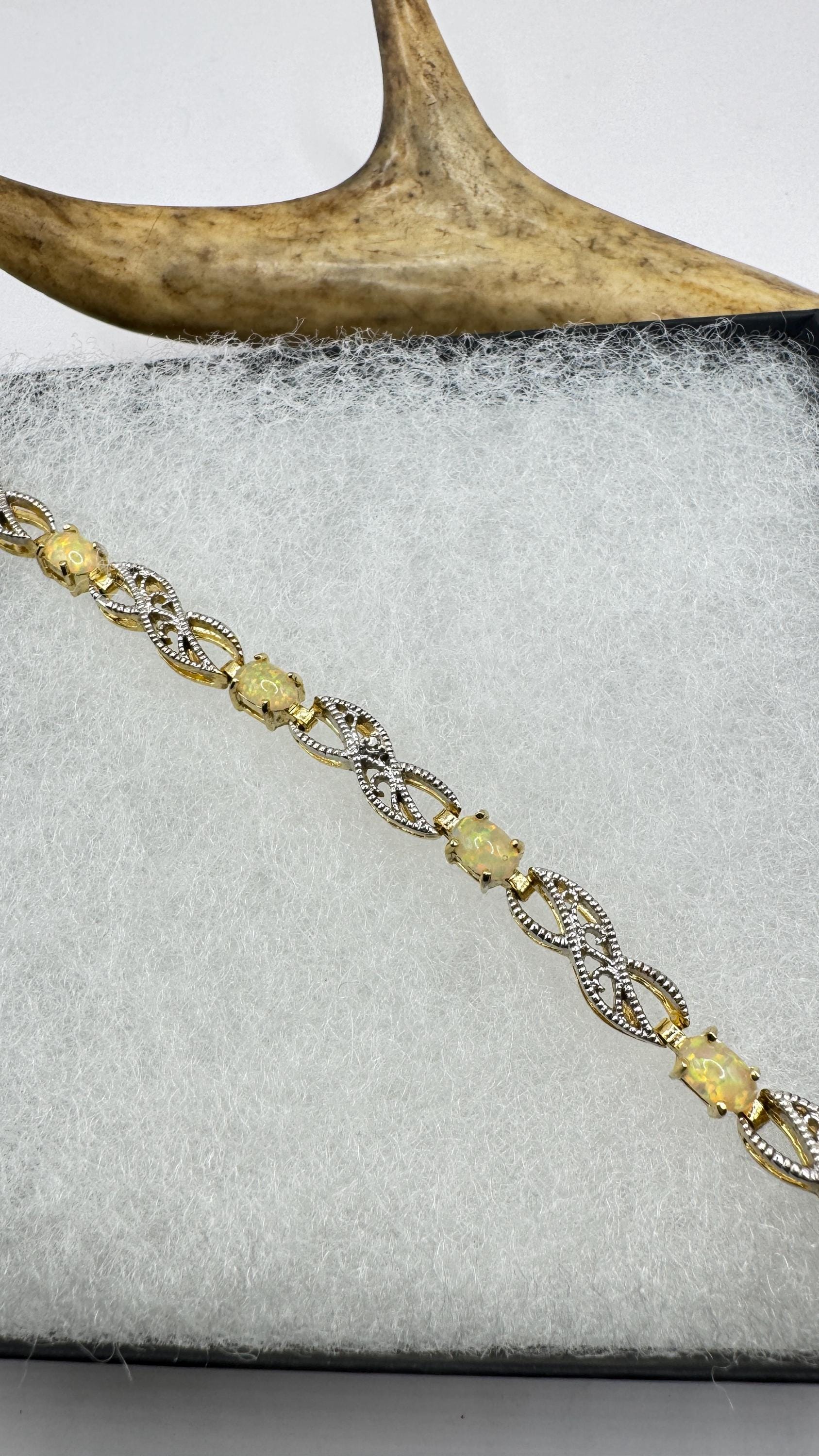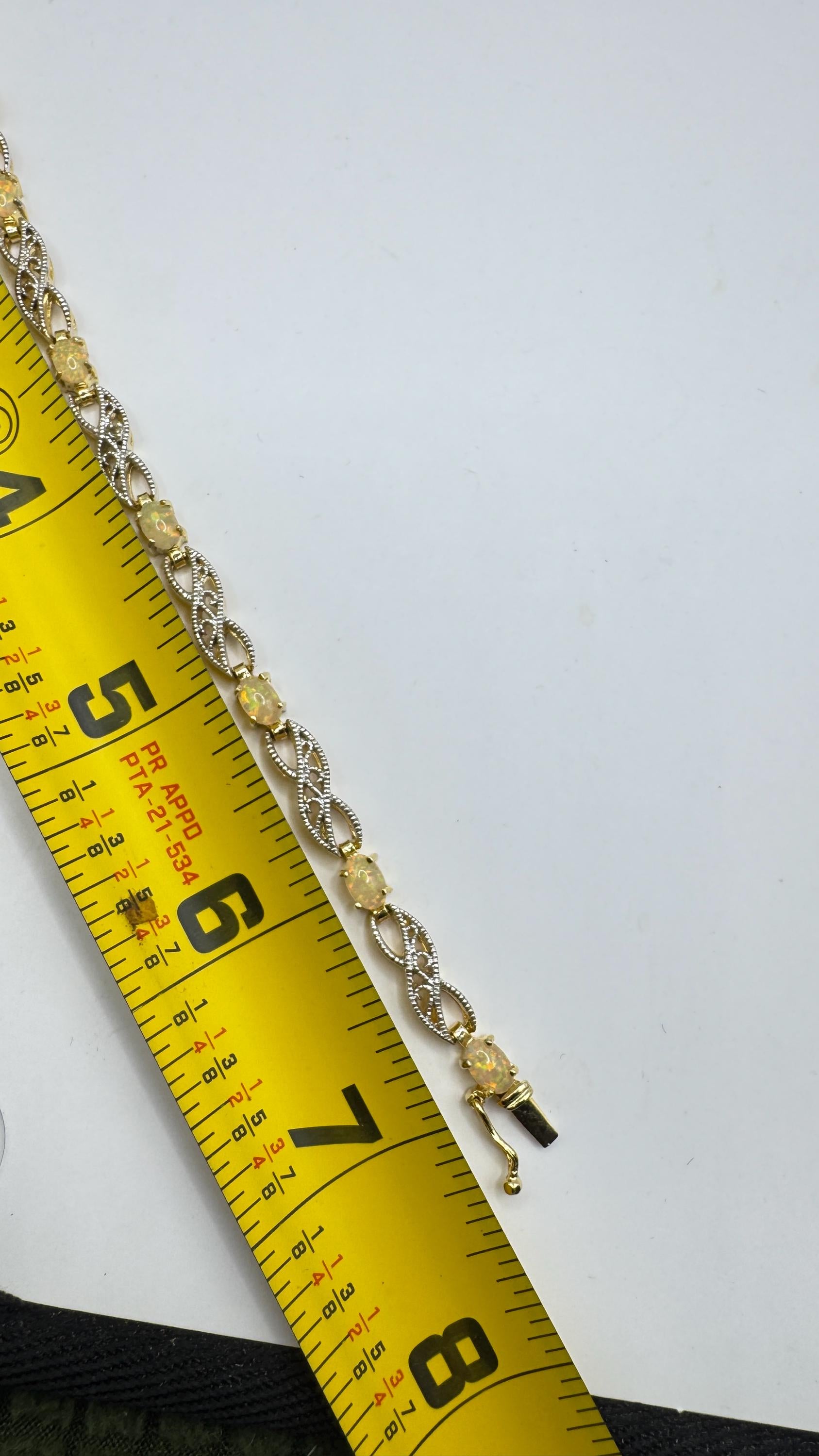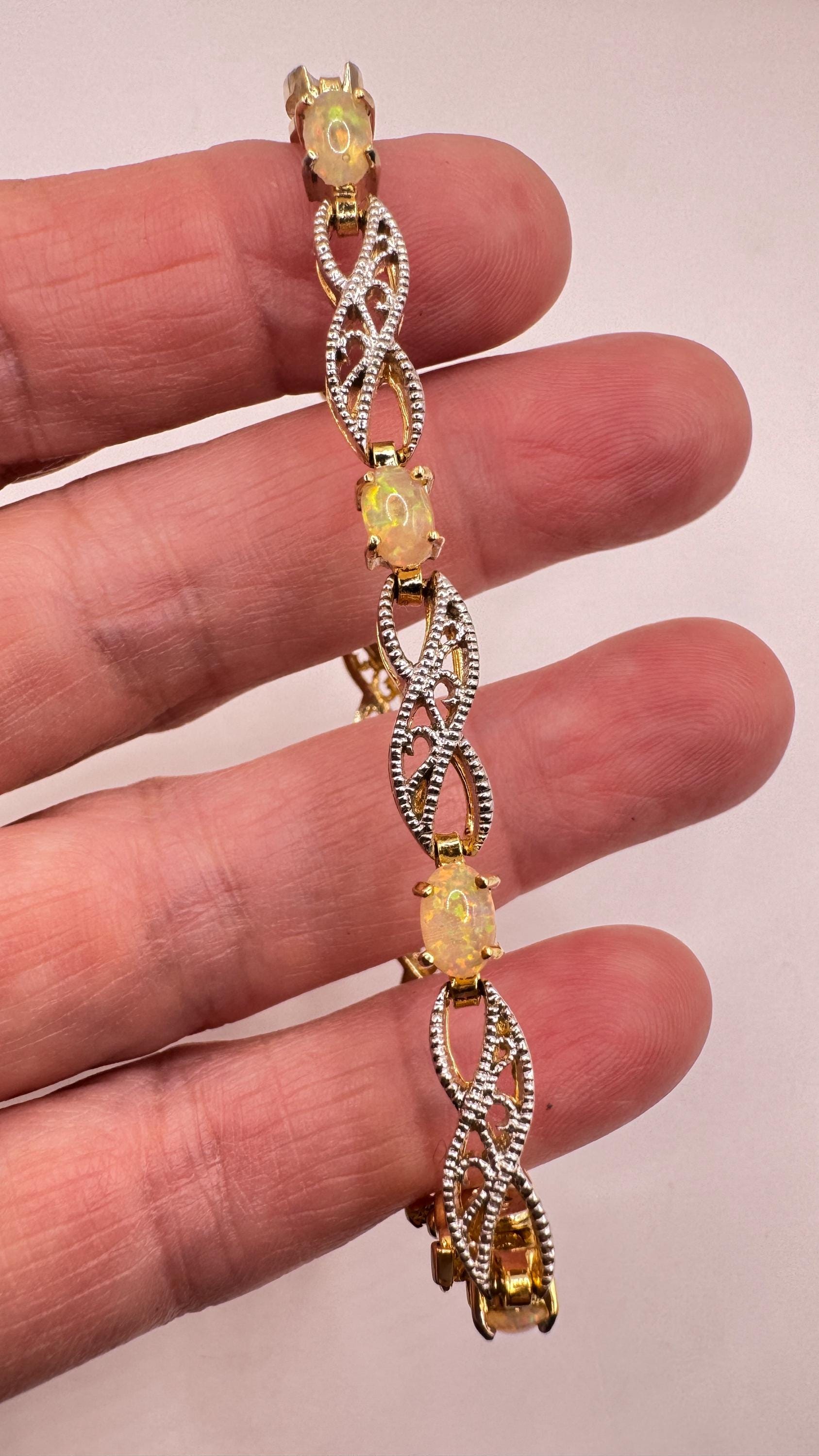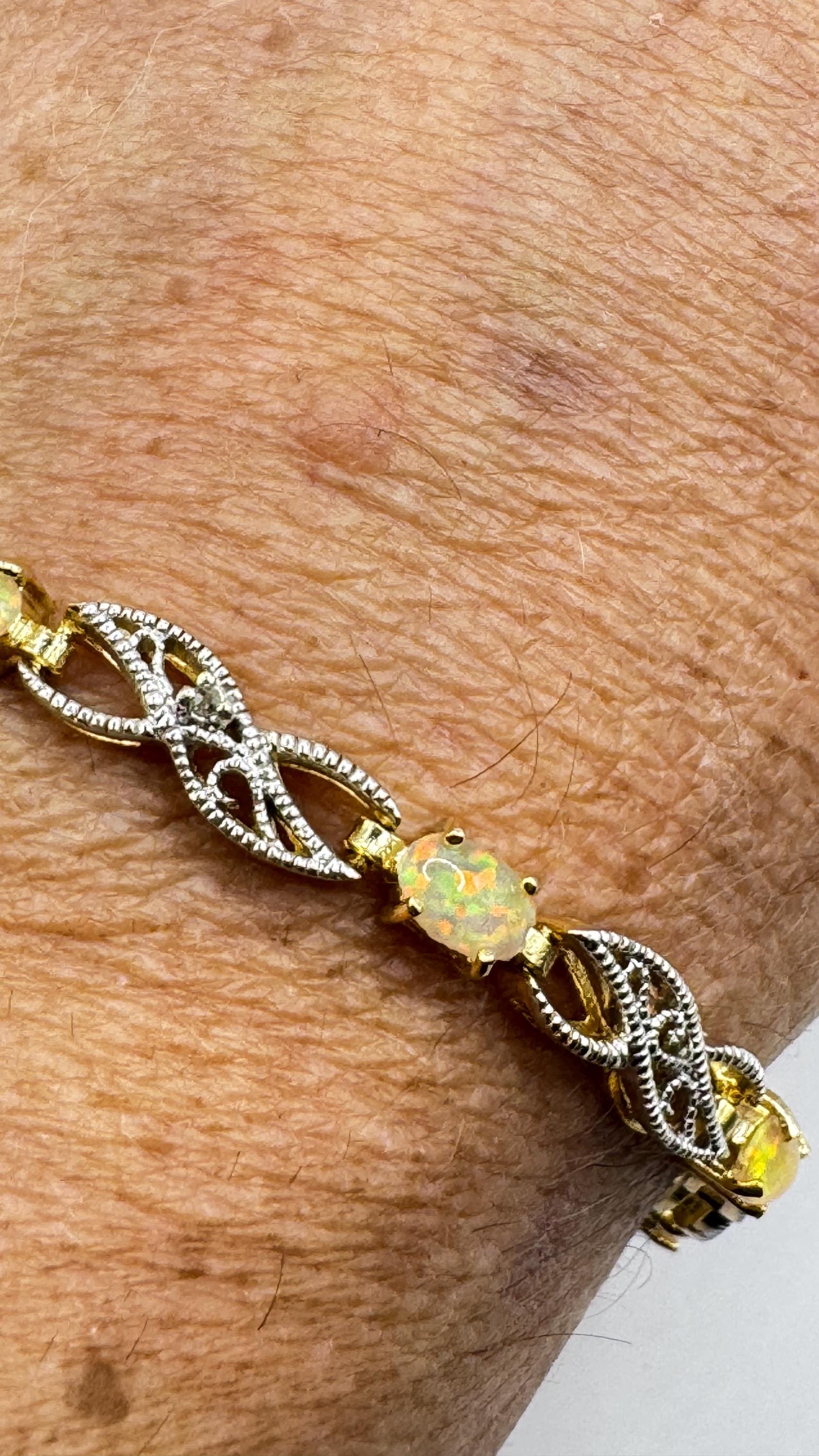 Vintage White Fire Opal Tennis Bracelet crafted in 925 Sterling Silver with golden accents 7.25 inches (almost 18cm) long For... Read more