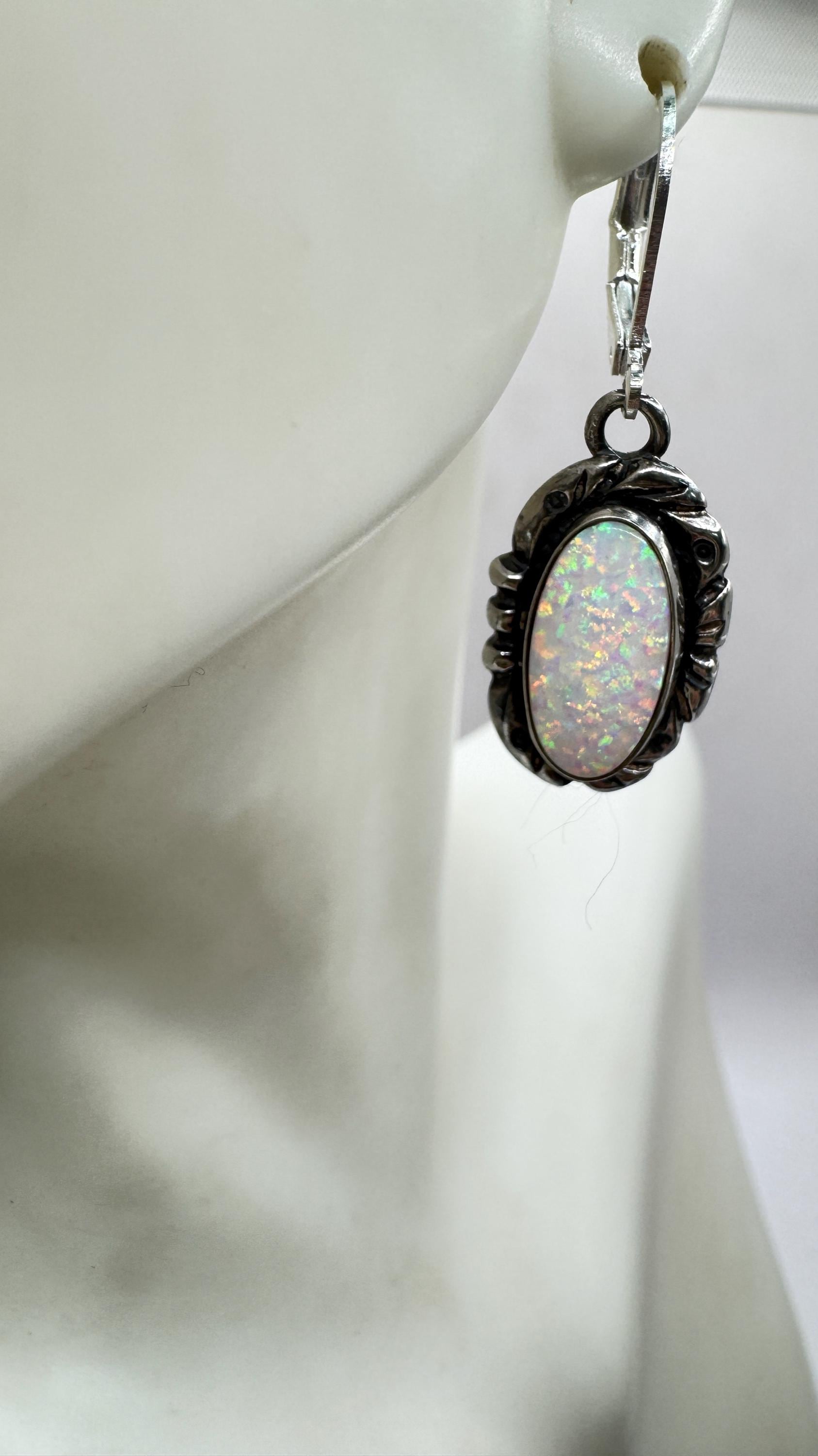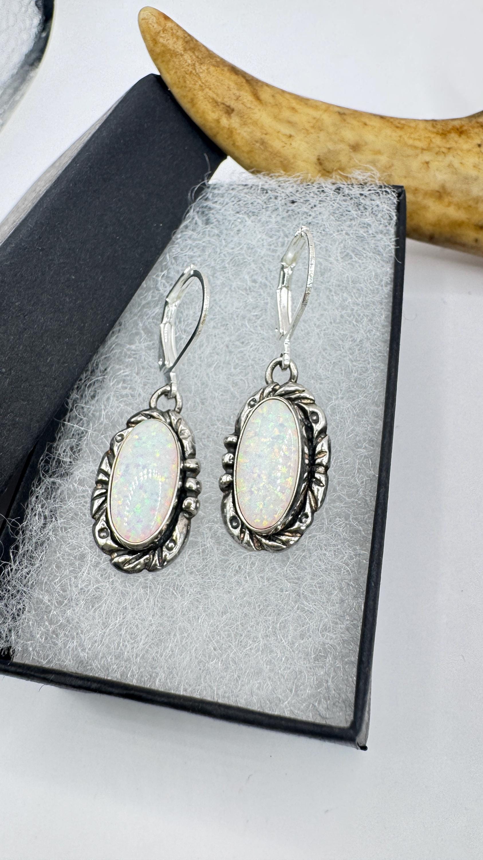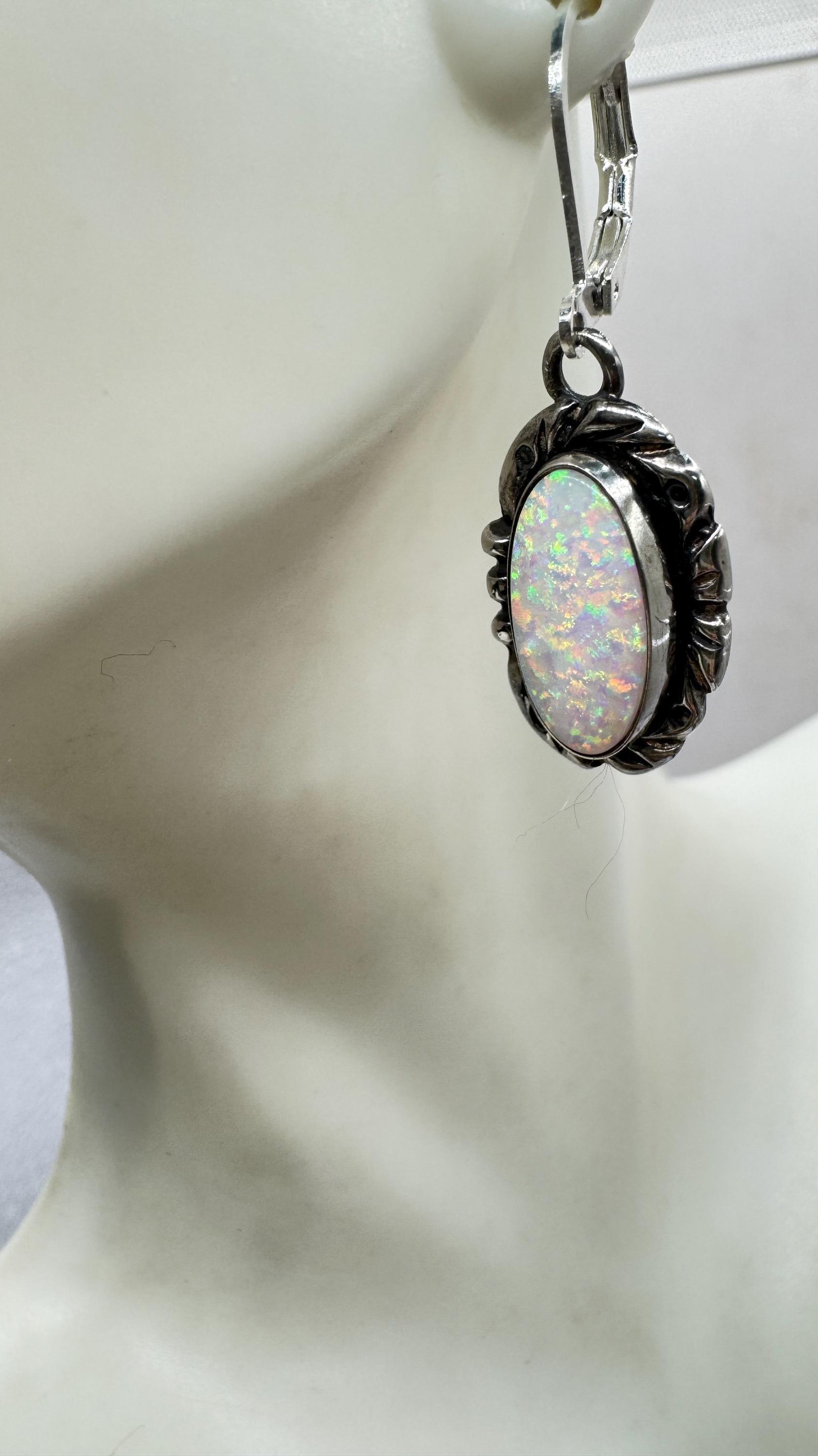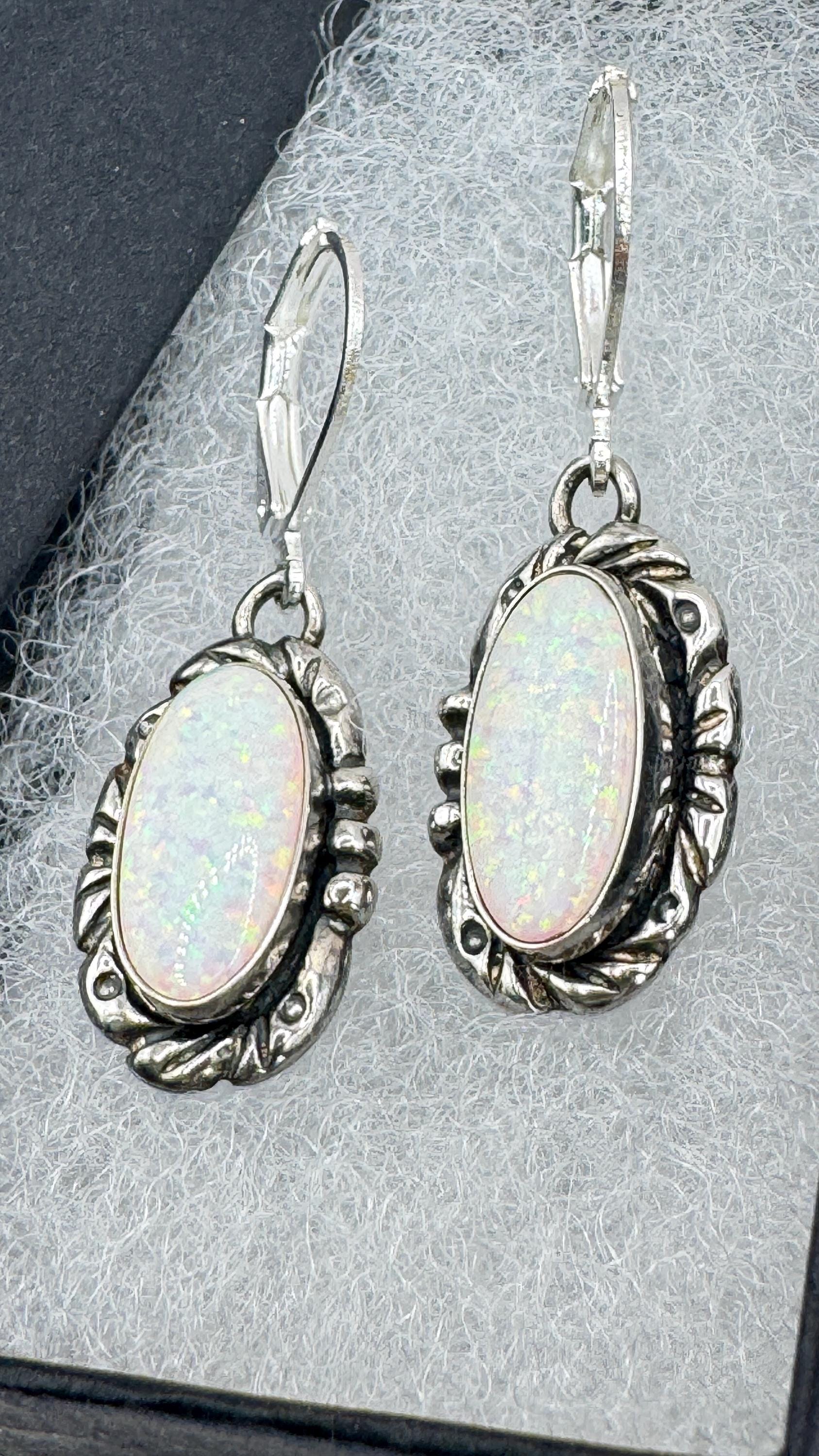 Vintage White Fire Opal lever back Earrings 925 Sterling Silver