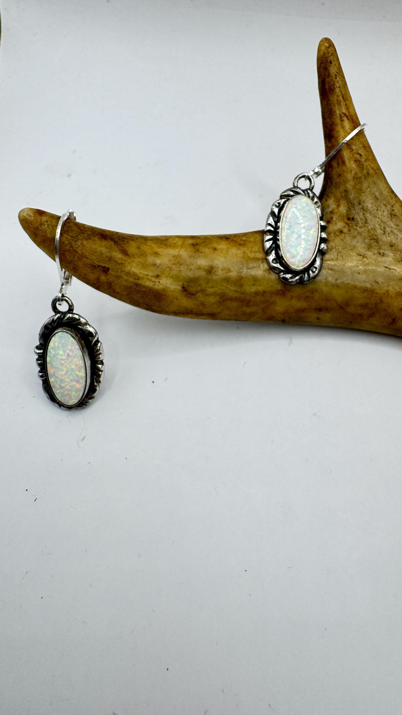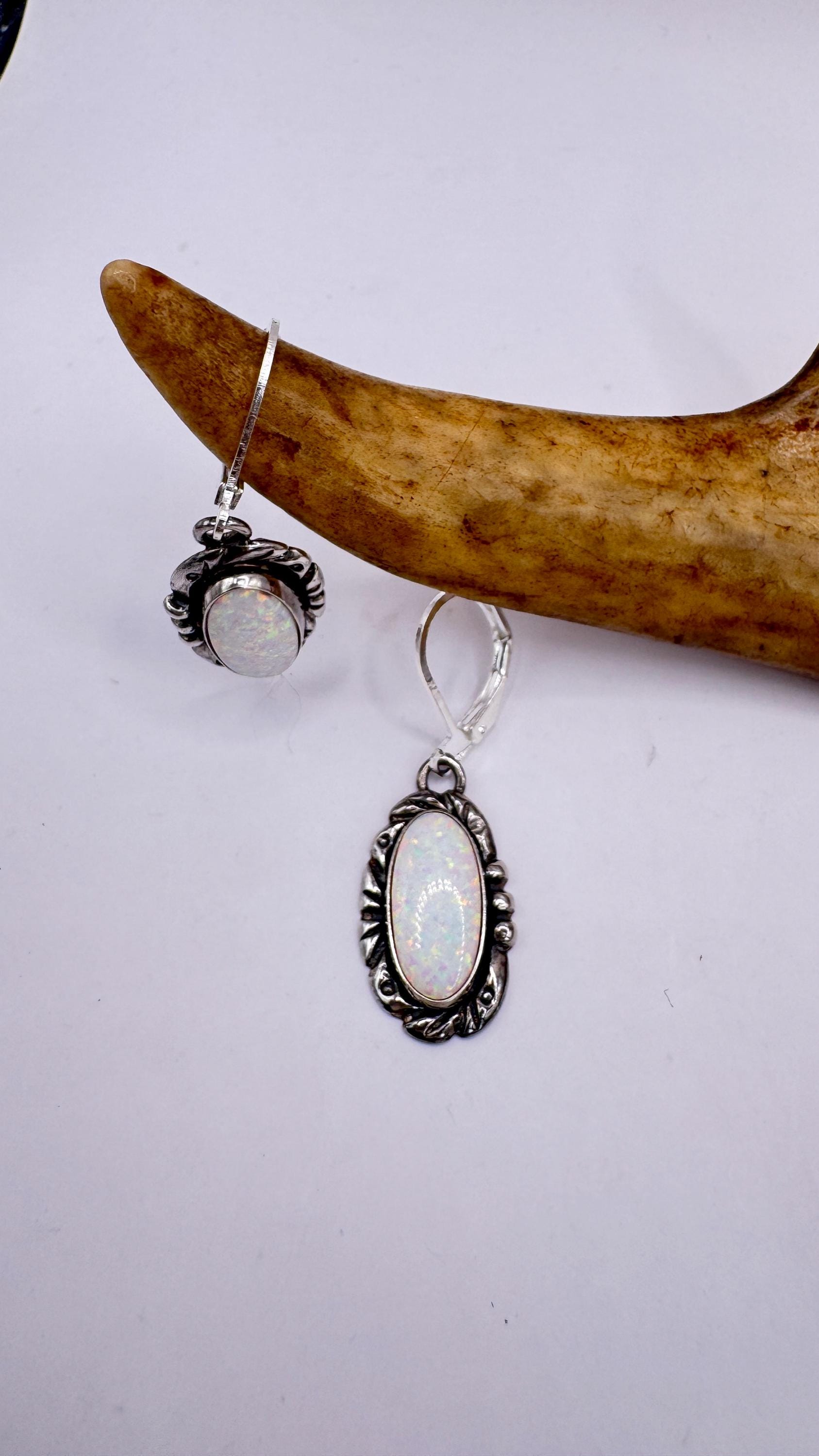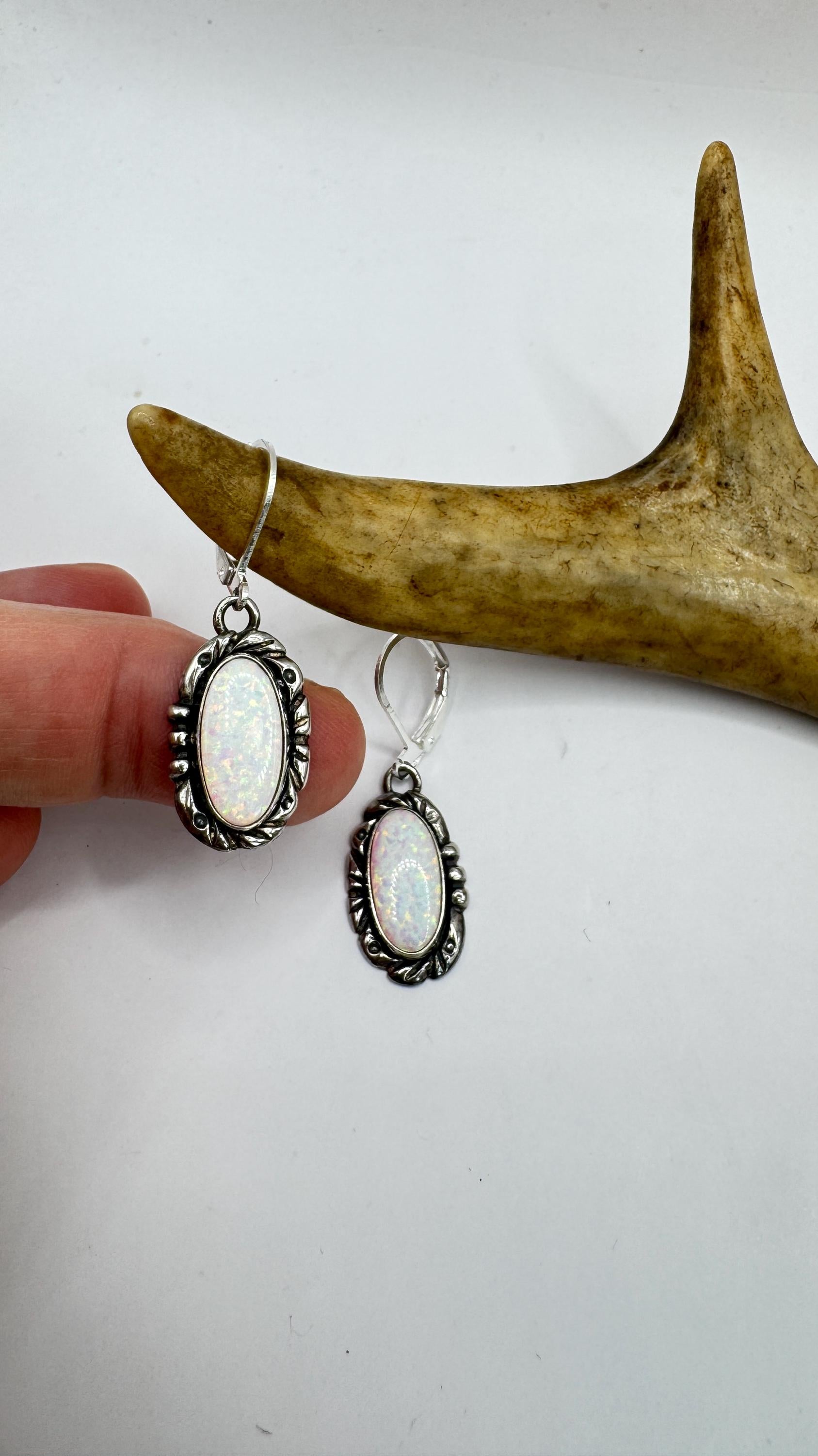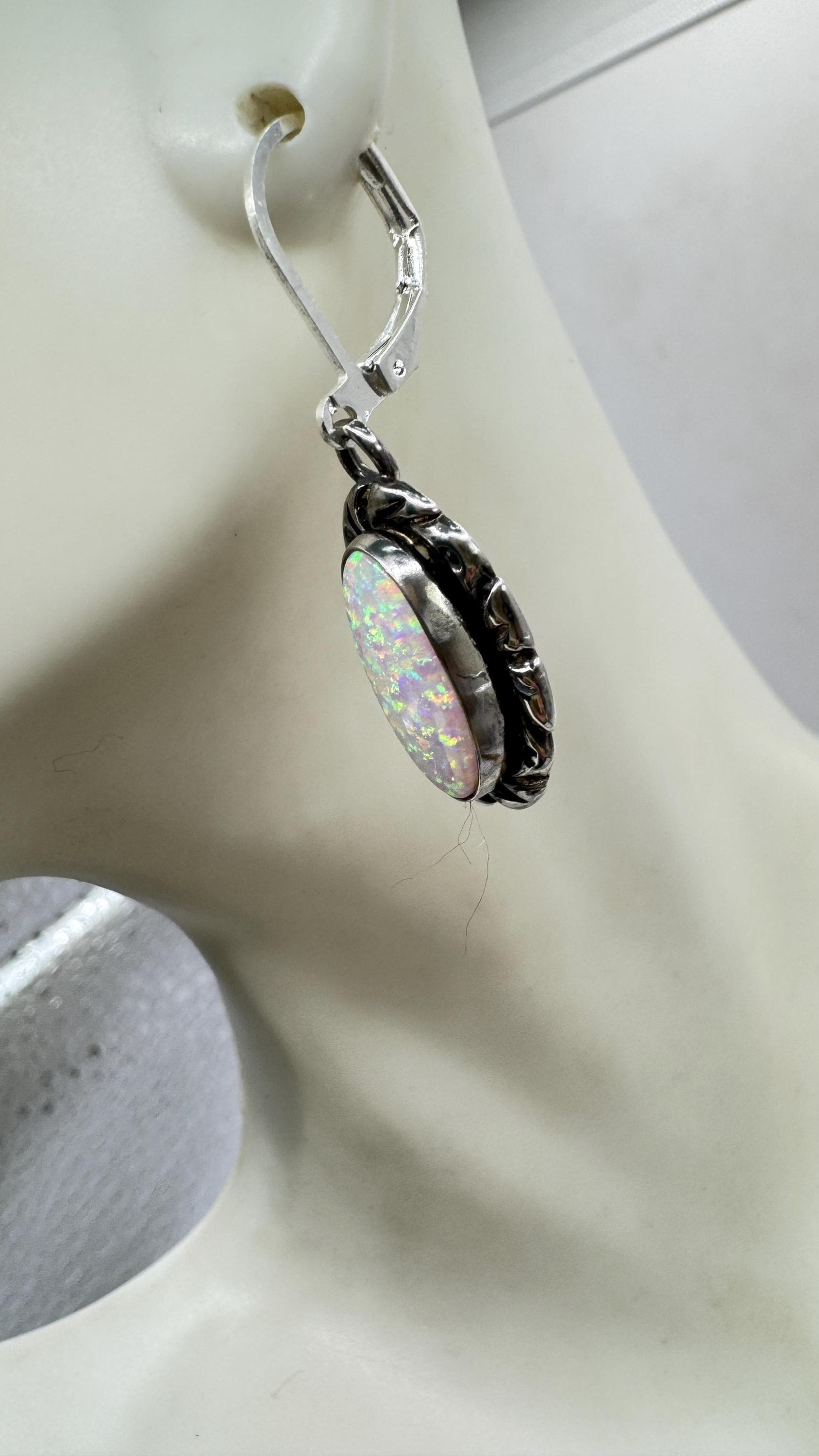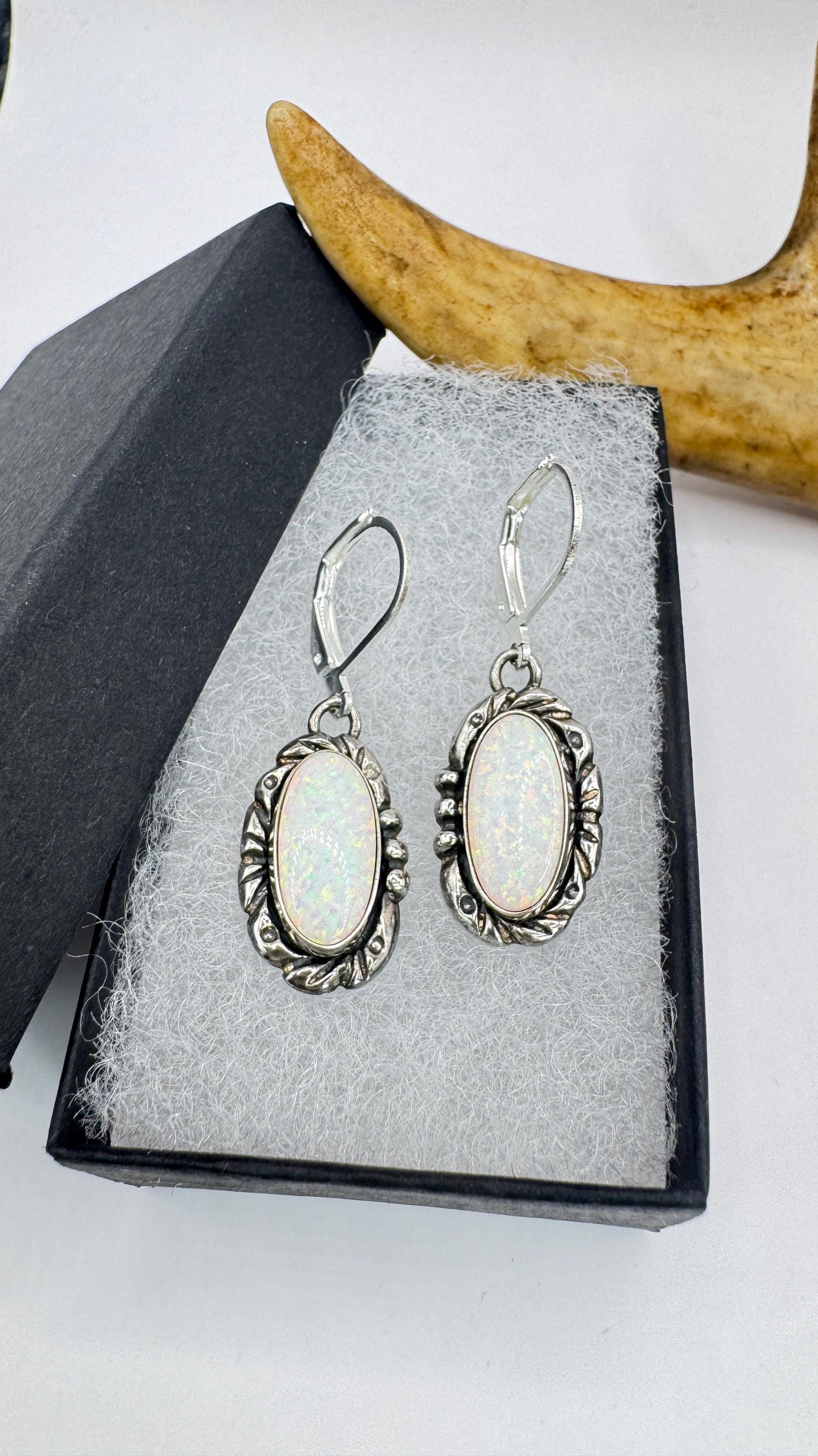 Vintage White Fire Opal lever back Earrings 925 Sterling Silver