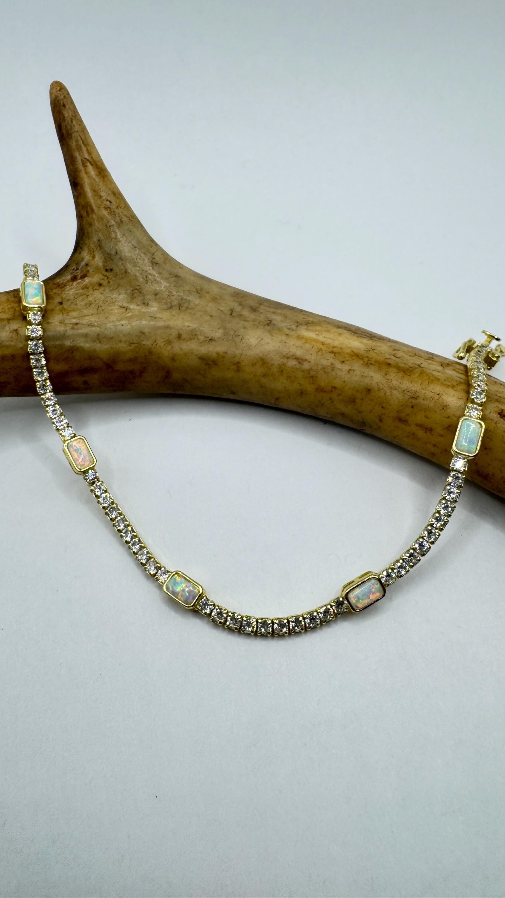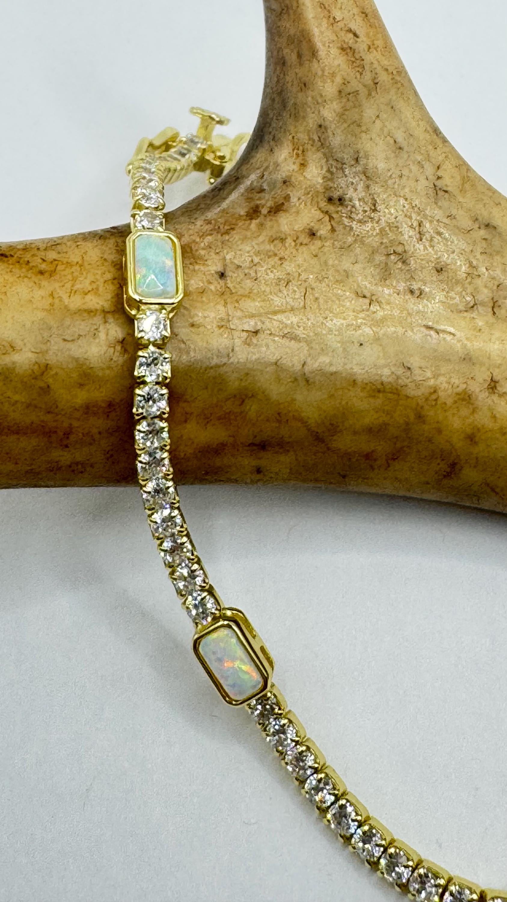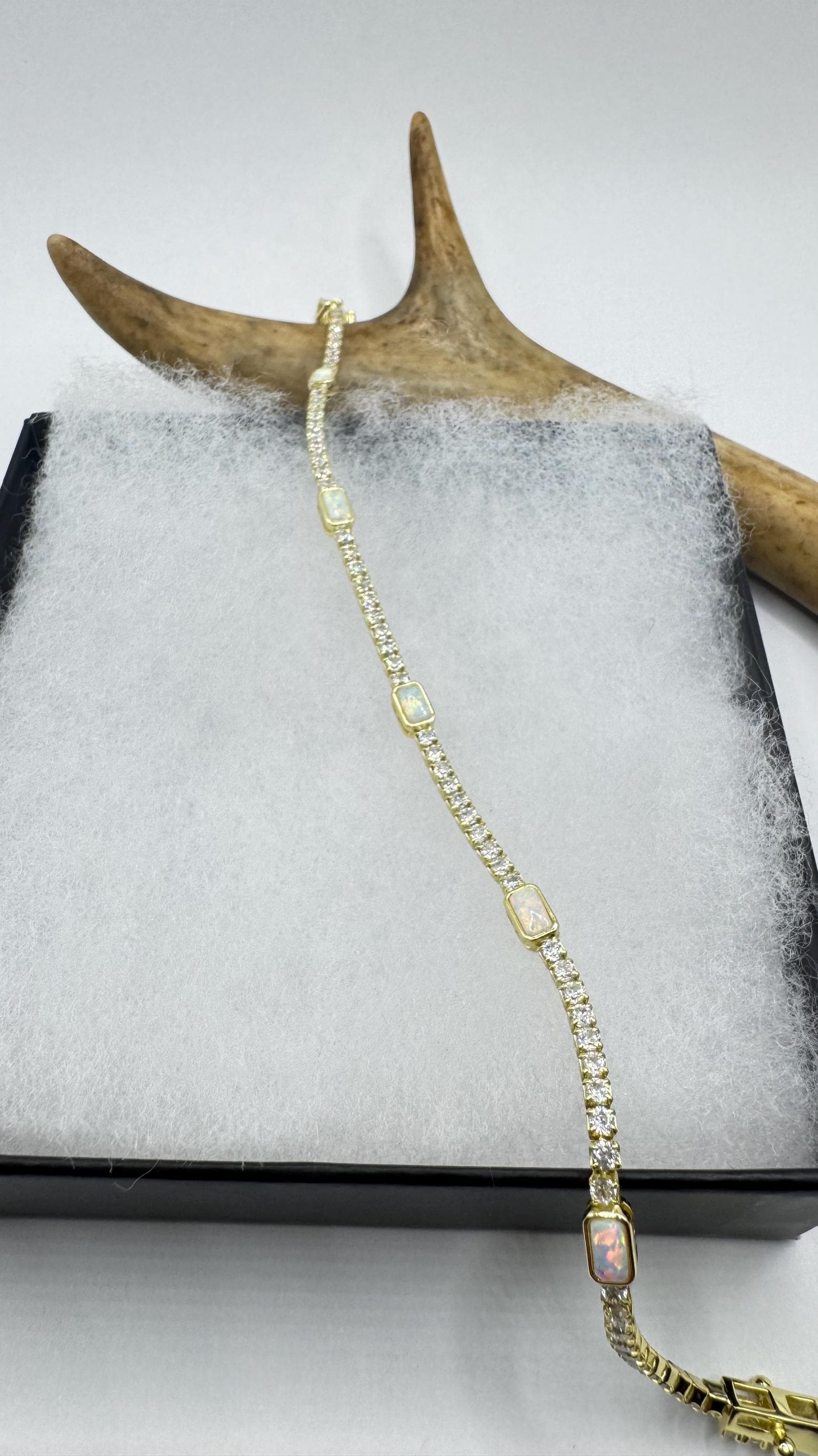 Vintage White Fire Opal Tennis Bracelet • Golden 925 Sterling Silver Stacking Jewelry
