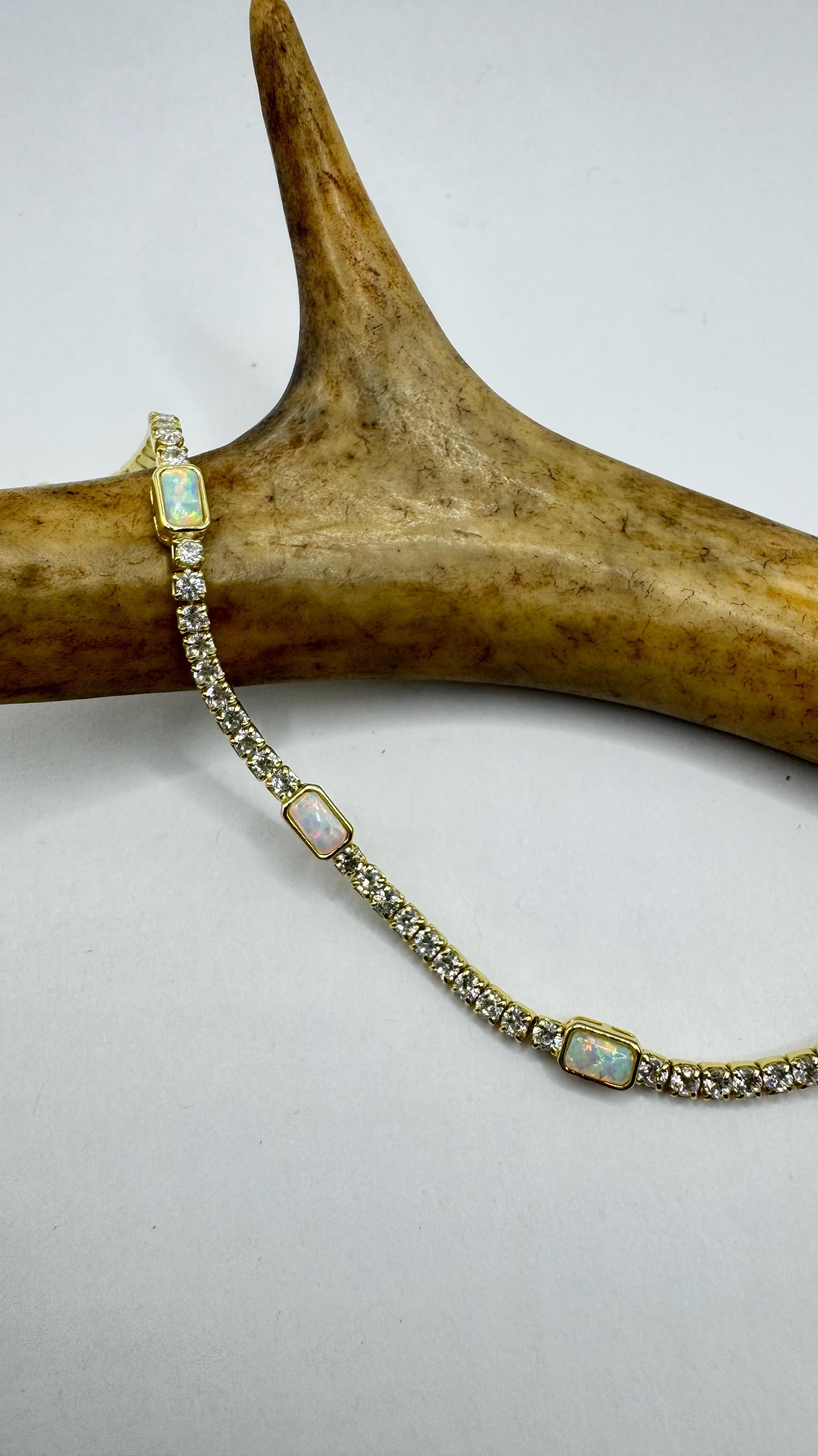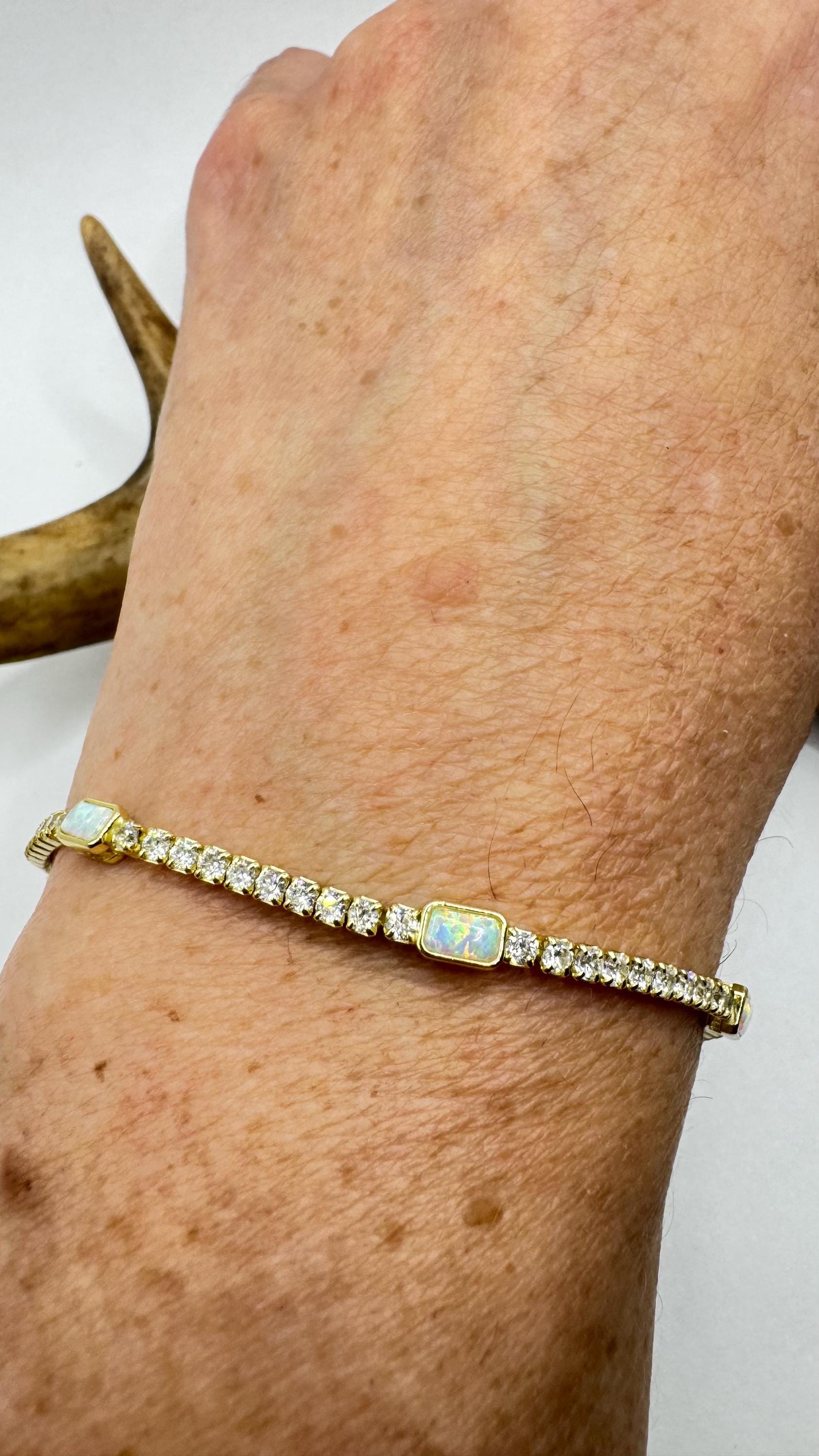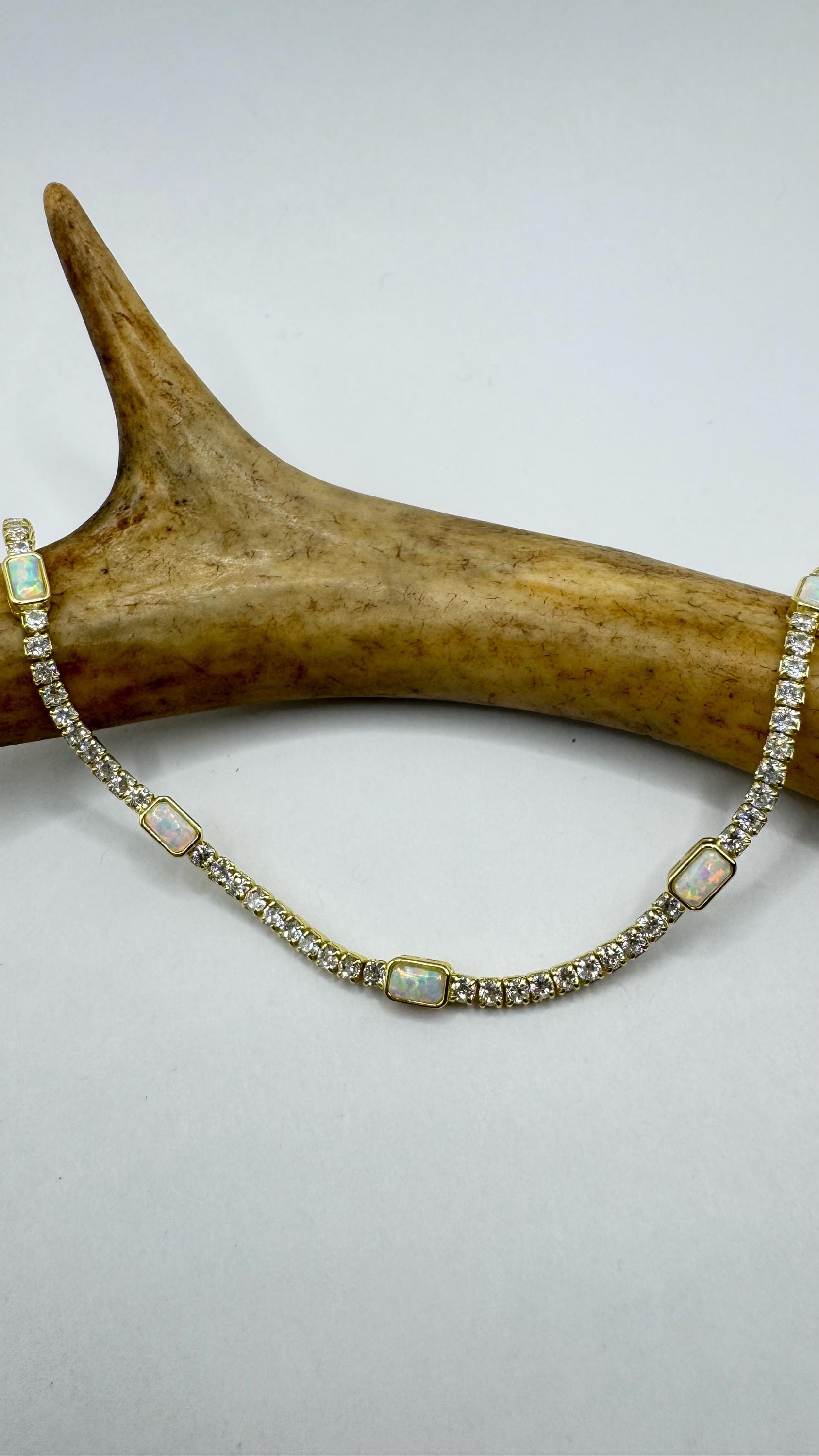 Vintage White Fire Opal Tennis Bracelet • Golden 925 Sterling Silver Stacking Jewelry