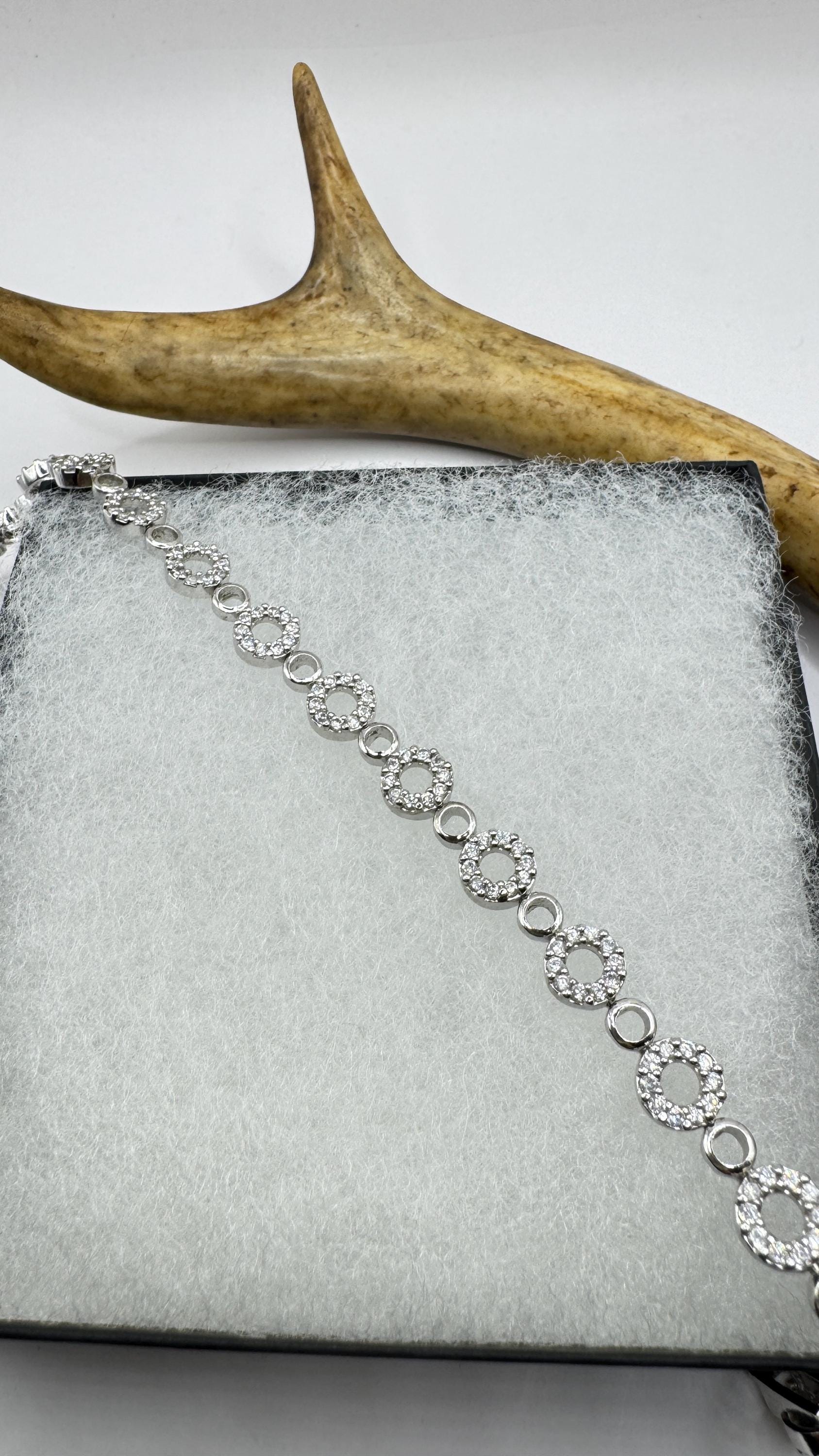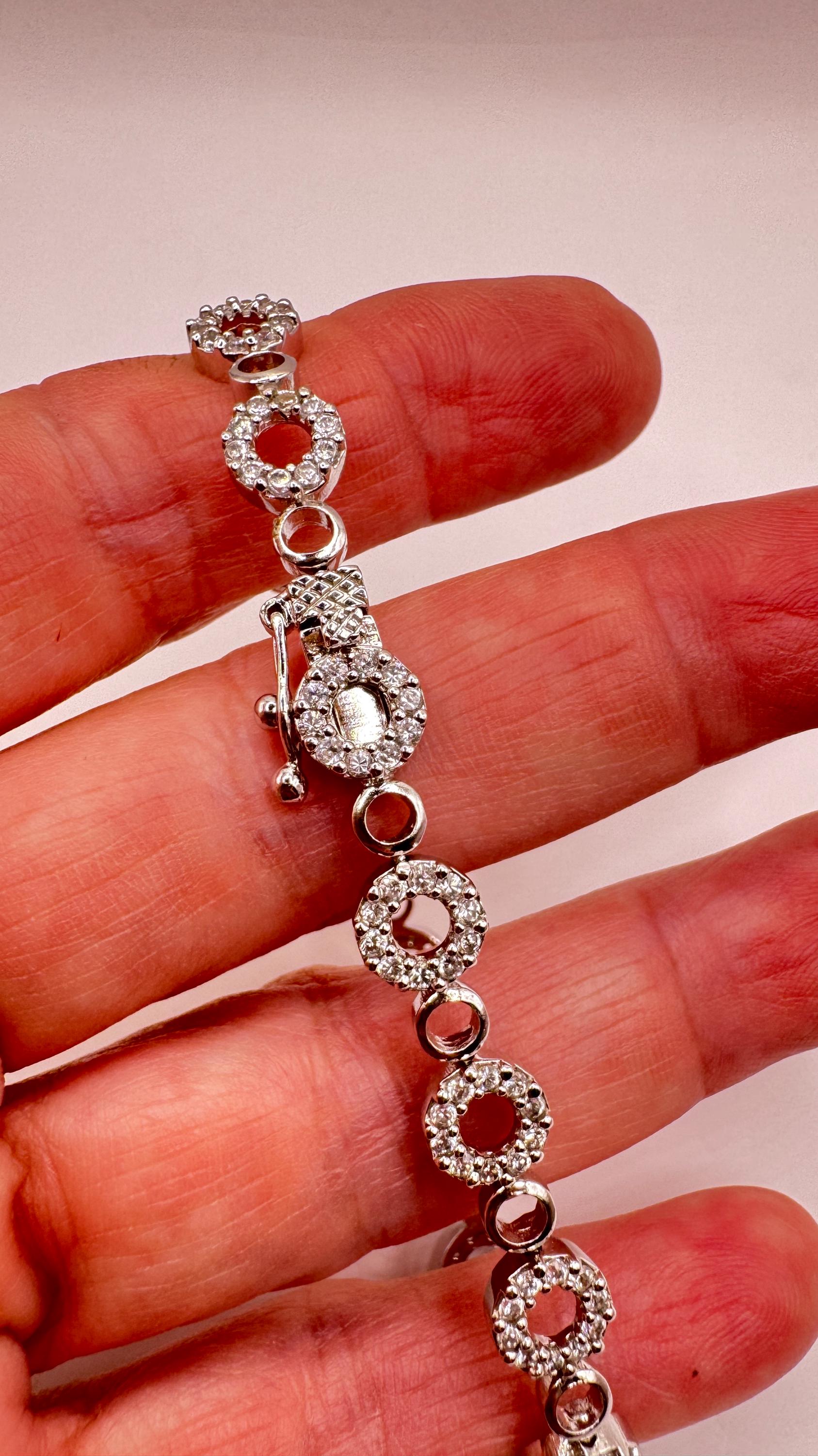 Vintage White Sapphire Tennis Bracelet - Dainty Stackable Gold 925 Sterling Silver